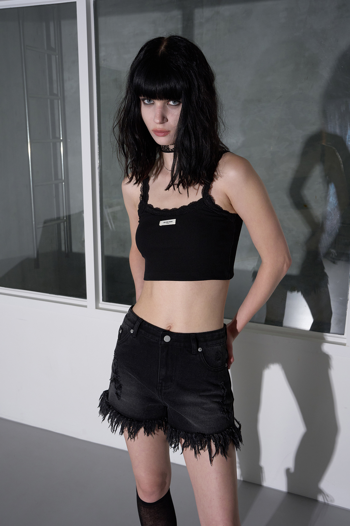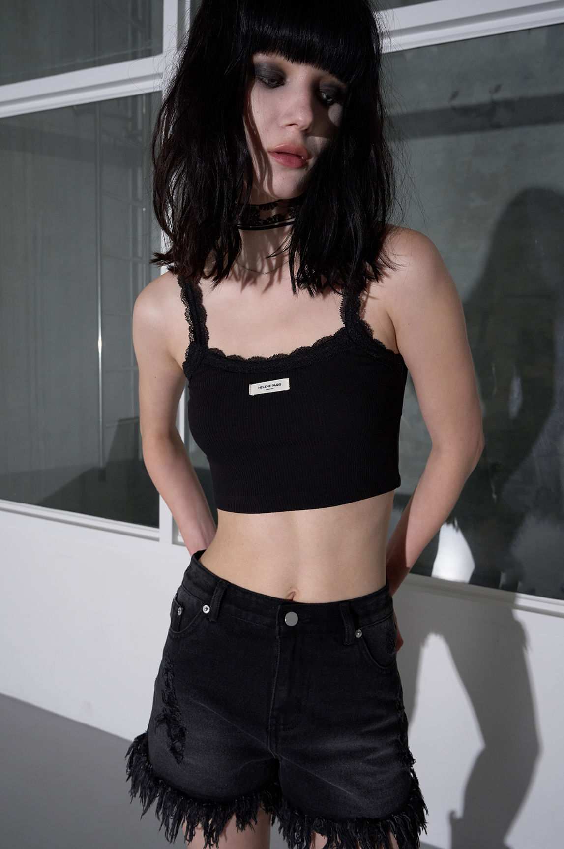 레이스 크롭 탱크탑 [블랙]