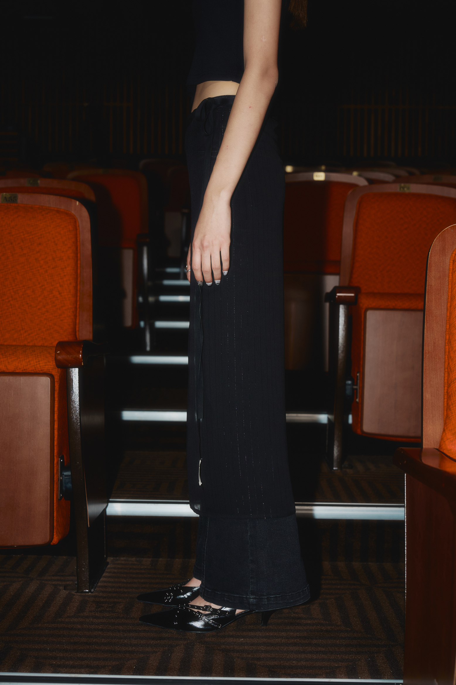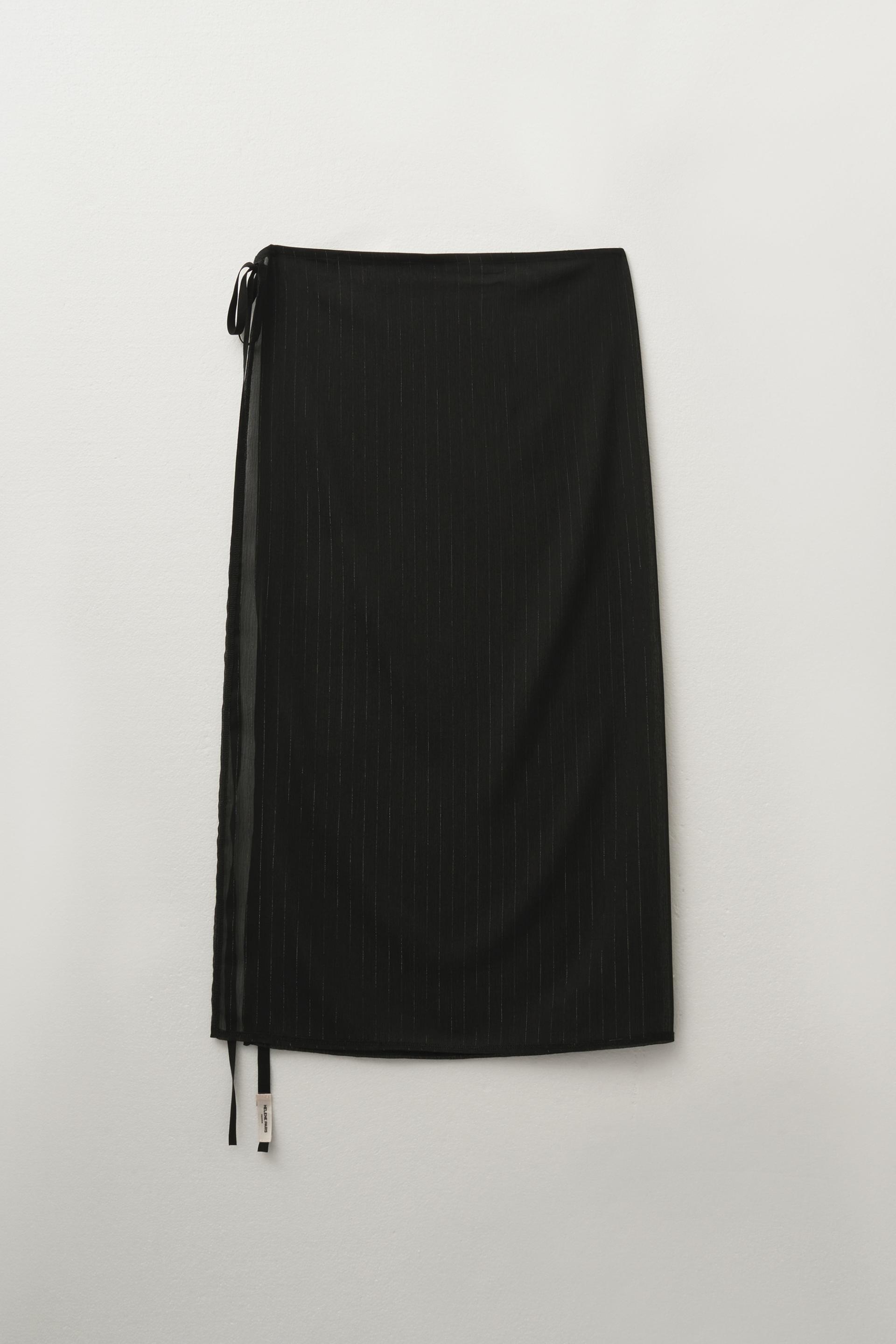 베일 스트라이프 랩 스커트 [블랙 스트라이프]
