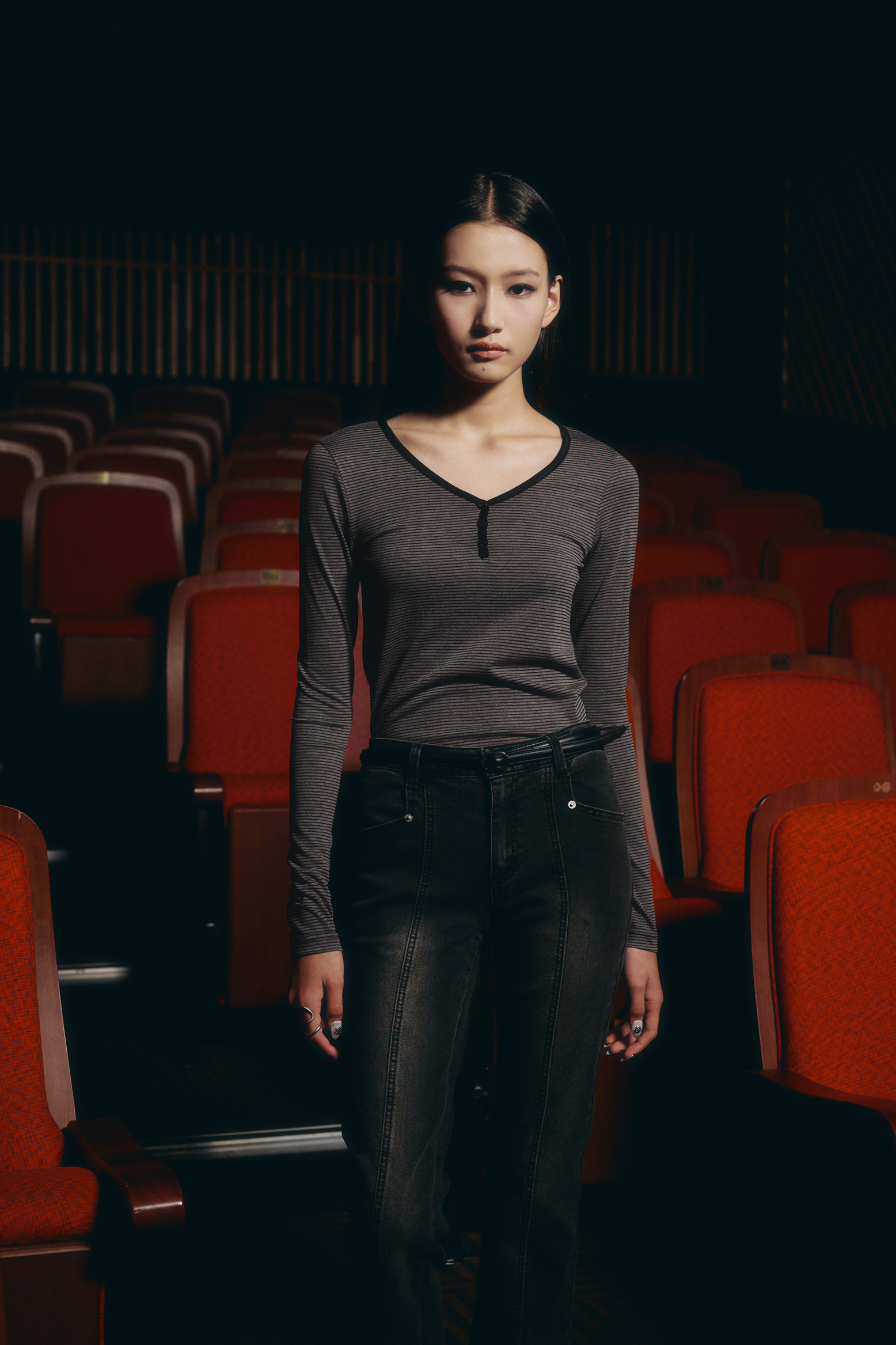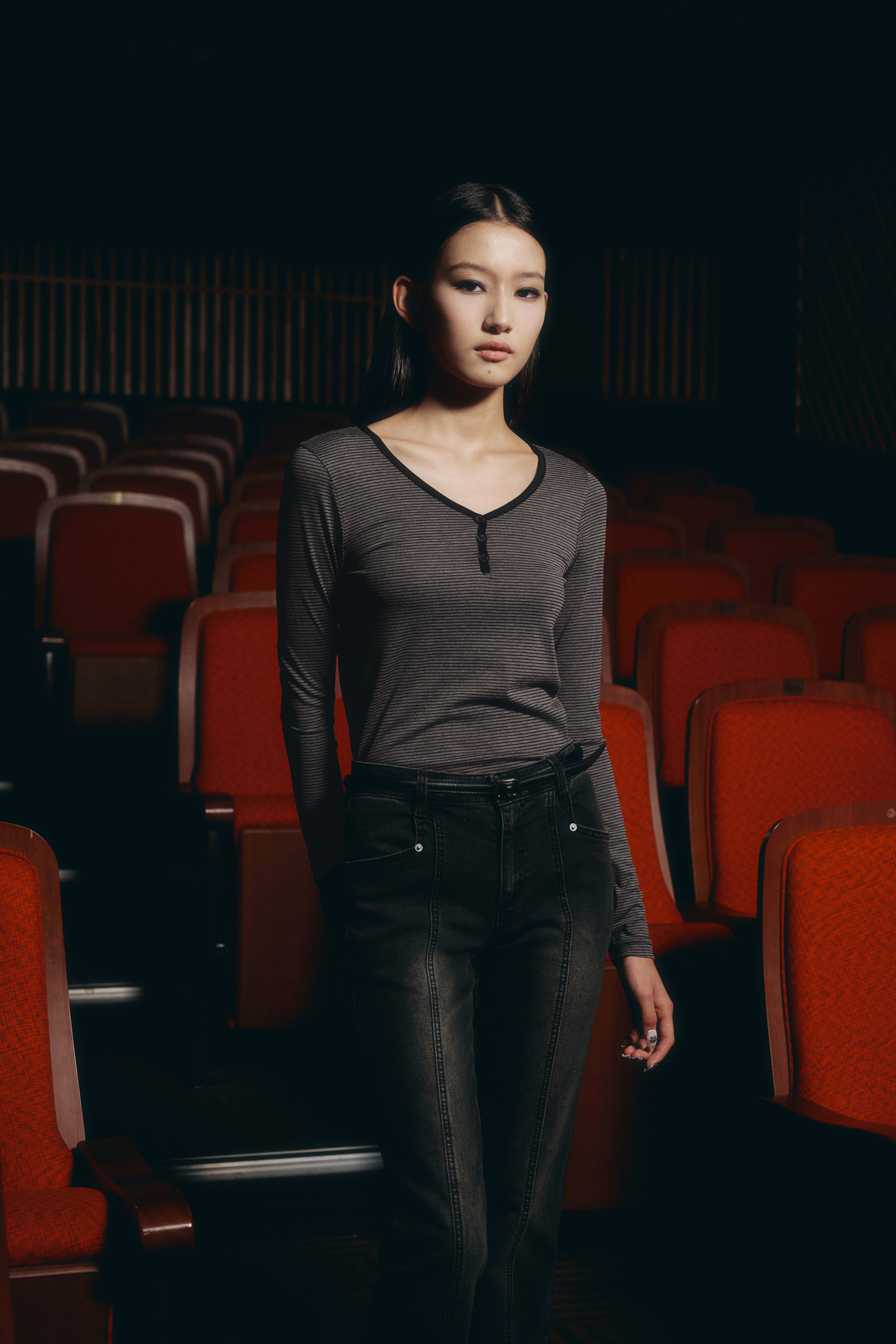 - 깊지 않은 V넥 디자인
