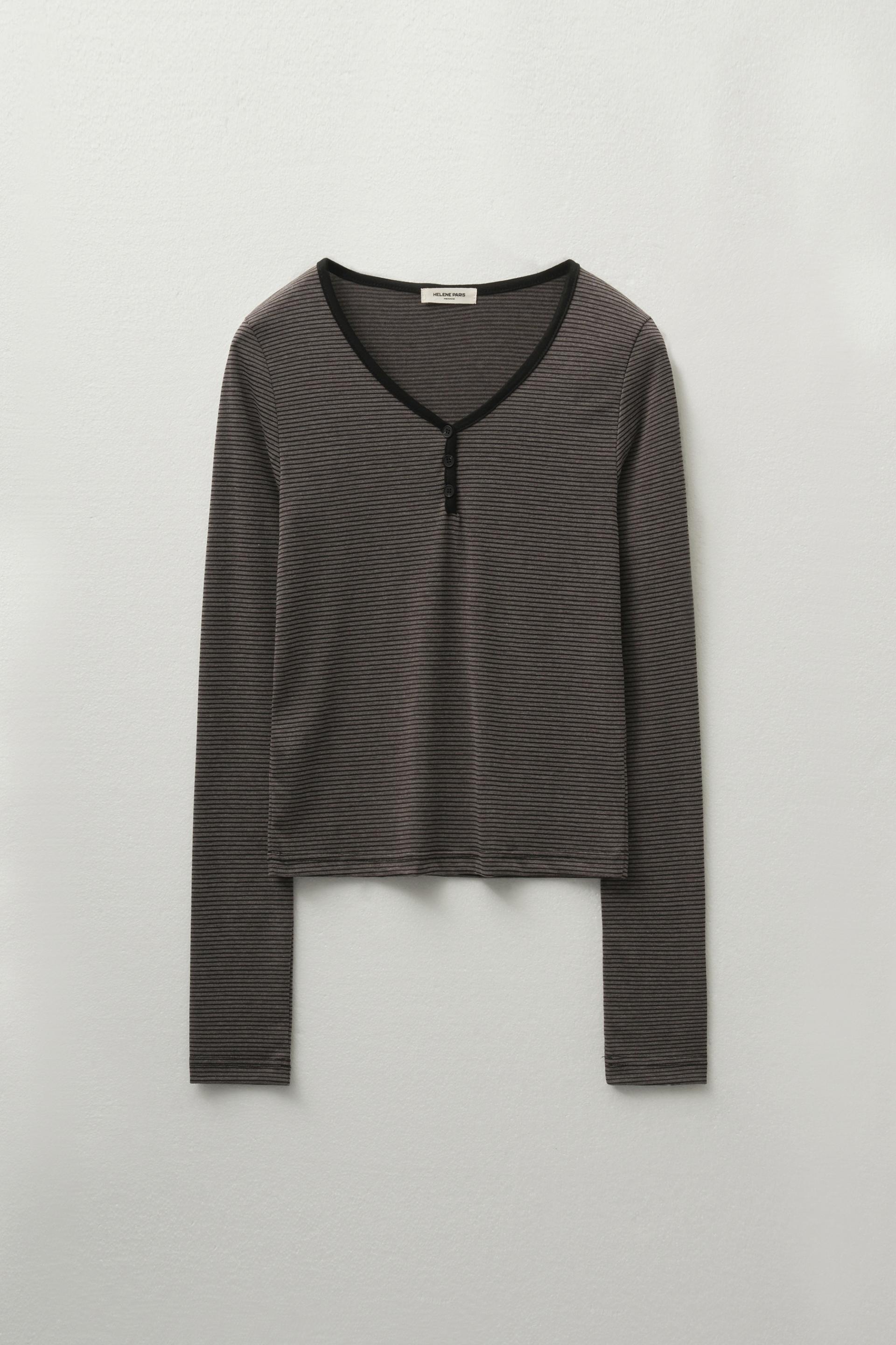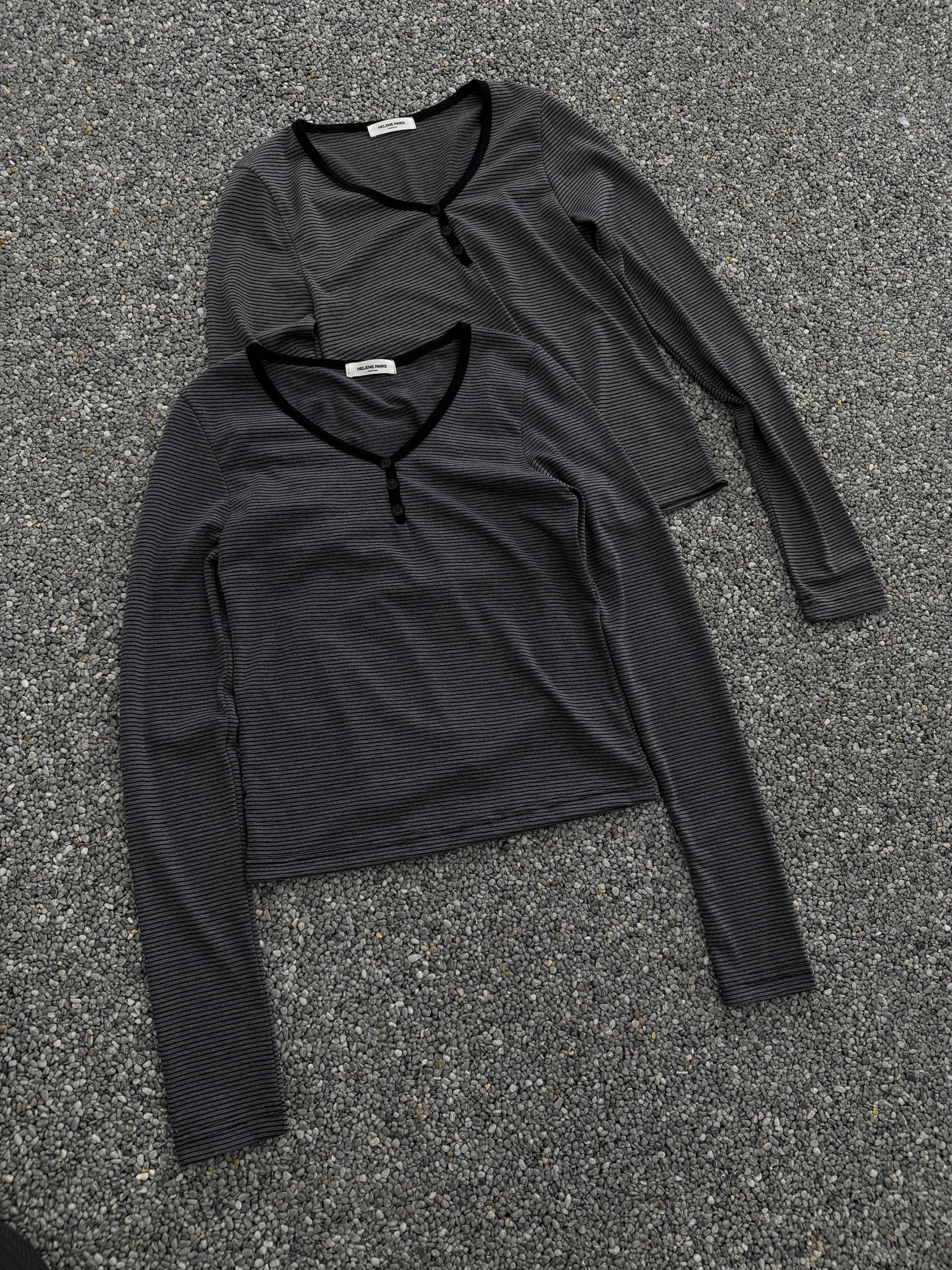 버튼 스트라이프 롱 슬리브 [마룬]
