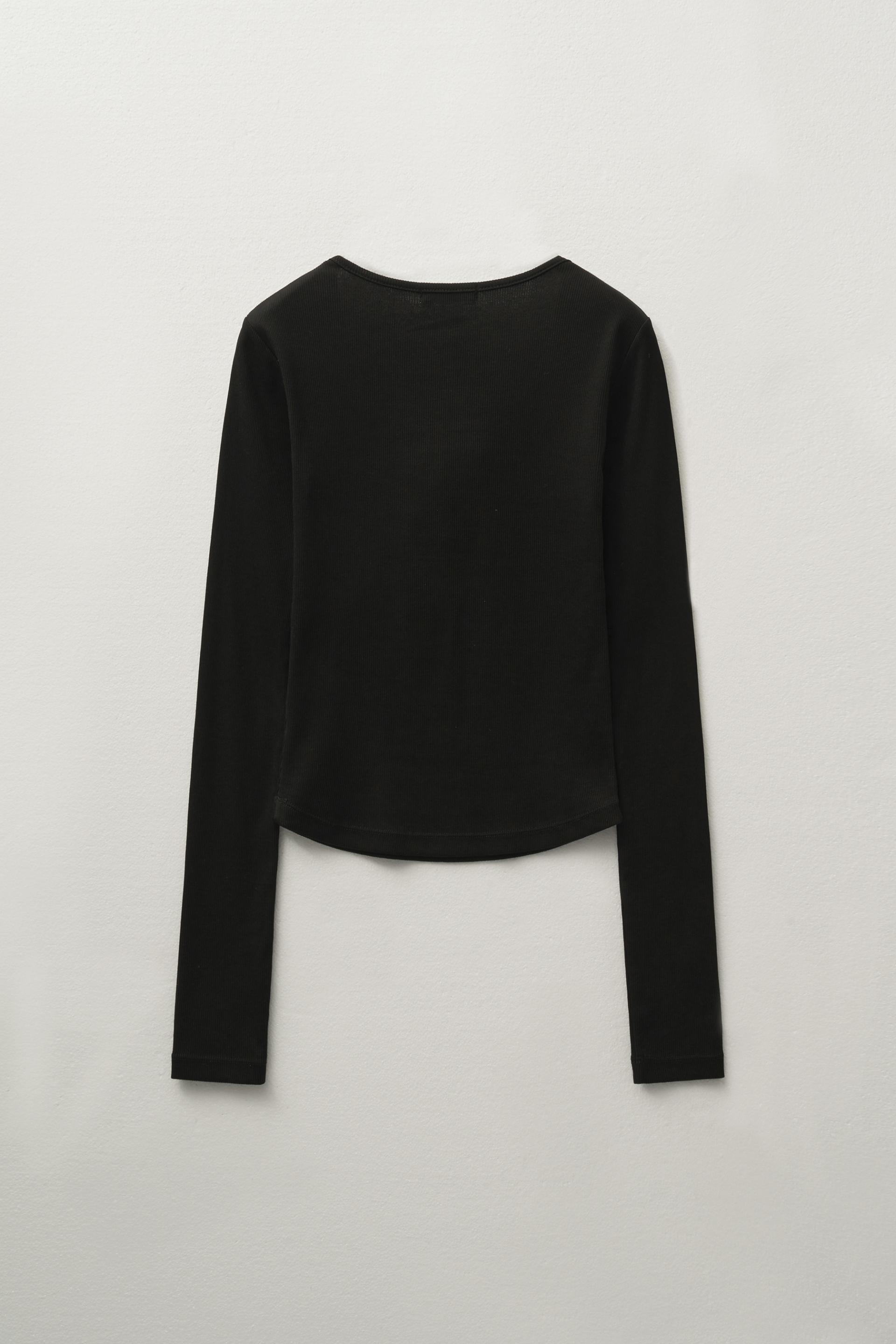 - 웨이스트 라인을 자연스럽게 드러내는 세미 엠보이 컷 밑단