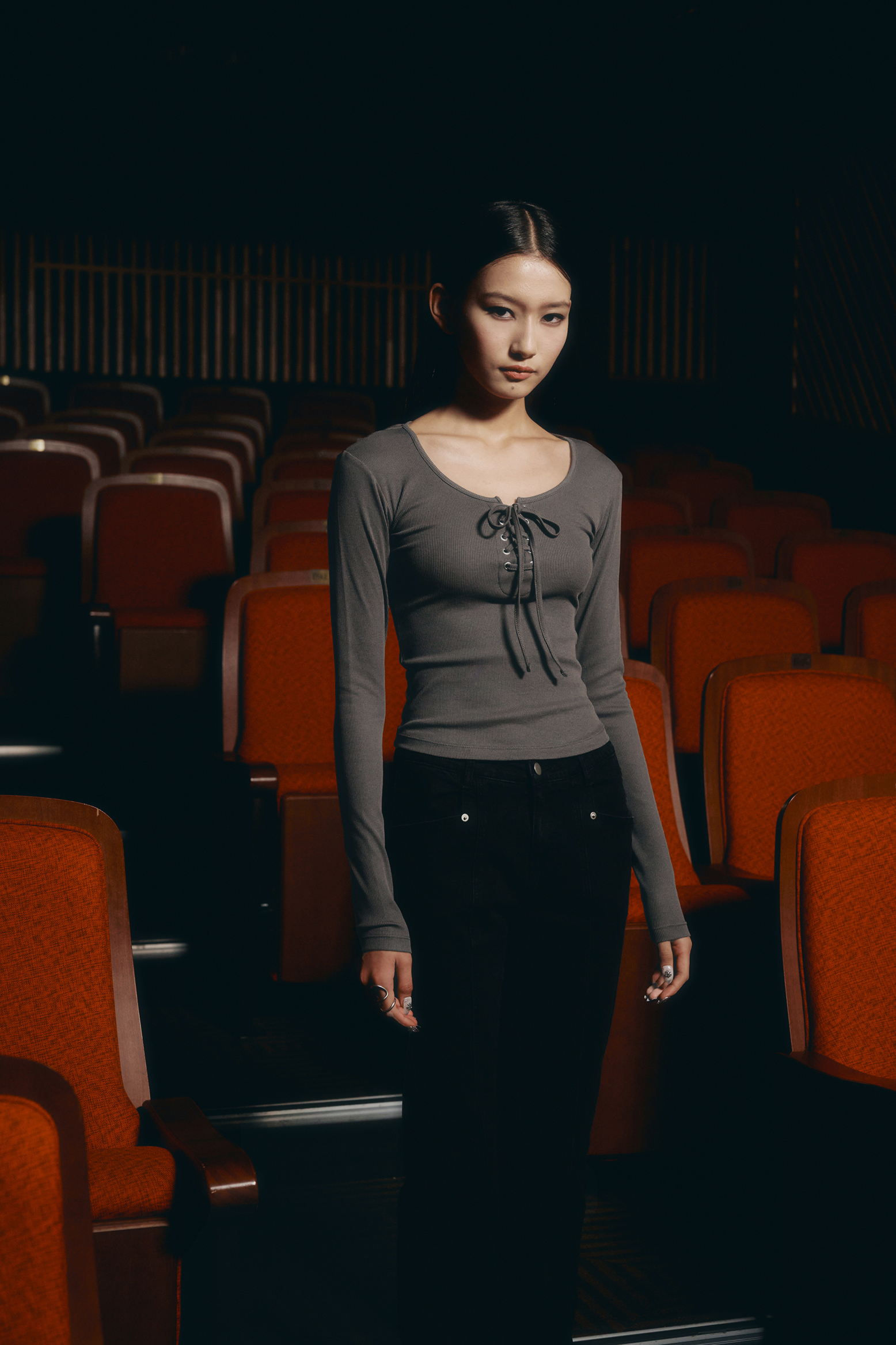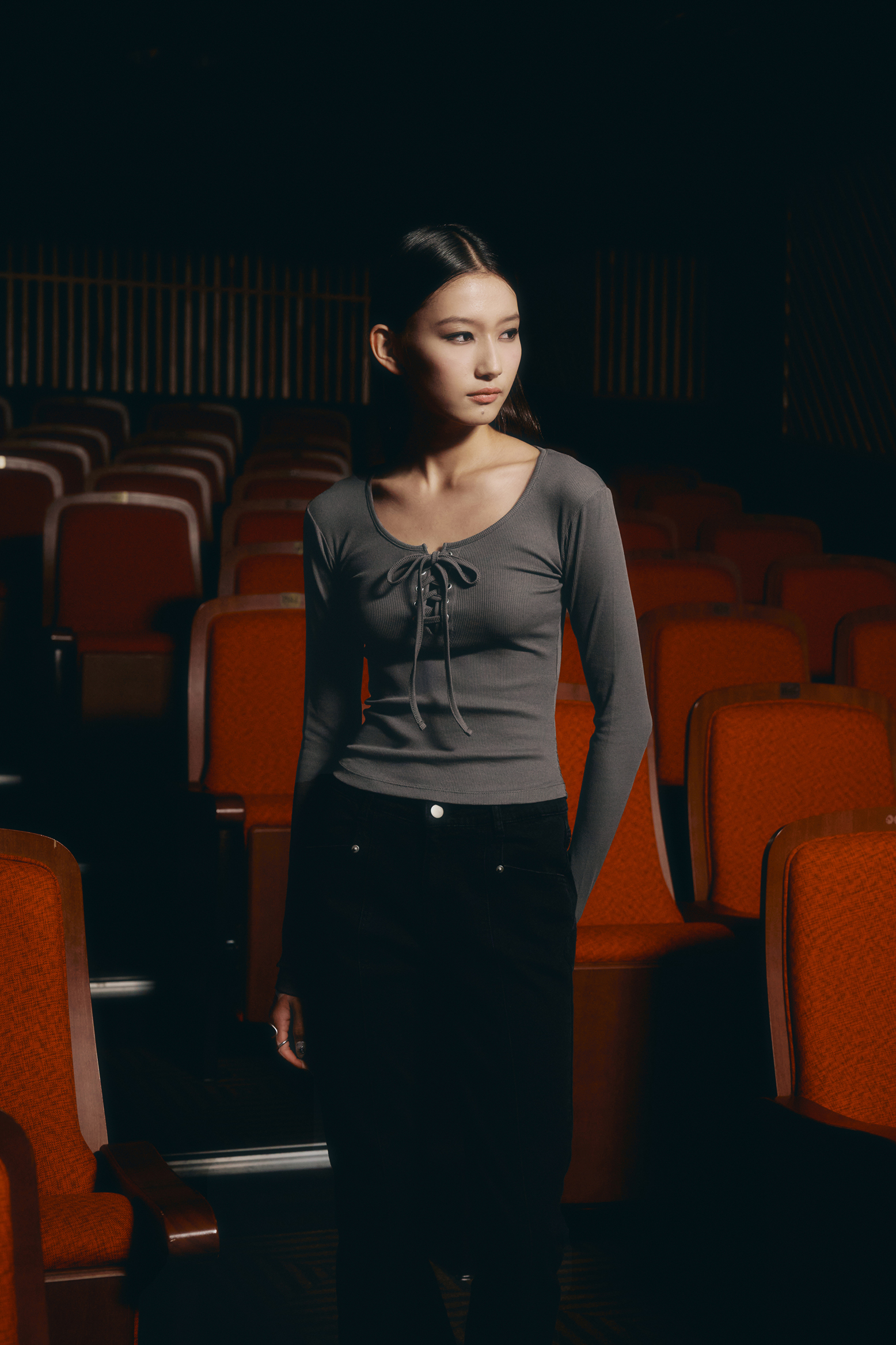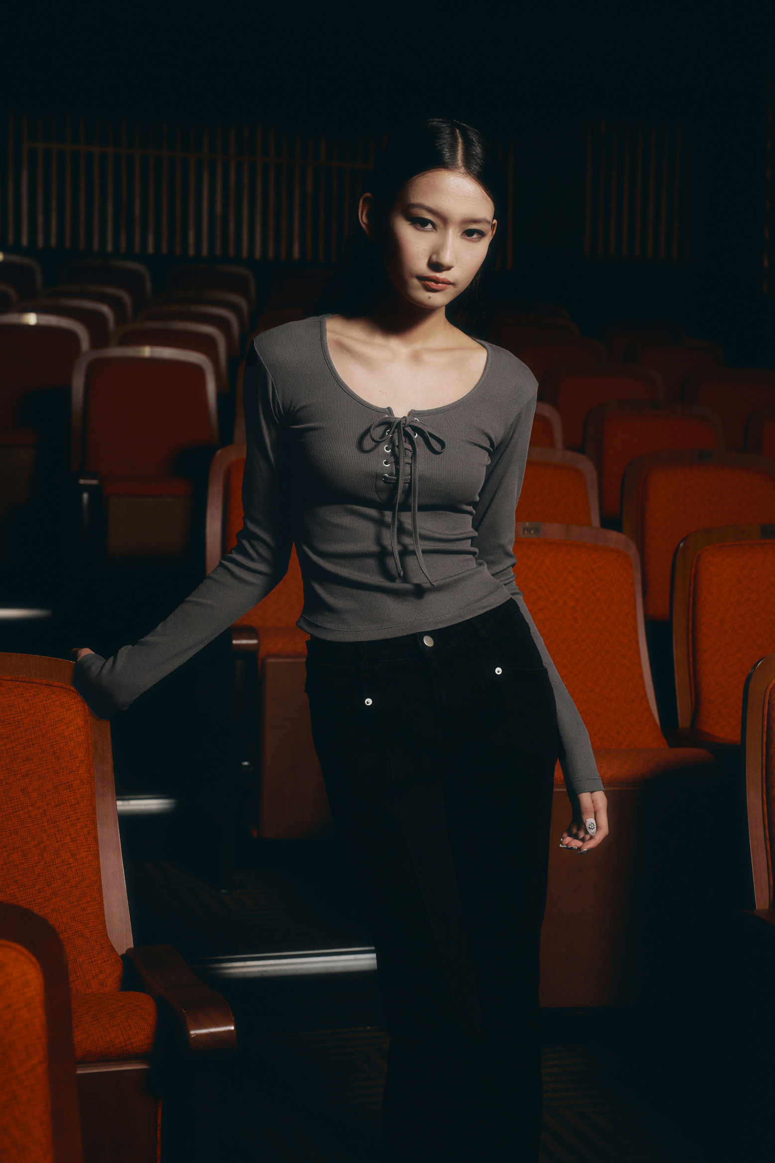 아일렛 리본 롱 슬리브 [딥그레이]