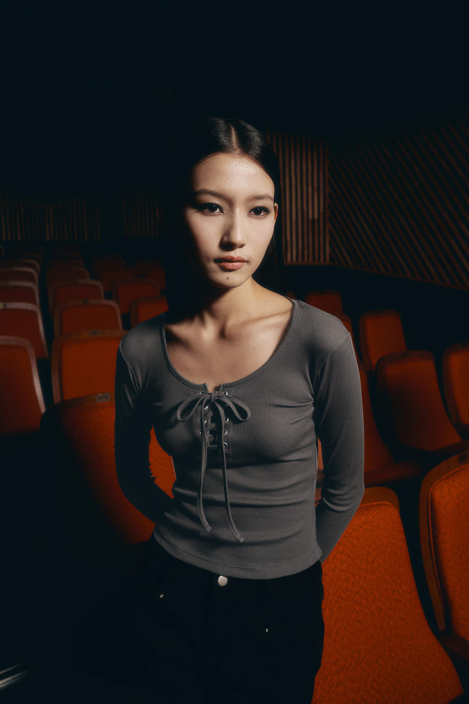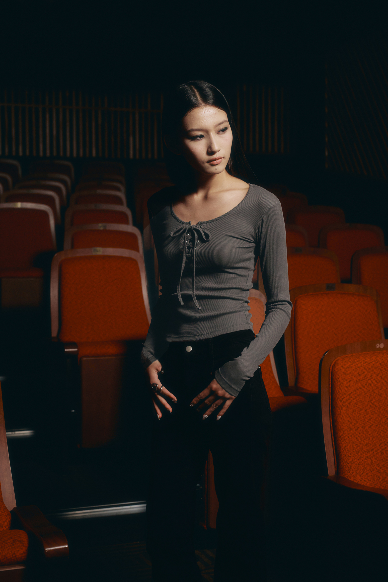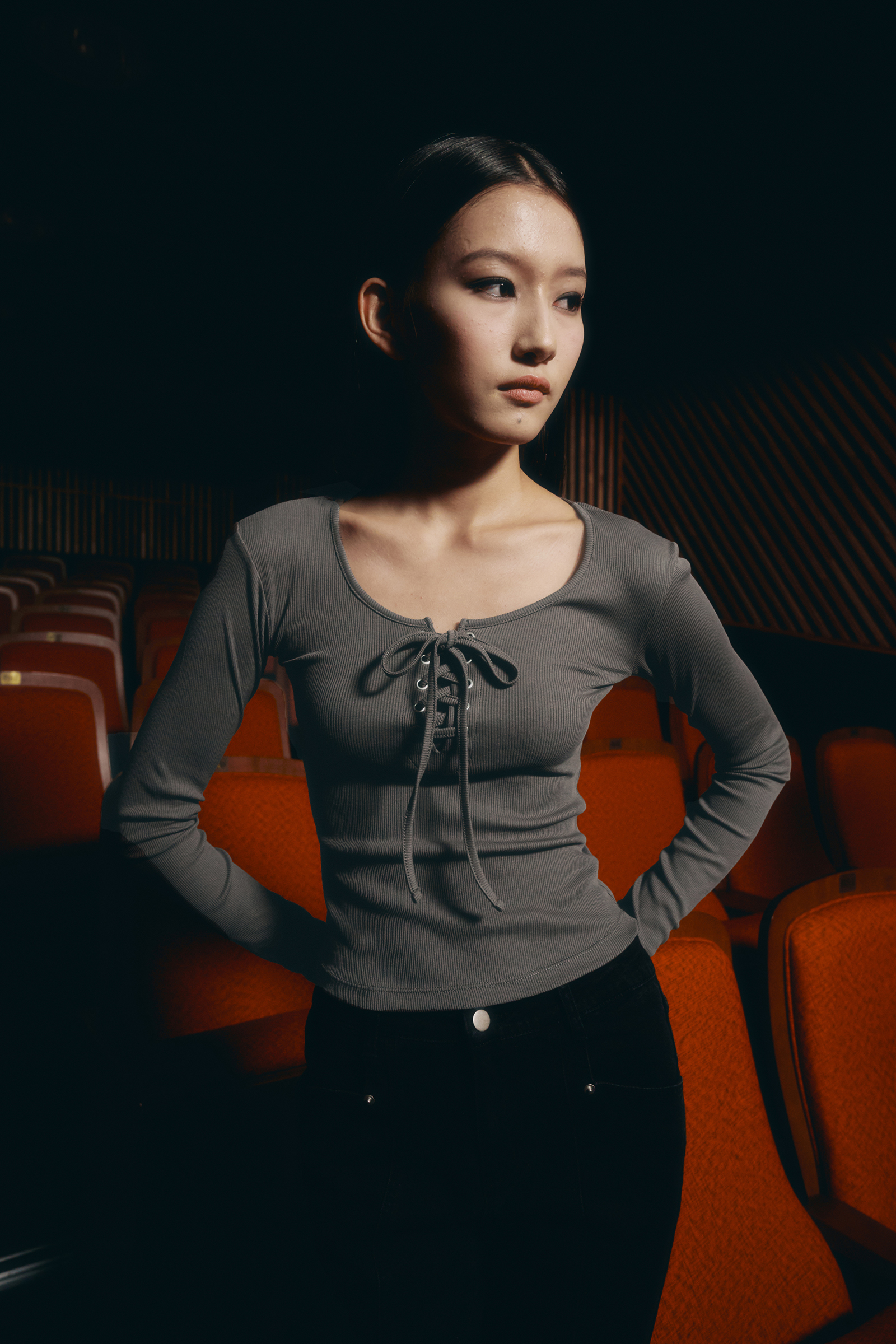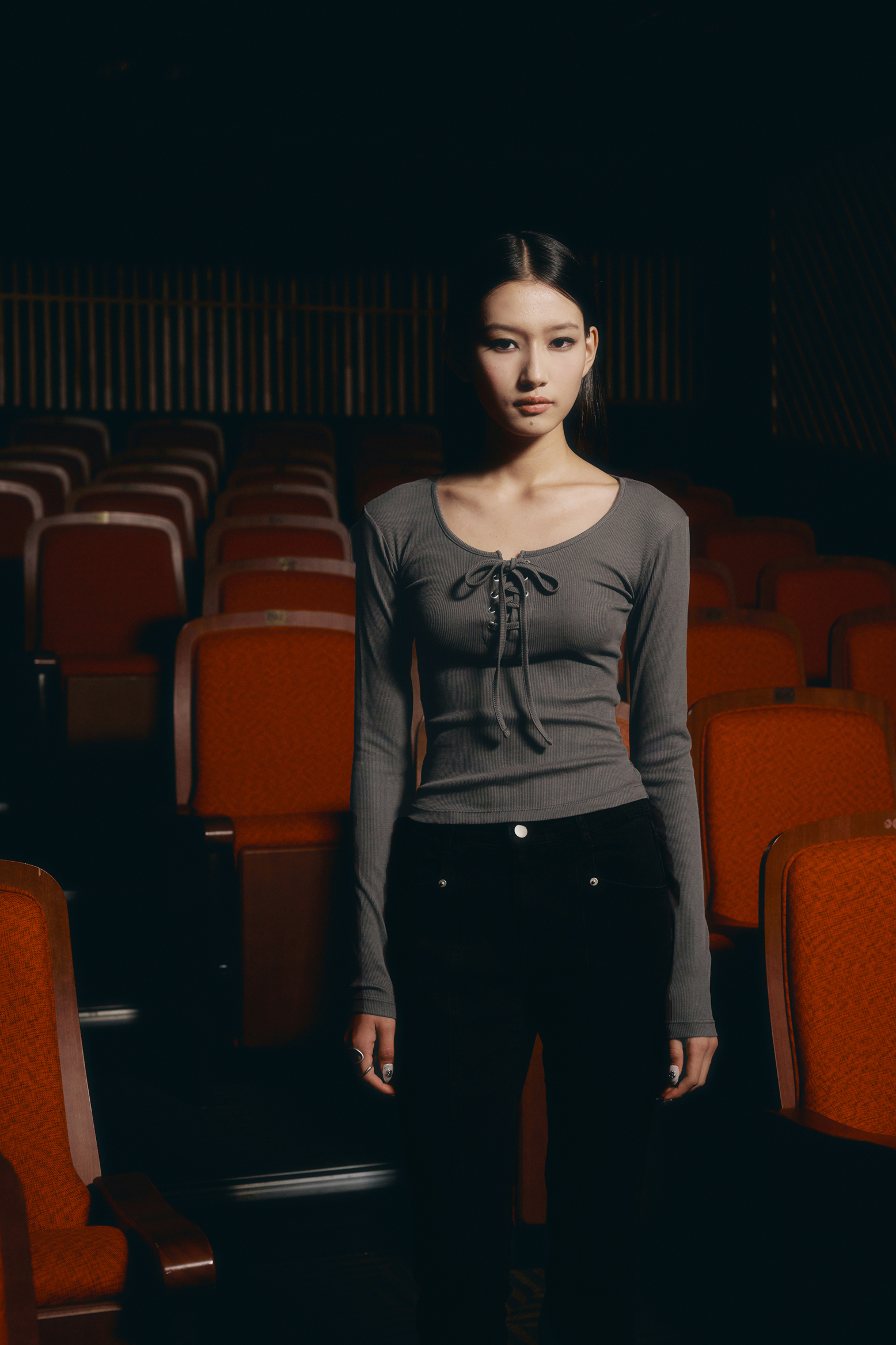 아일렛 리본 롱 슬리브 [딥그레이]
