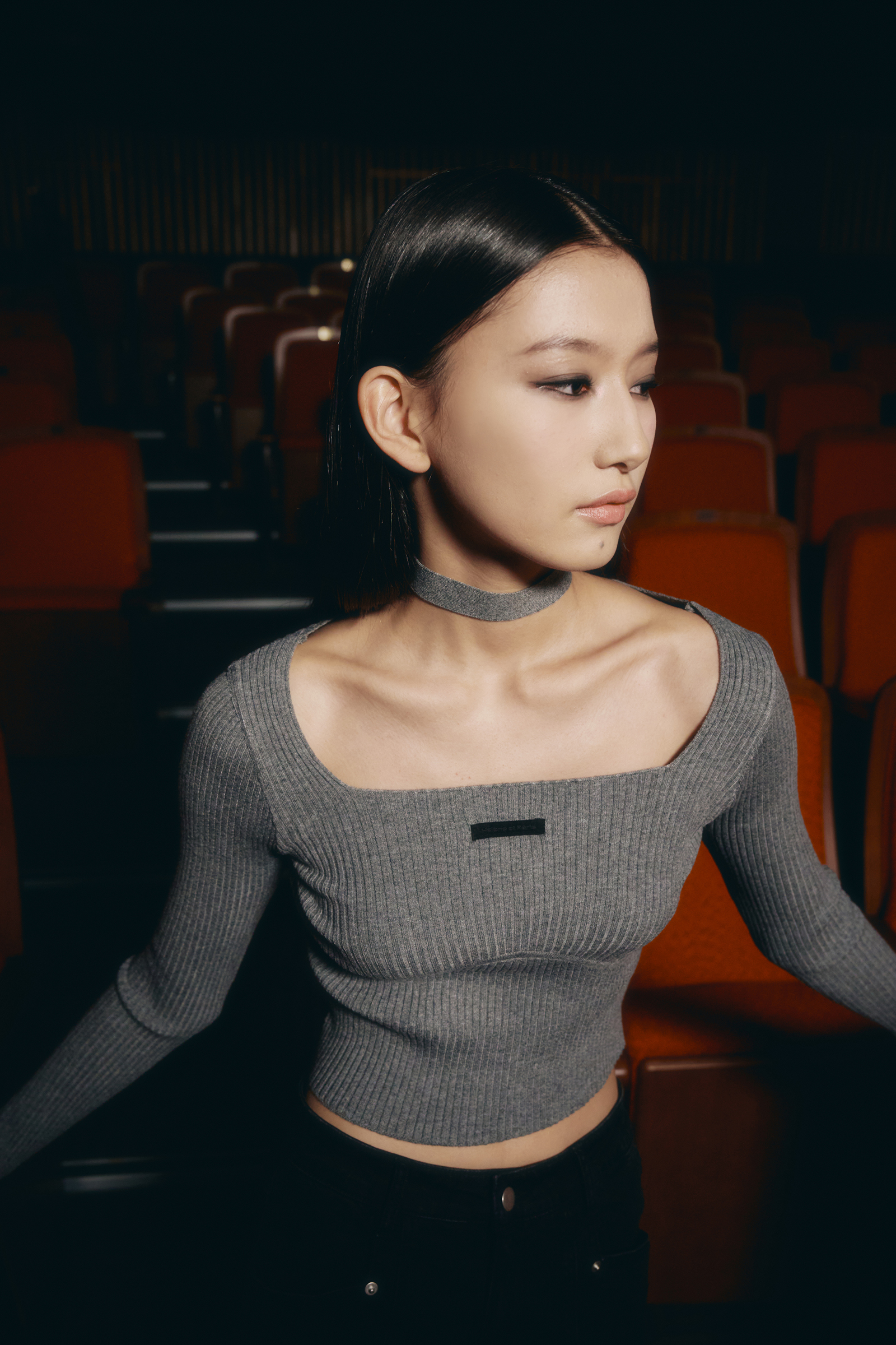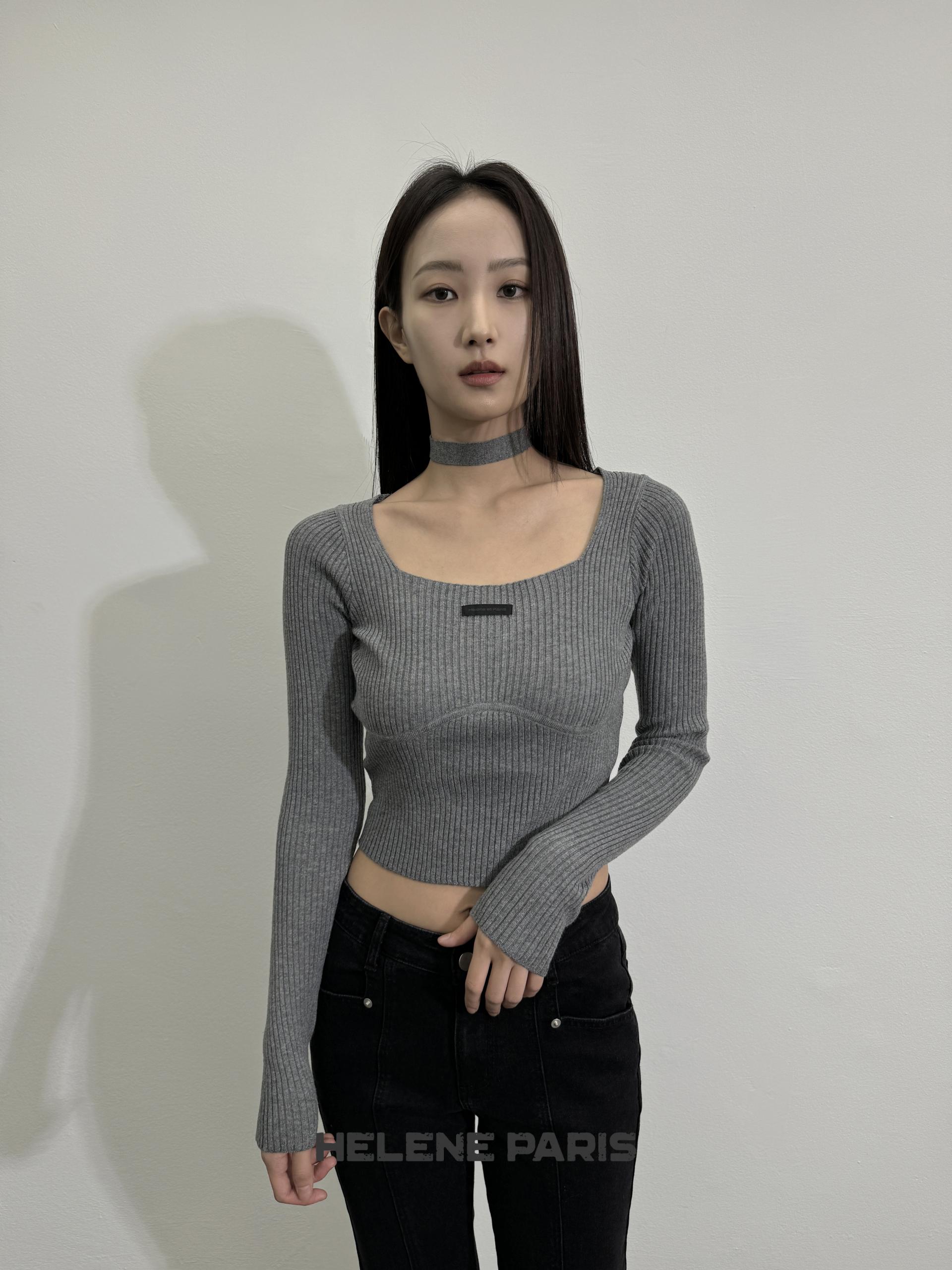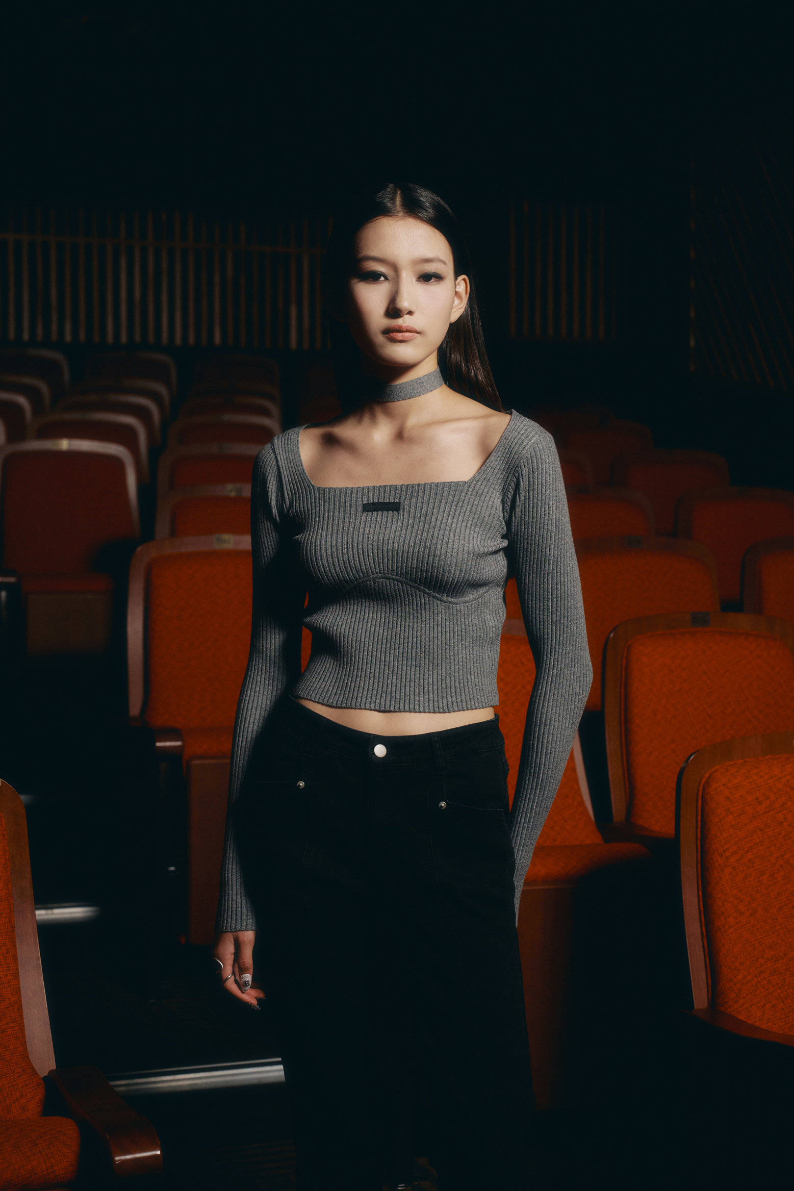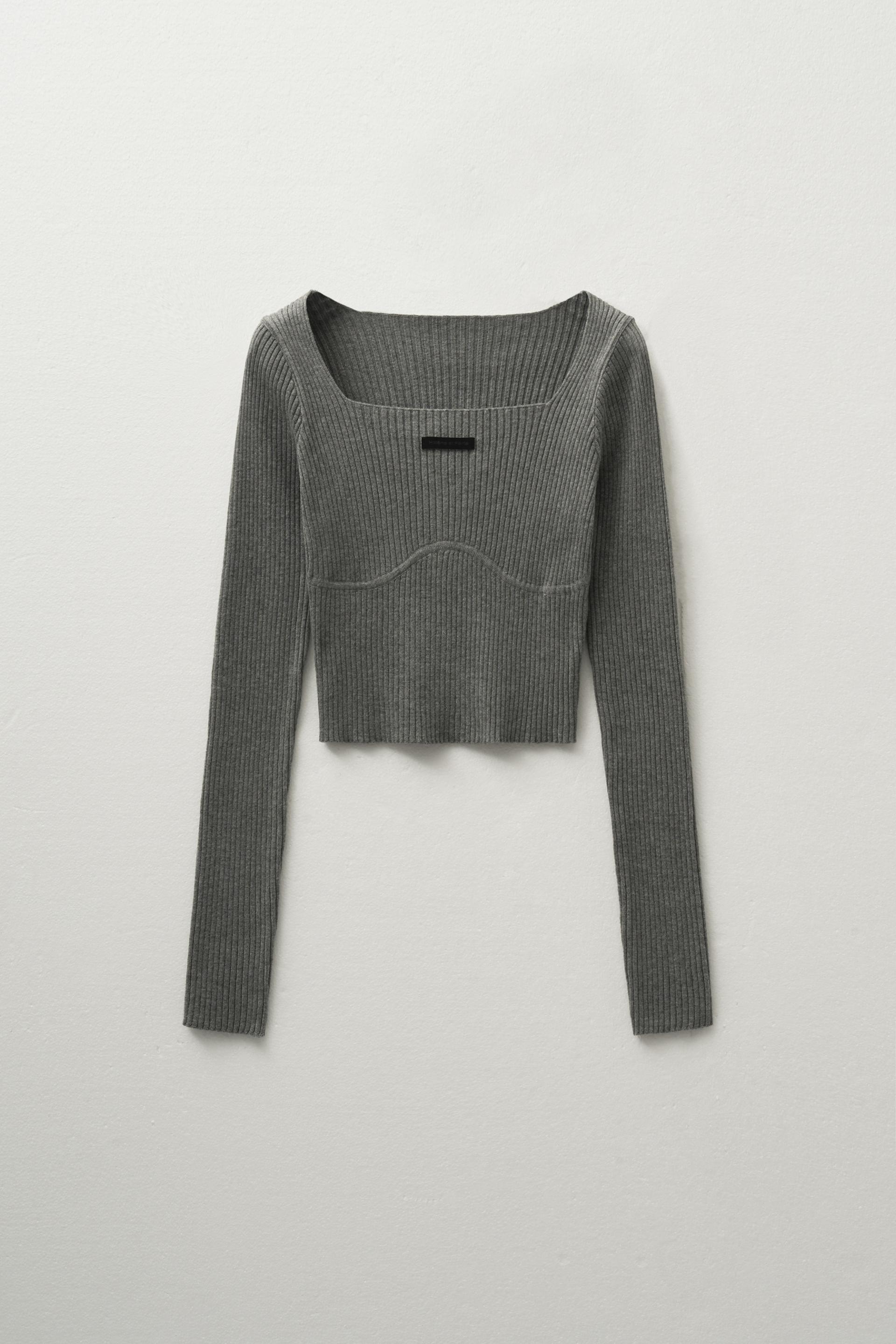 - 24SS 스퀘어 넥 리브드 니트 롱 슬리브 버전