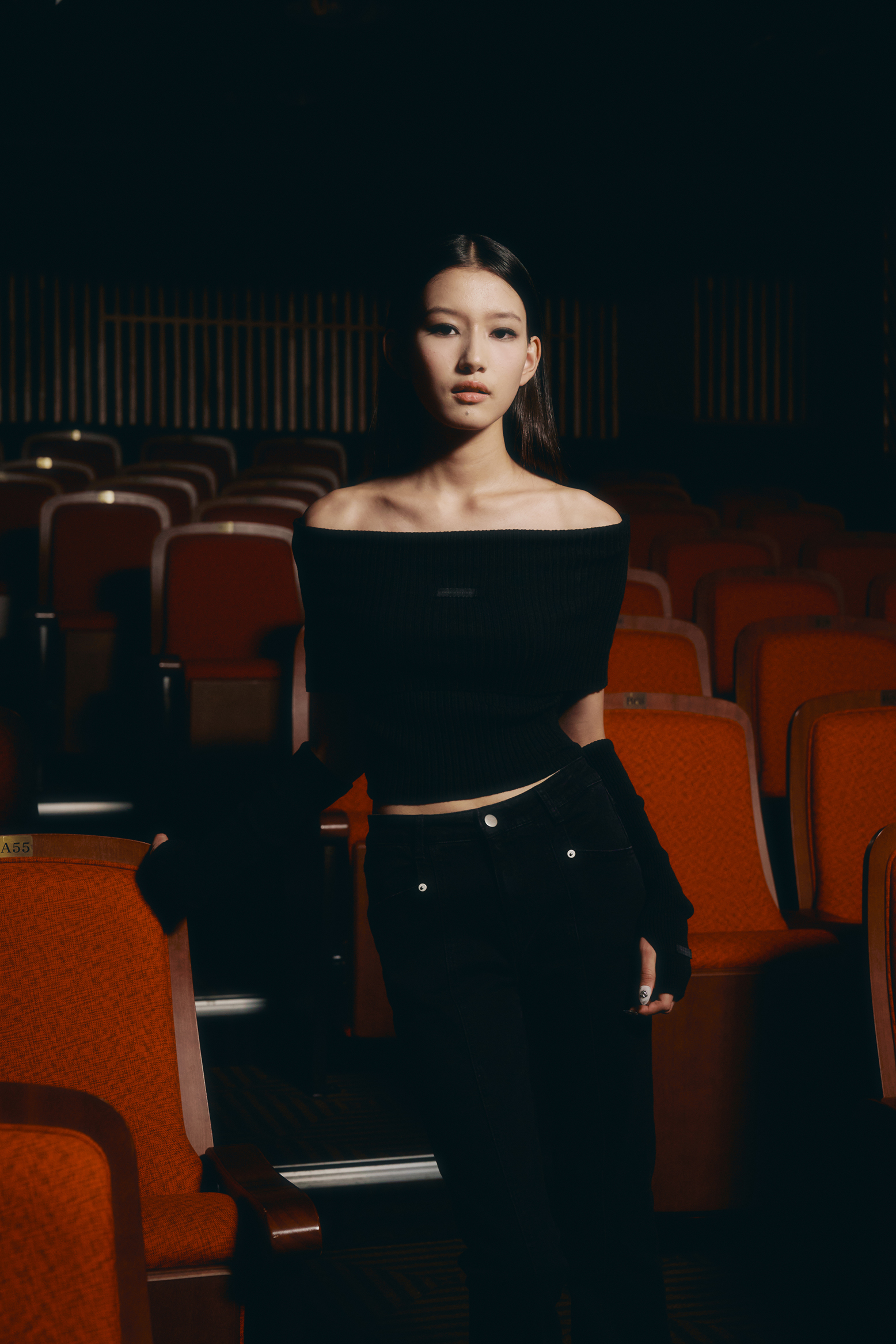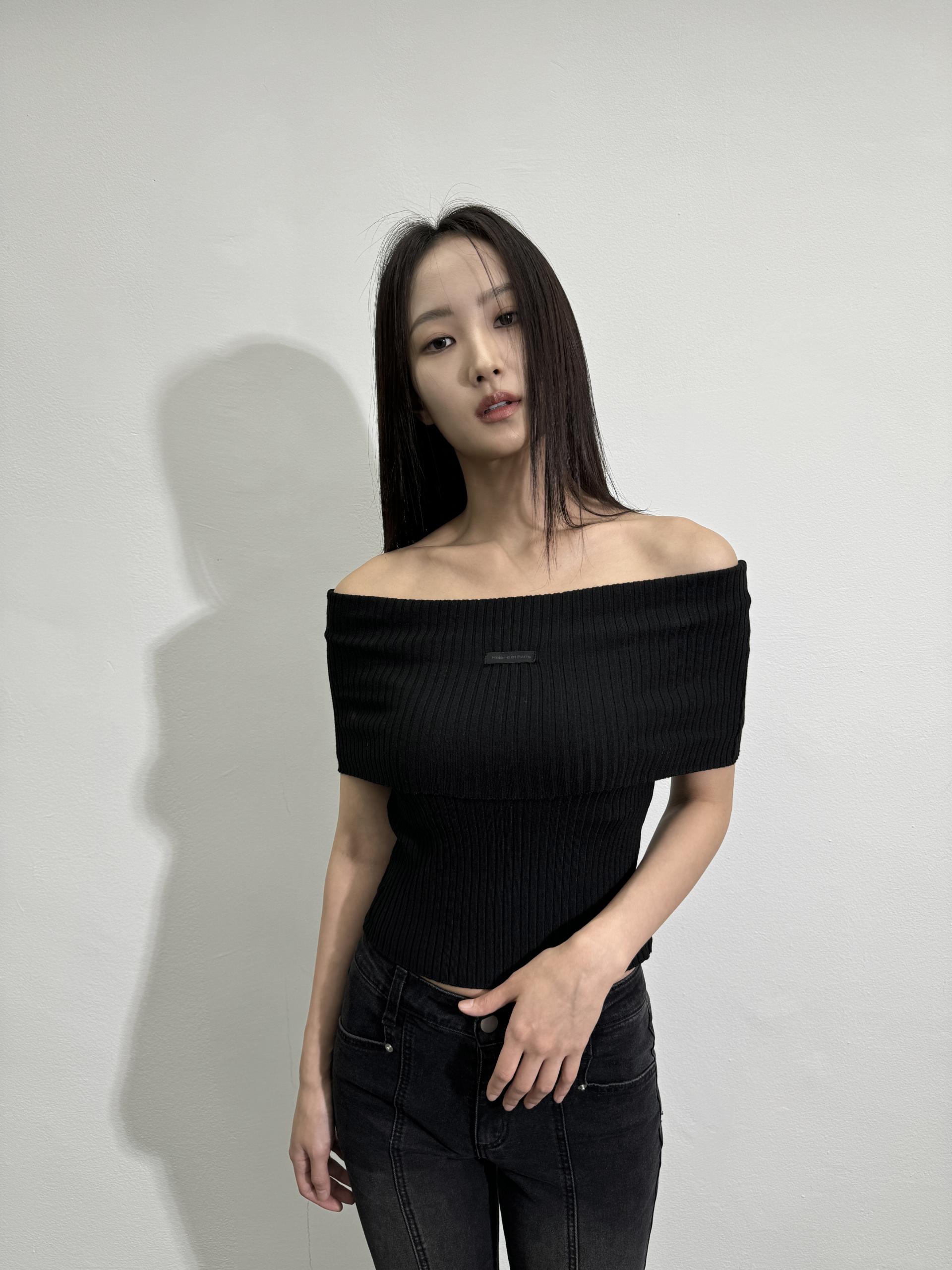 - 오프숄더 넥 라인으로 슬림하고 페미닌한 무드 연출