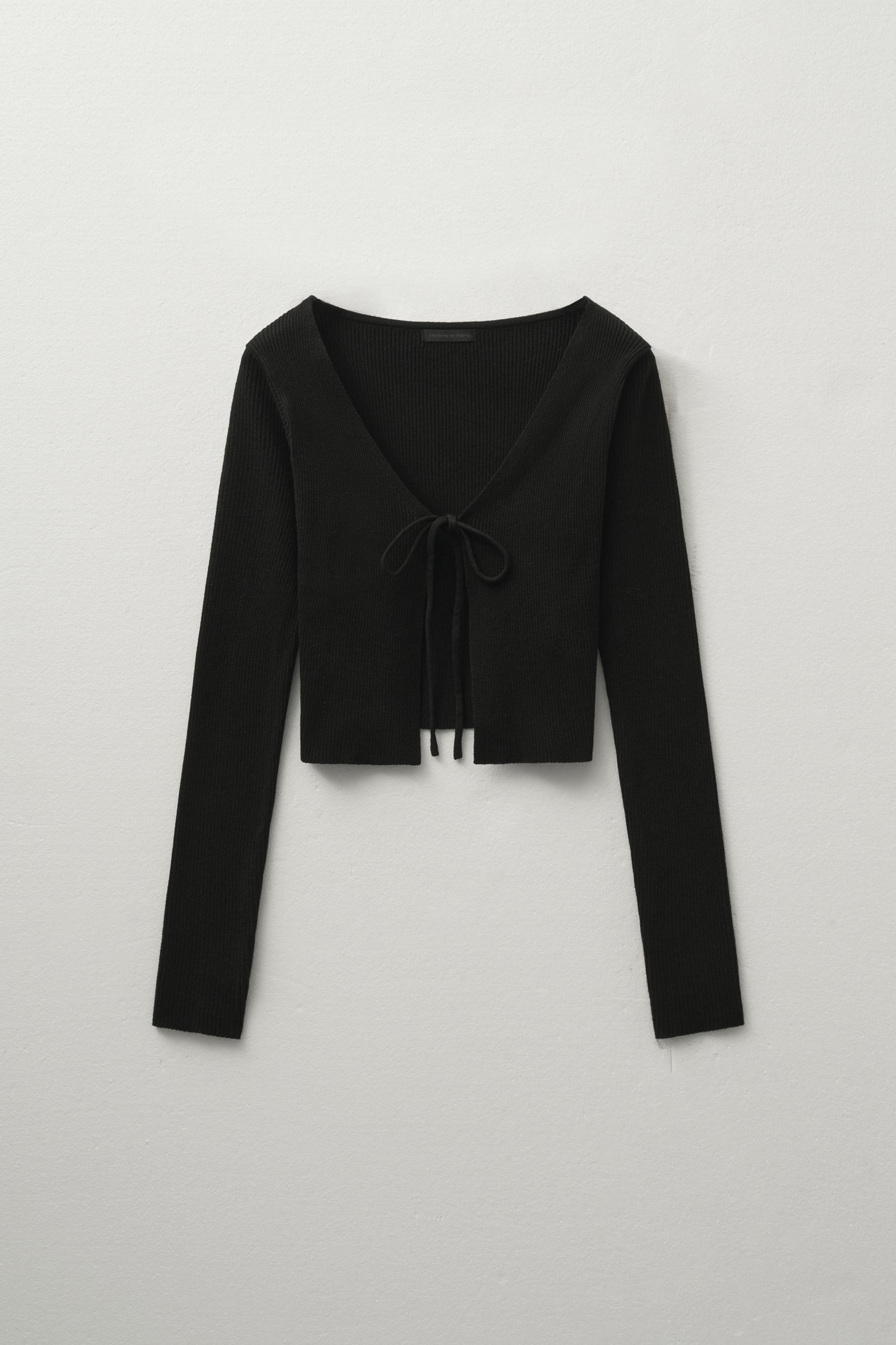 원 리본 니트 가디건 [블랙]