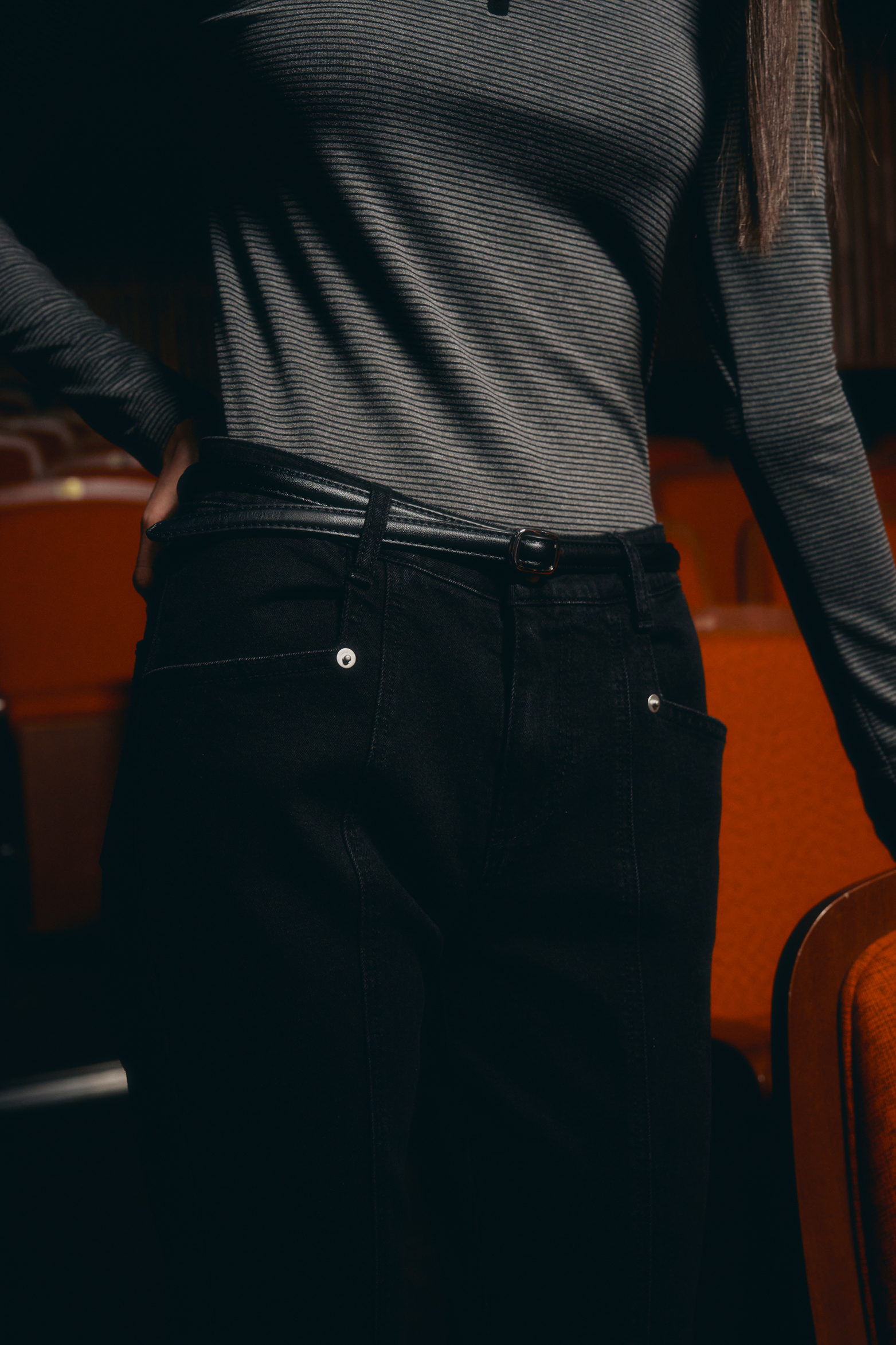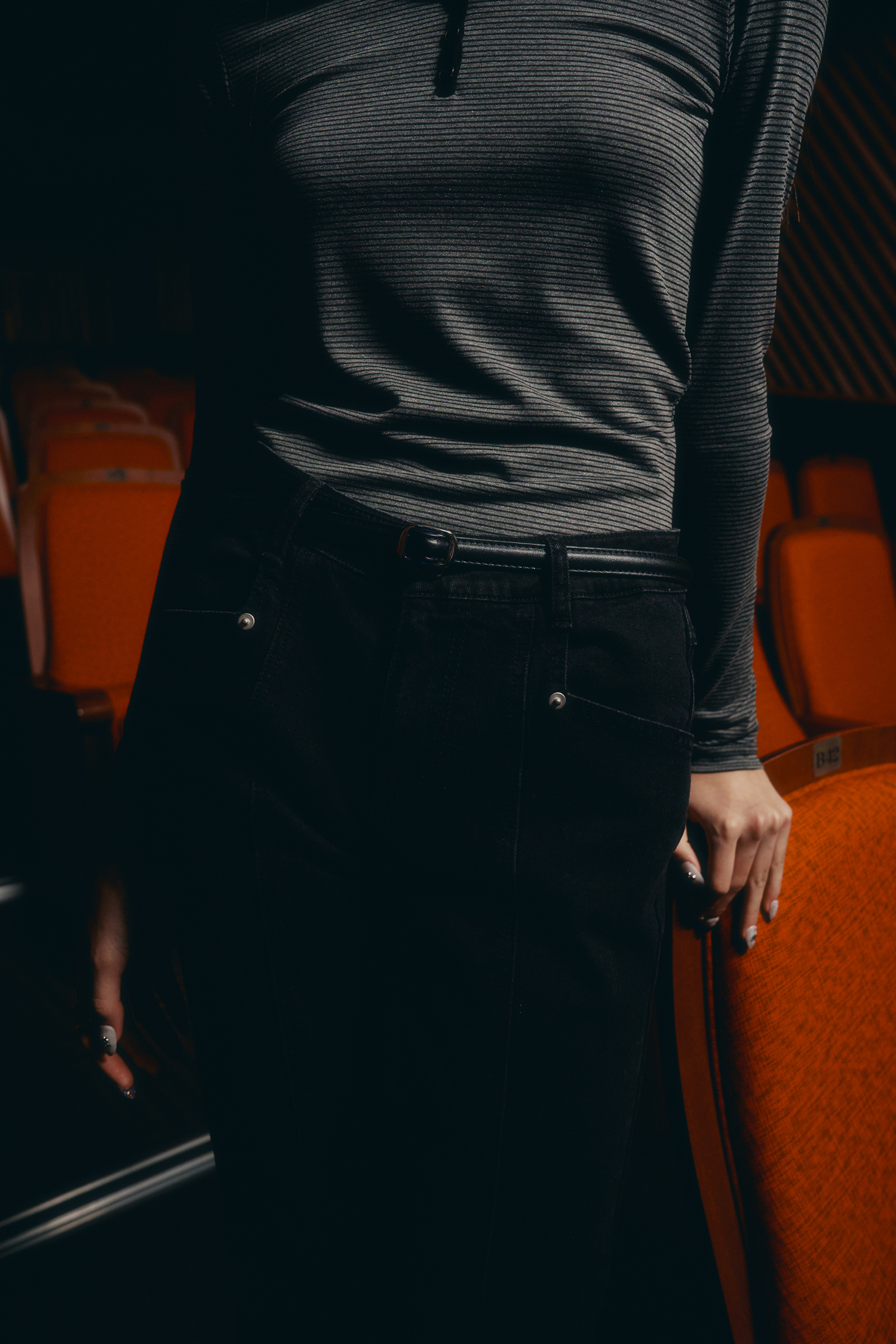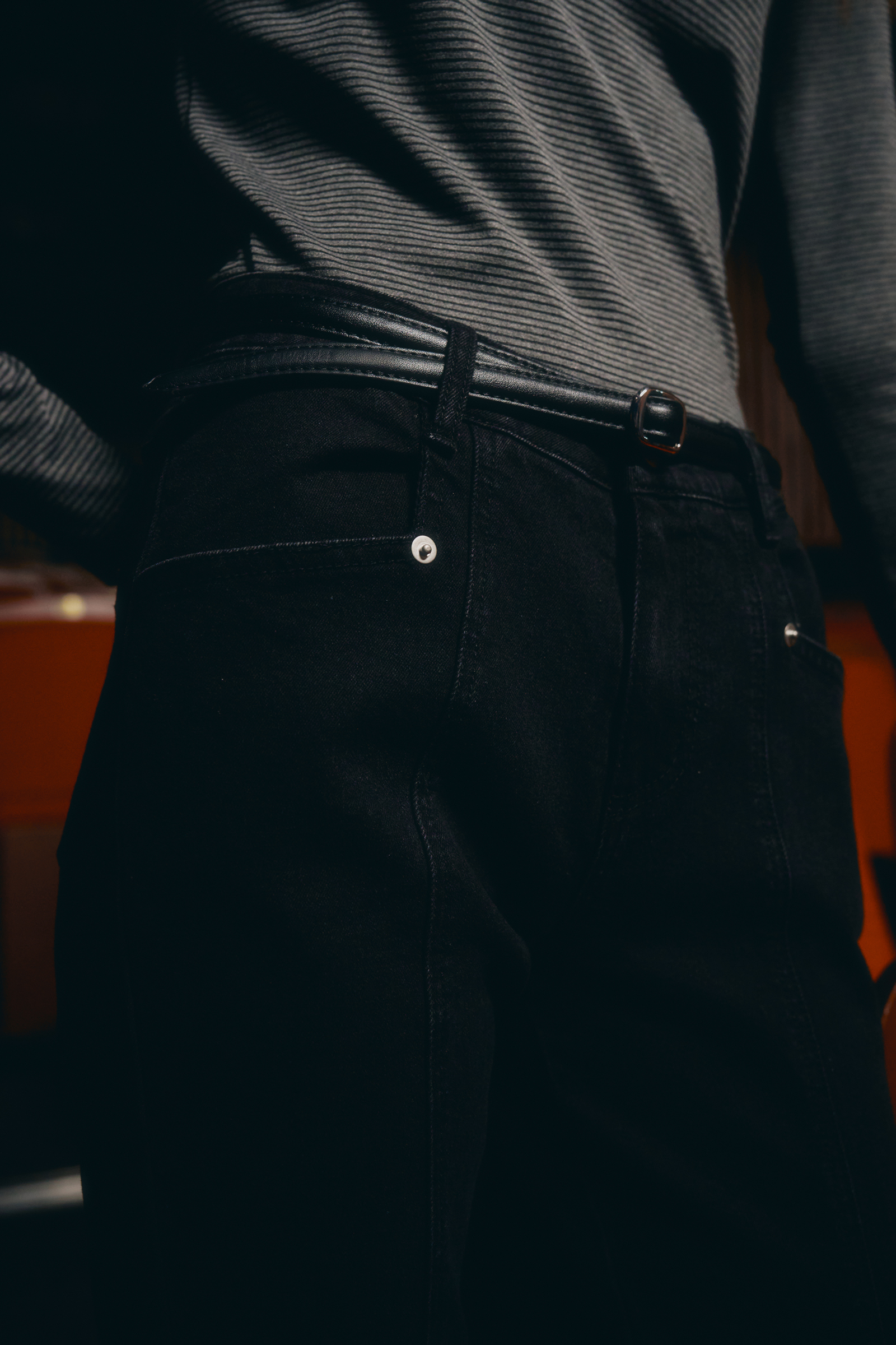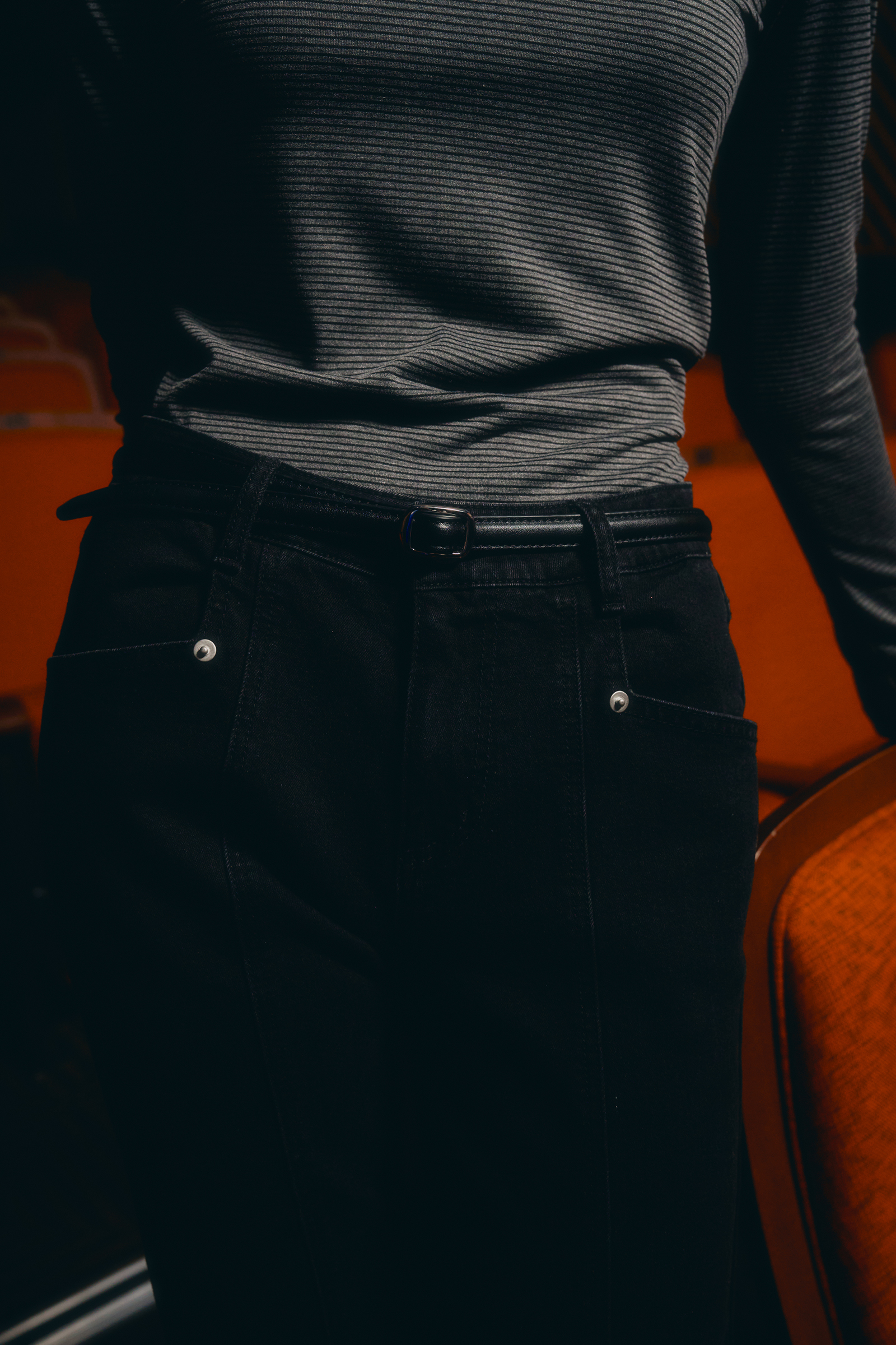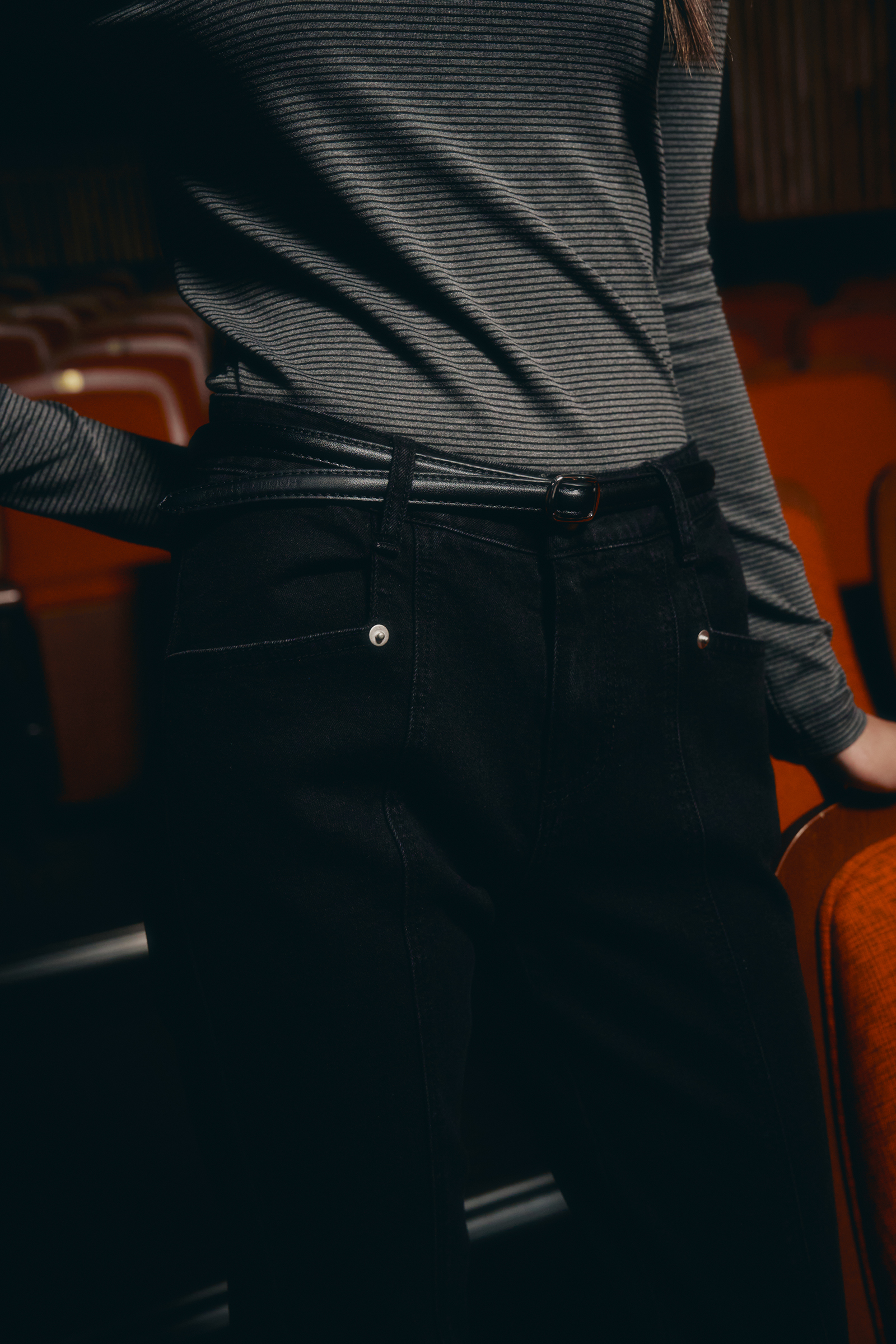 - 단추 구멍 없이 실버 버클로 고정하여 허리 사이즈 조절 가능