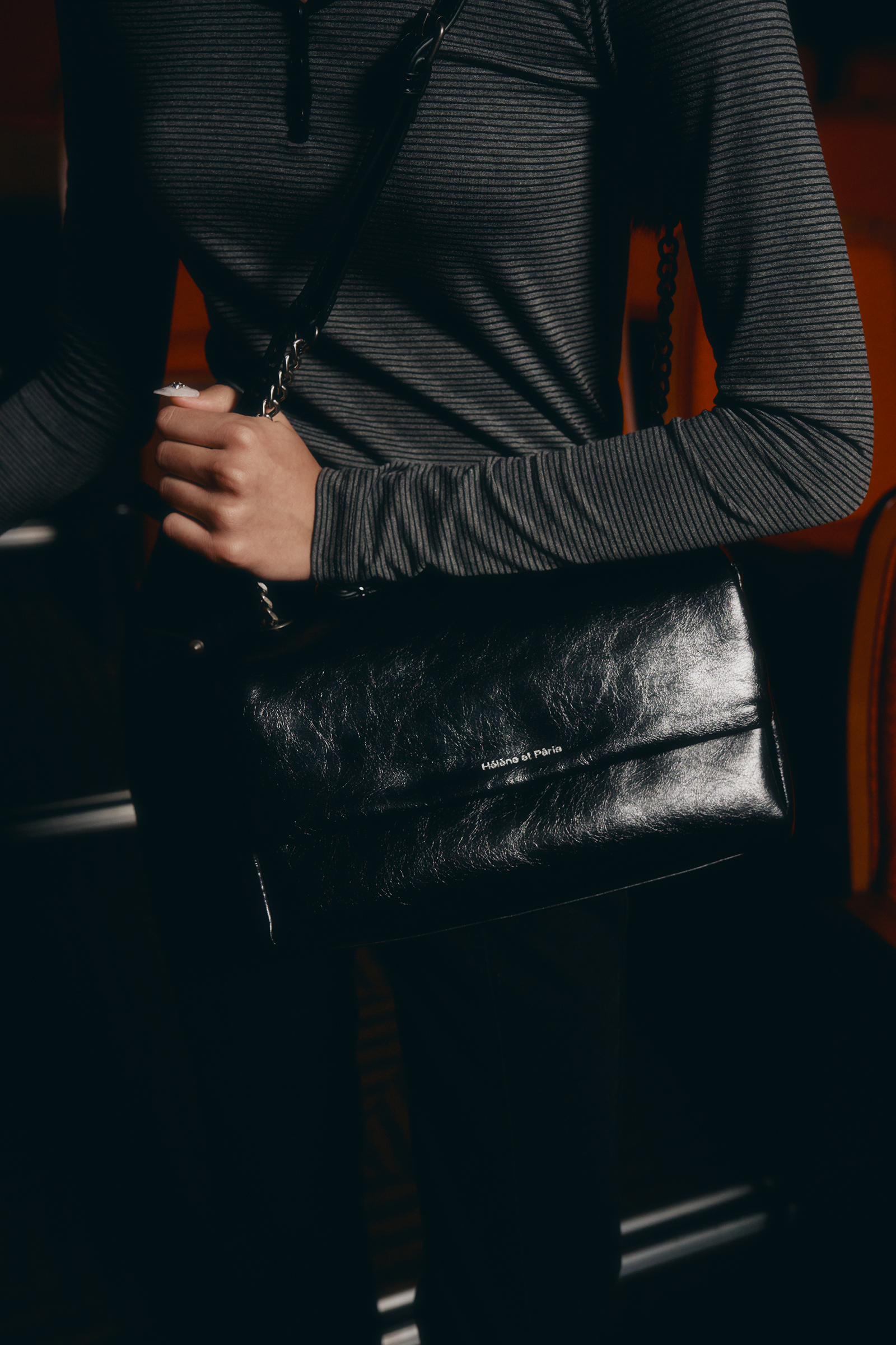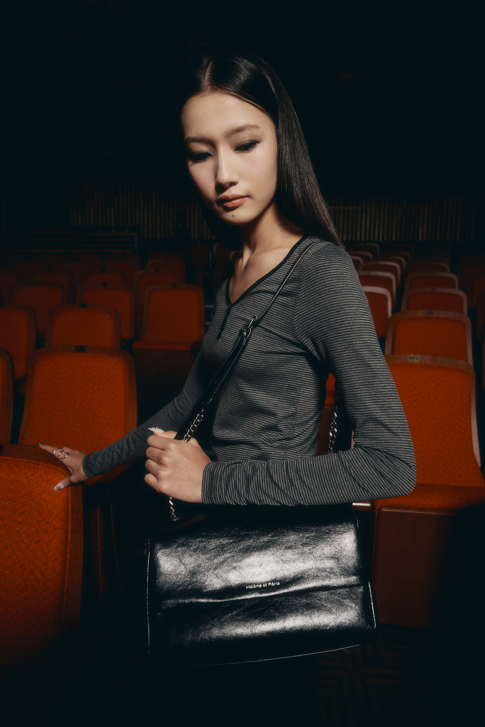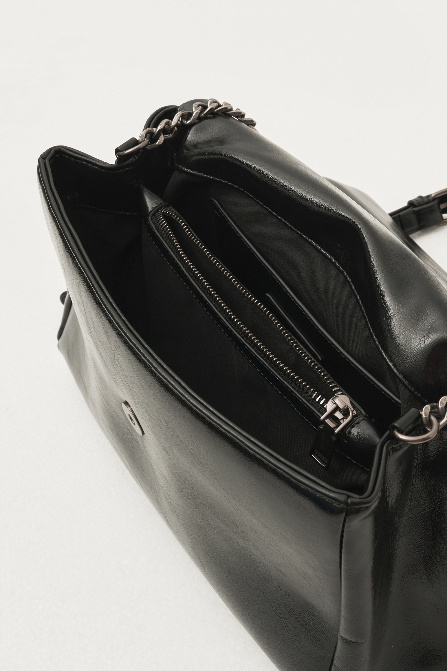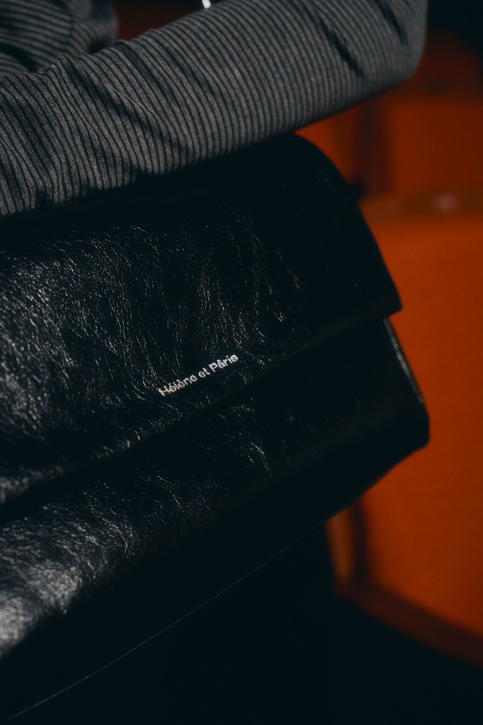 - 제트 블랙에 가까운, 은은한 광택감의 비건 레더