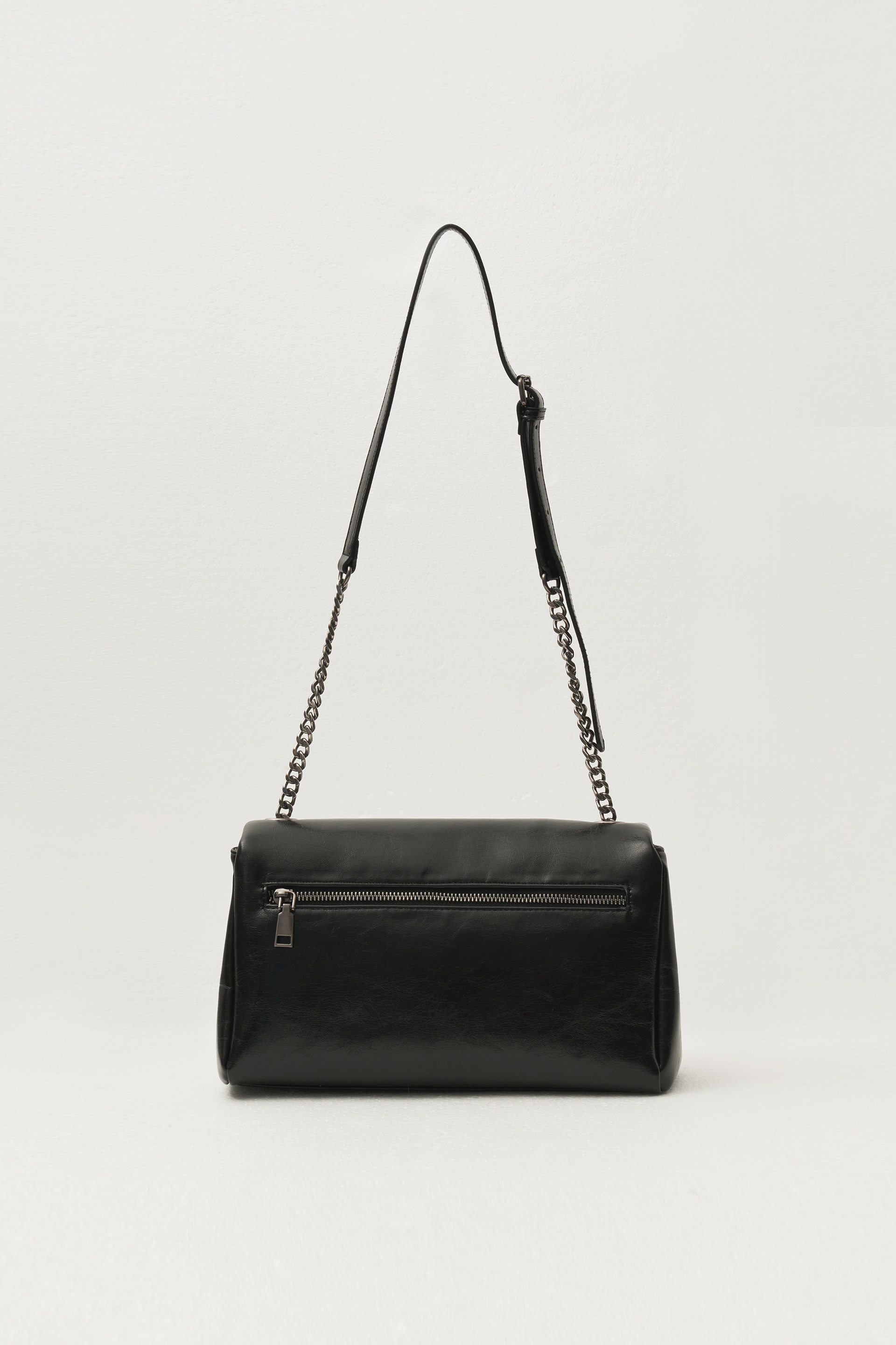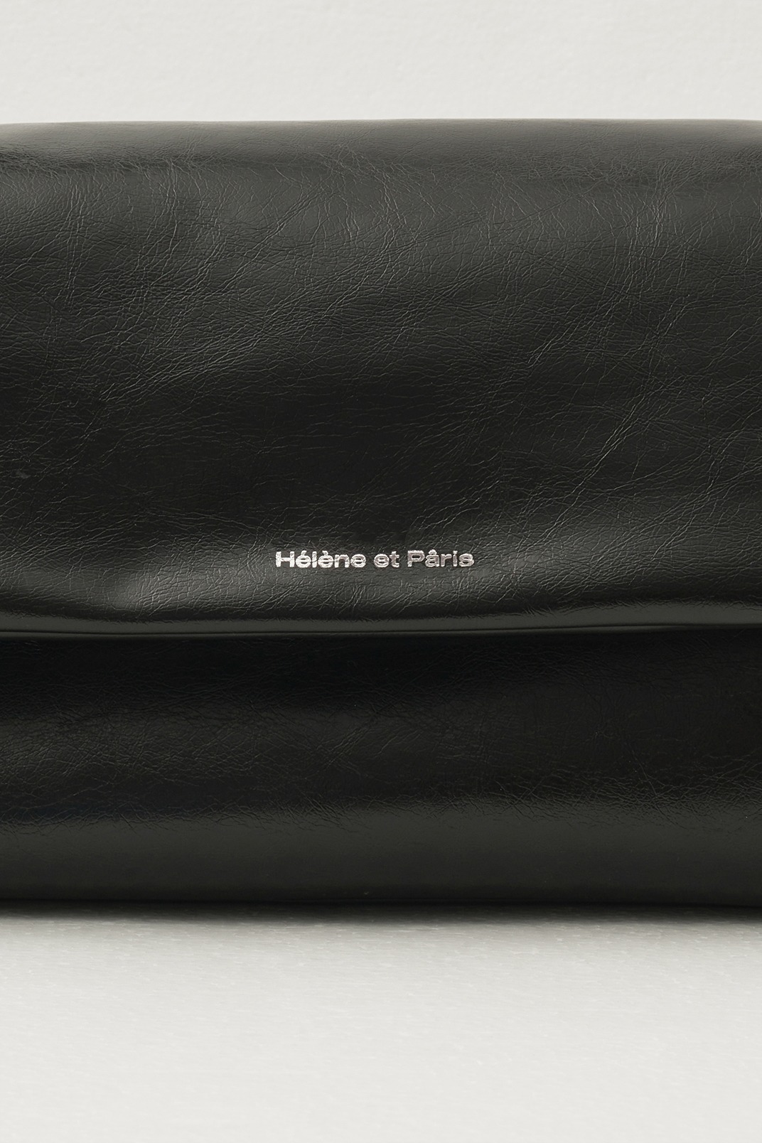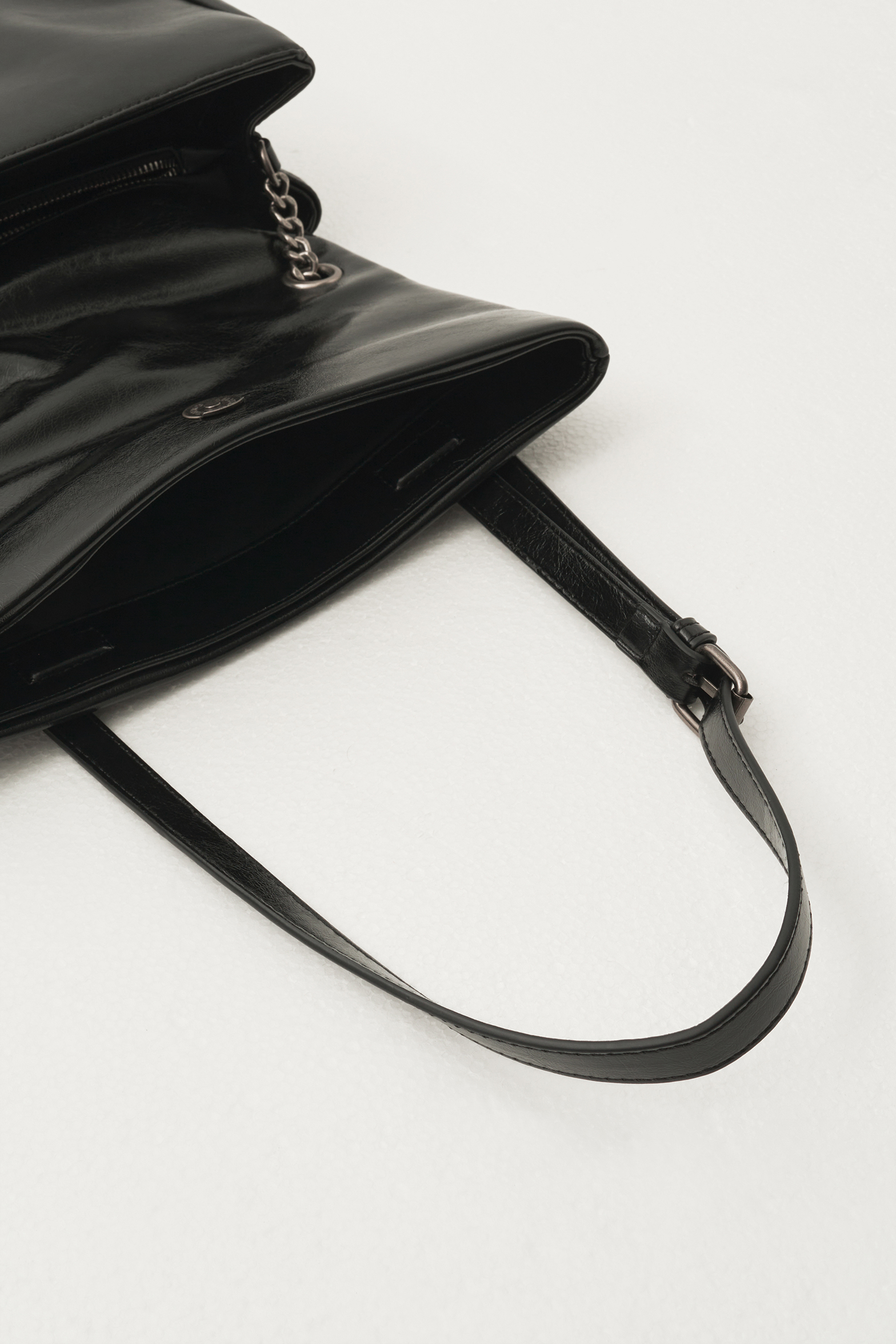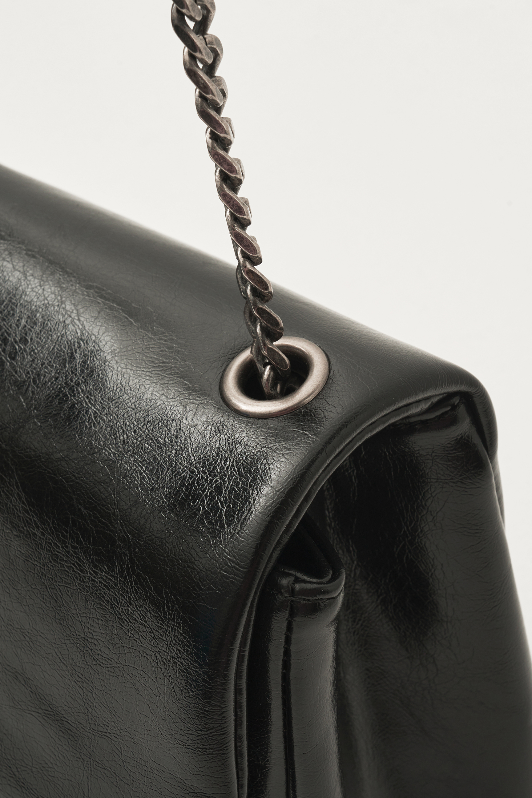 - 제트 블랙에 가까운, 은은한 광택감의 비건 레더