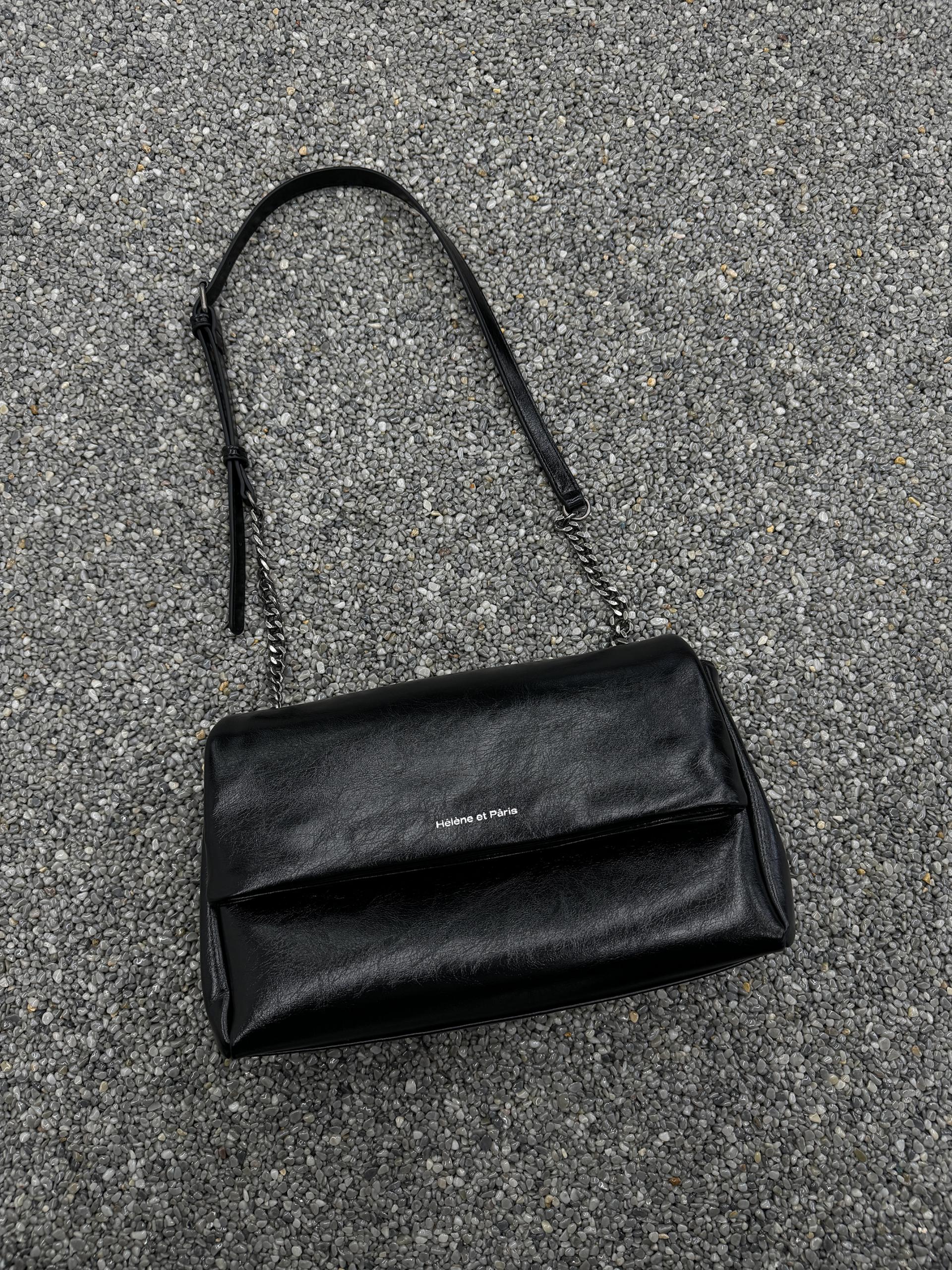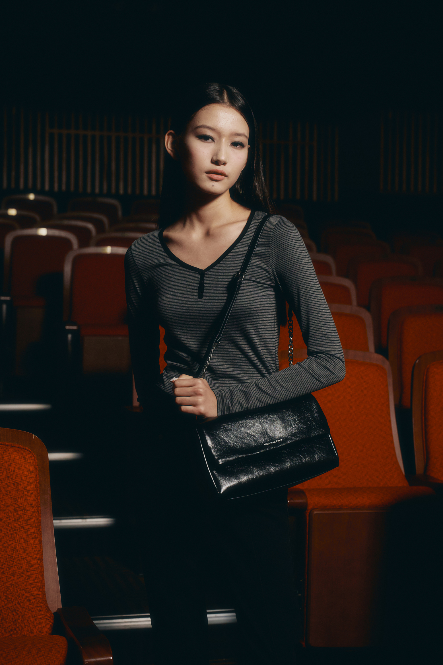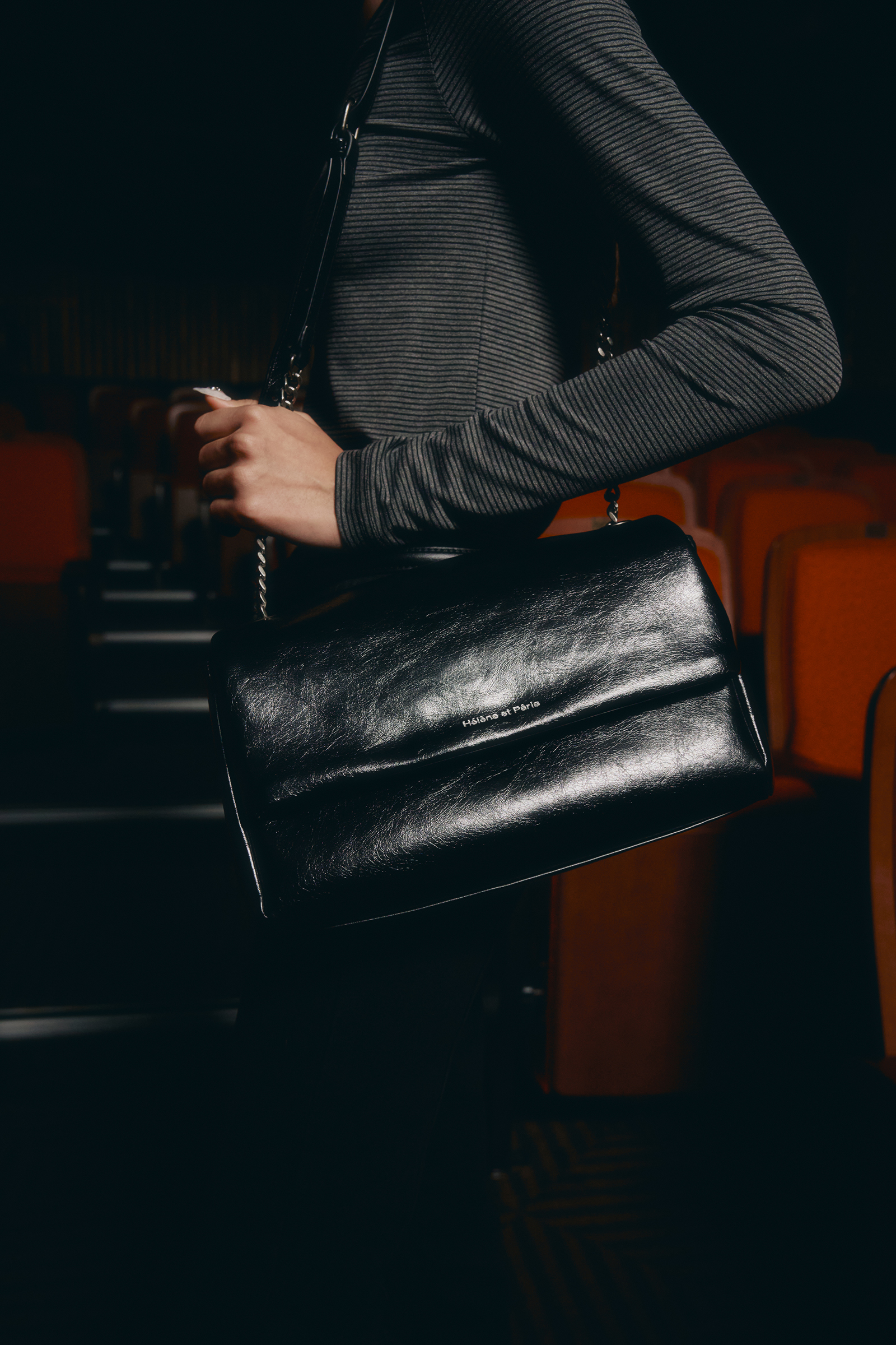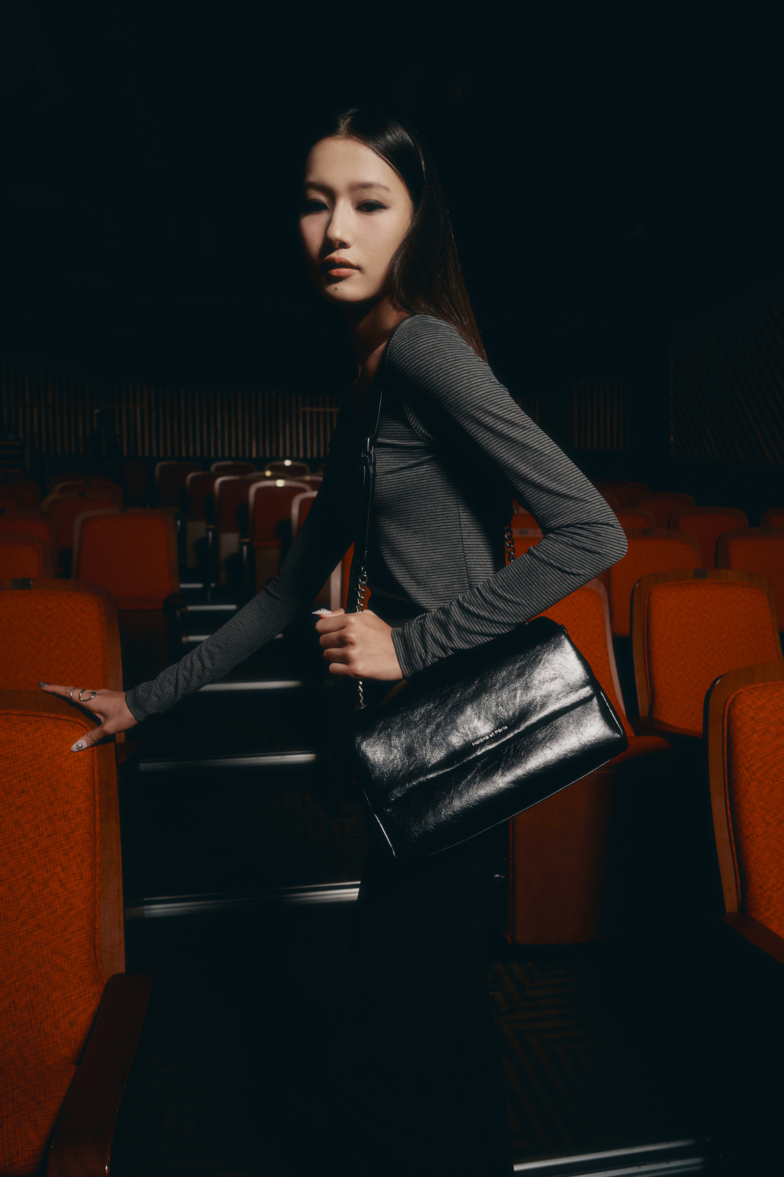 - 제트 블랙에 가까운, 은은한 광택감의 비건 레더
