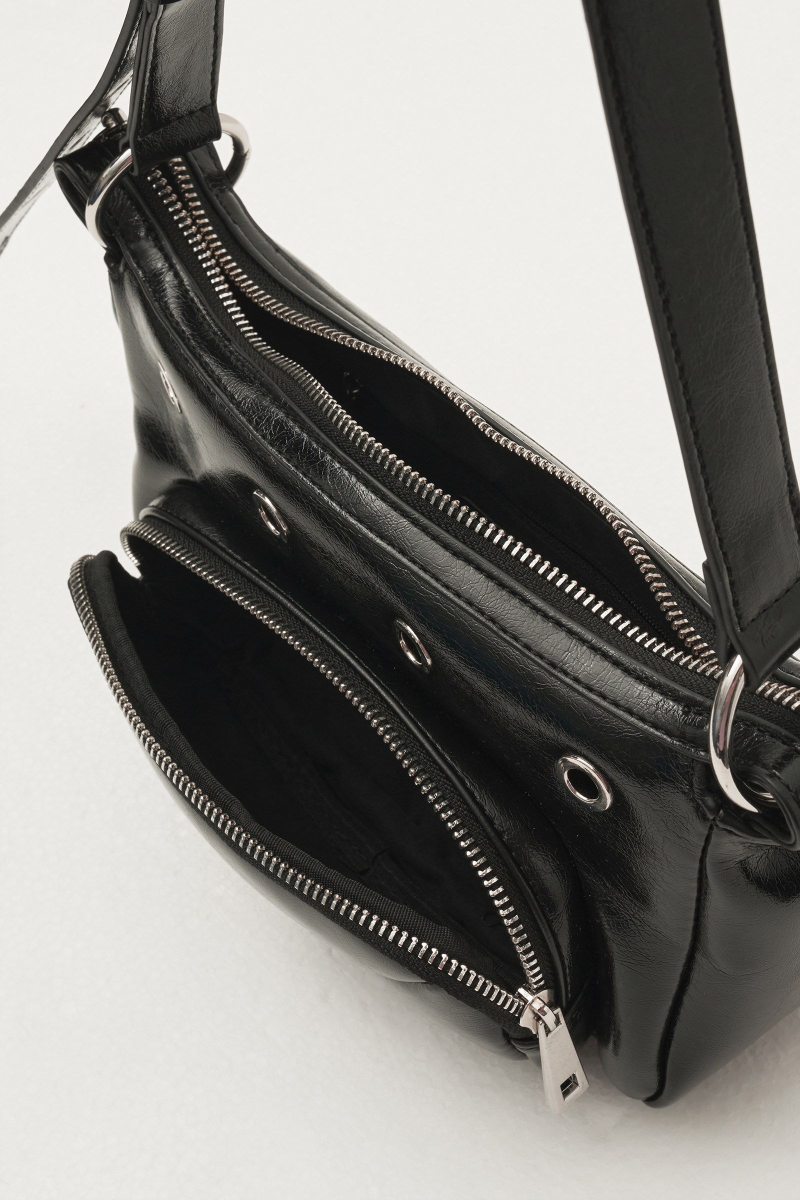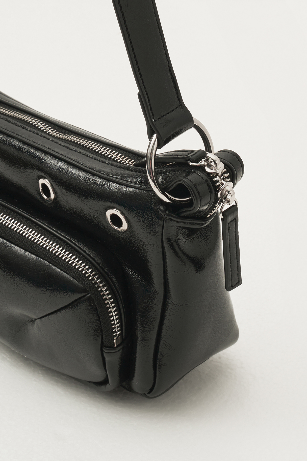- 제트 블랙에 가까운, 은은한 광택감의 비건 레더