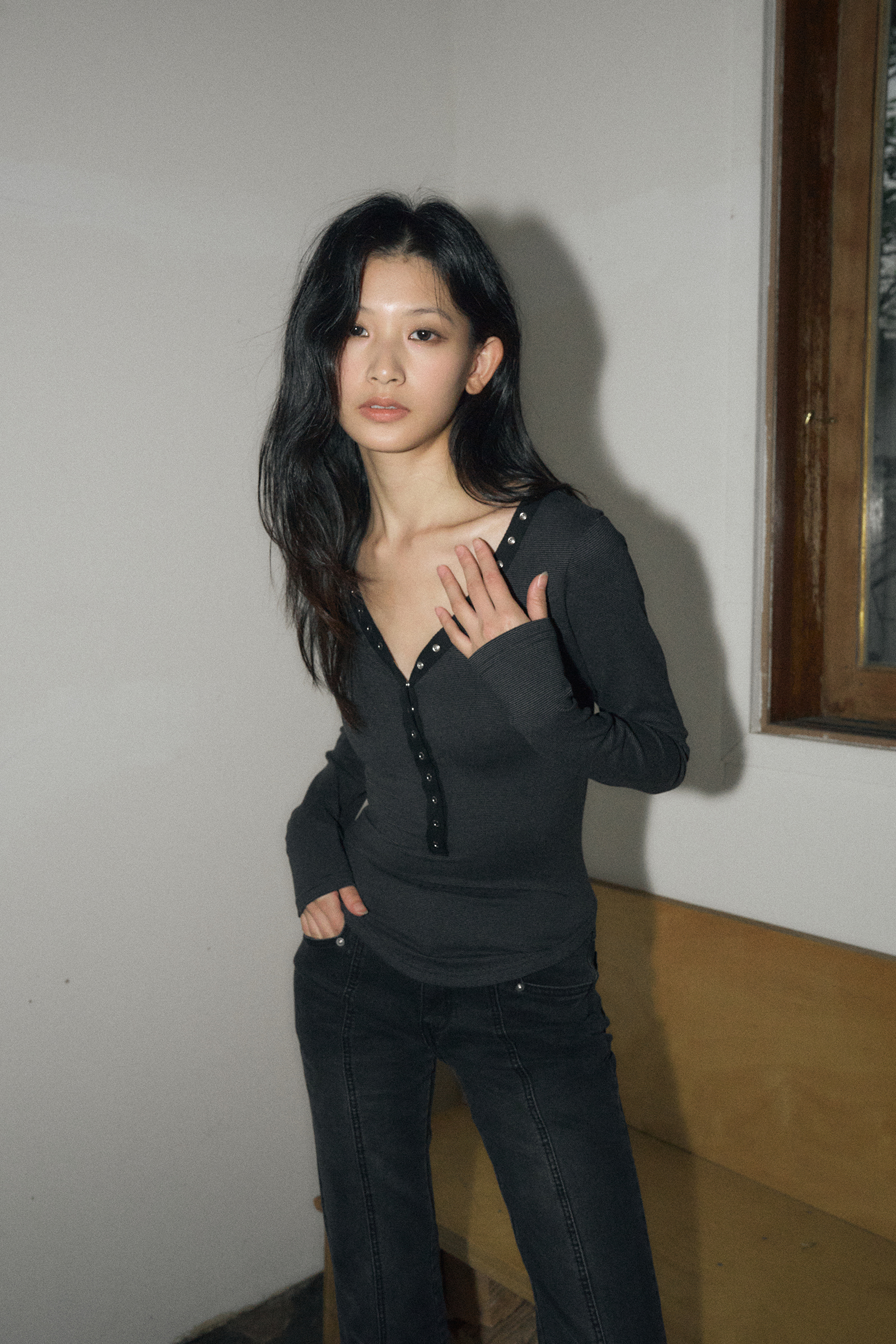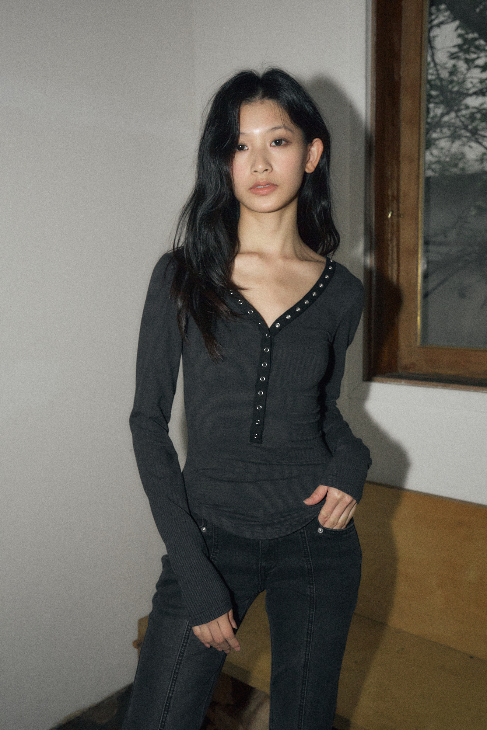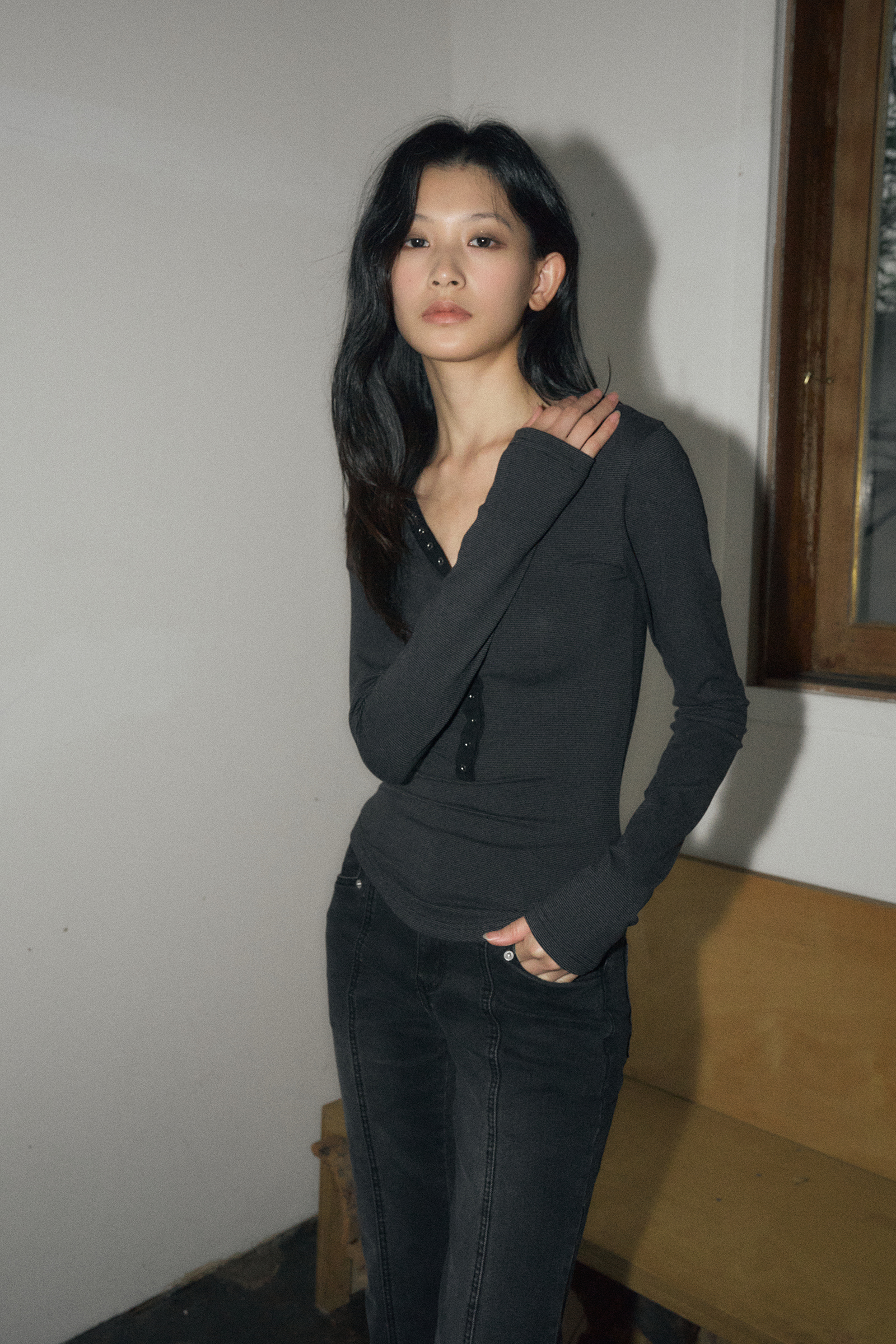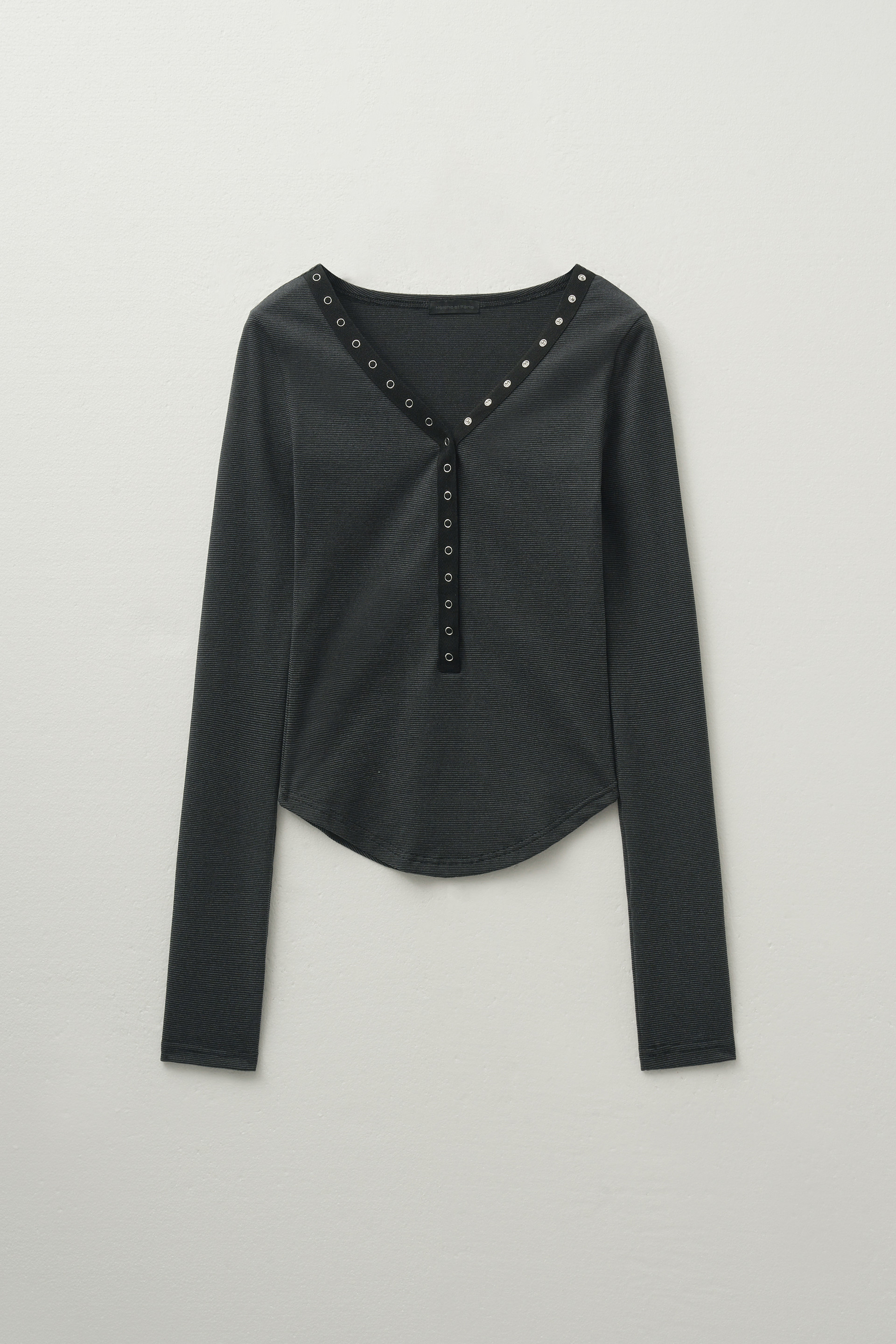 스냅 네크라인 롱 슬리브 [틴 블랙]