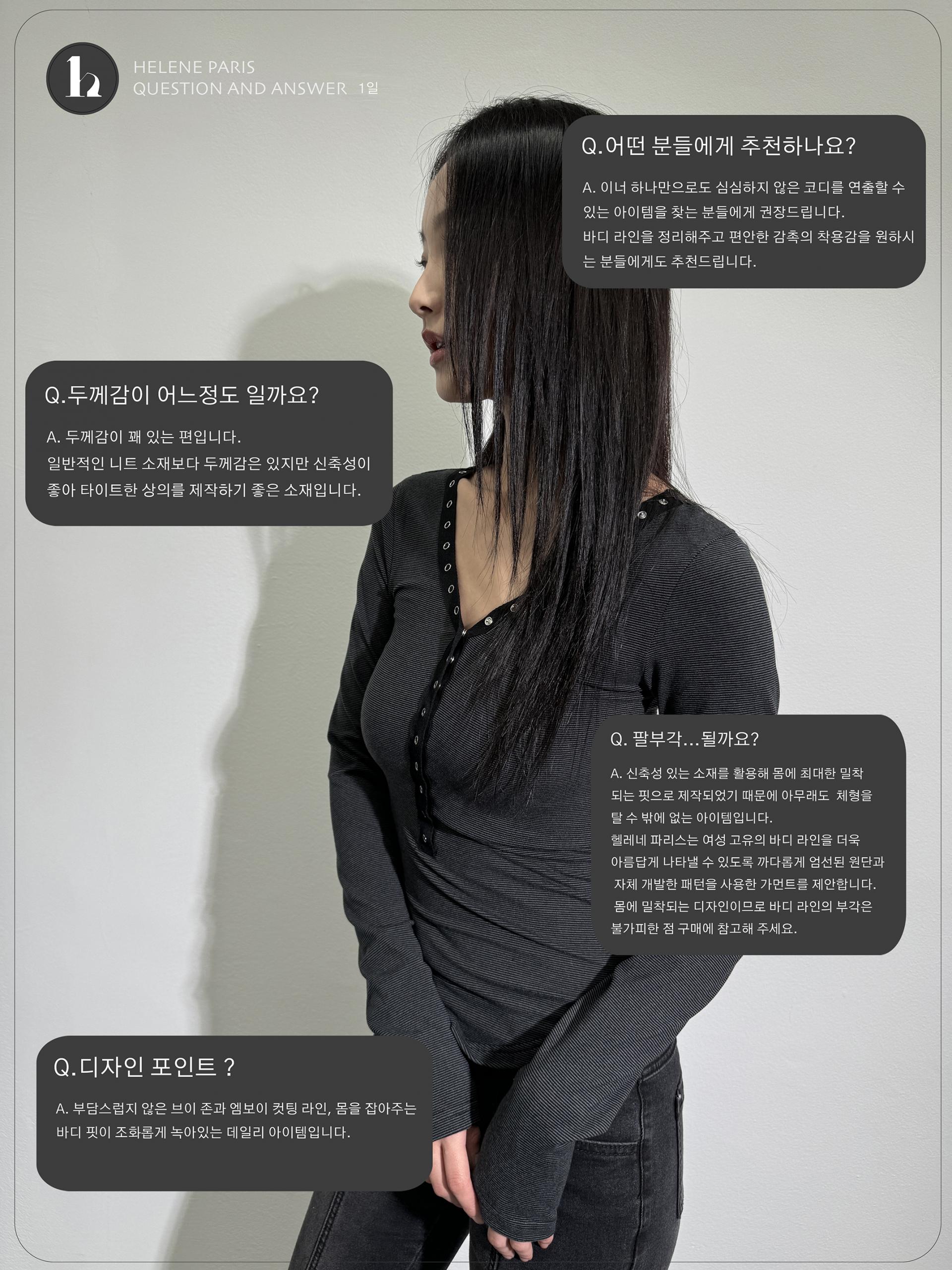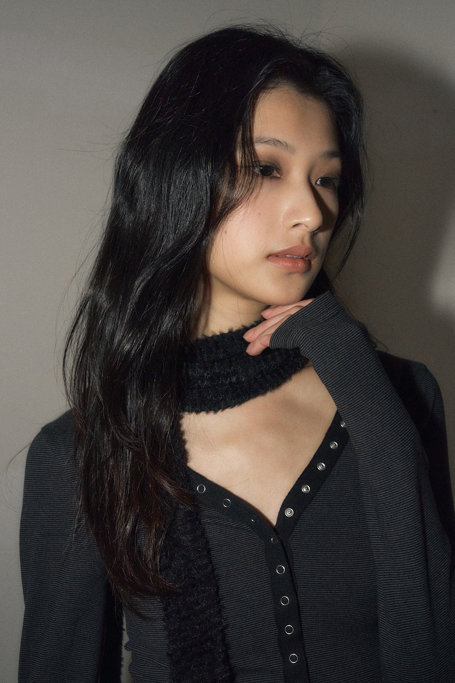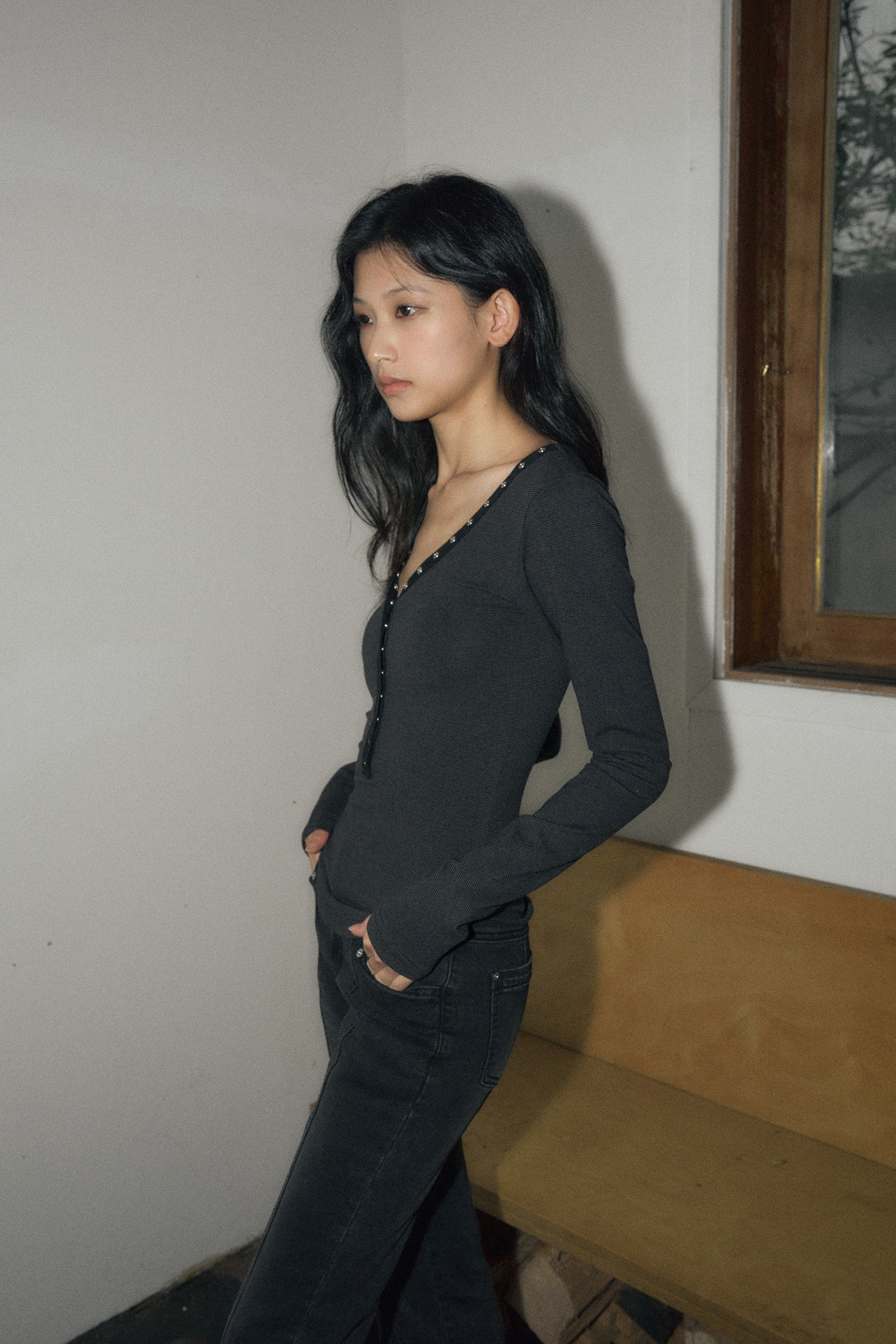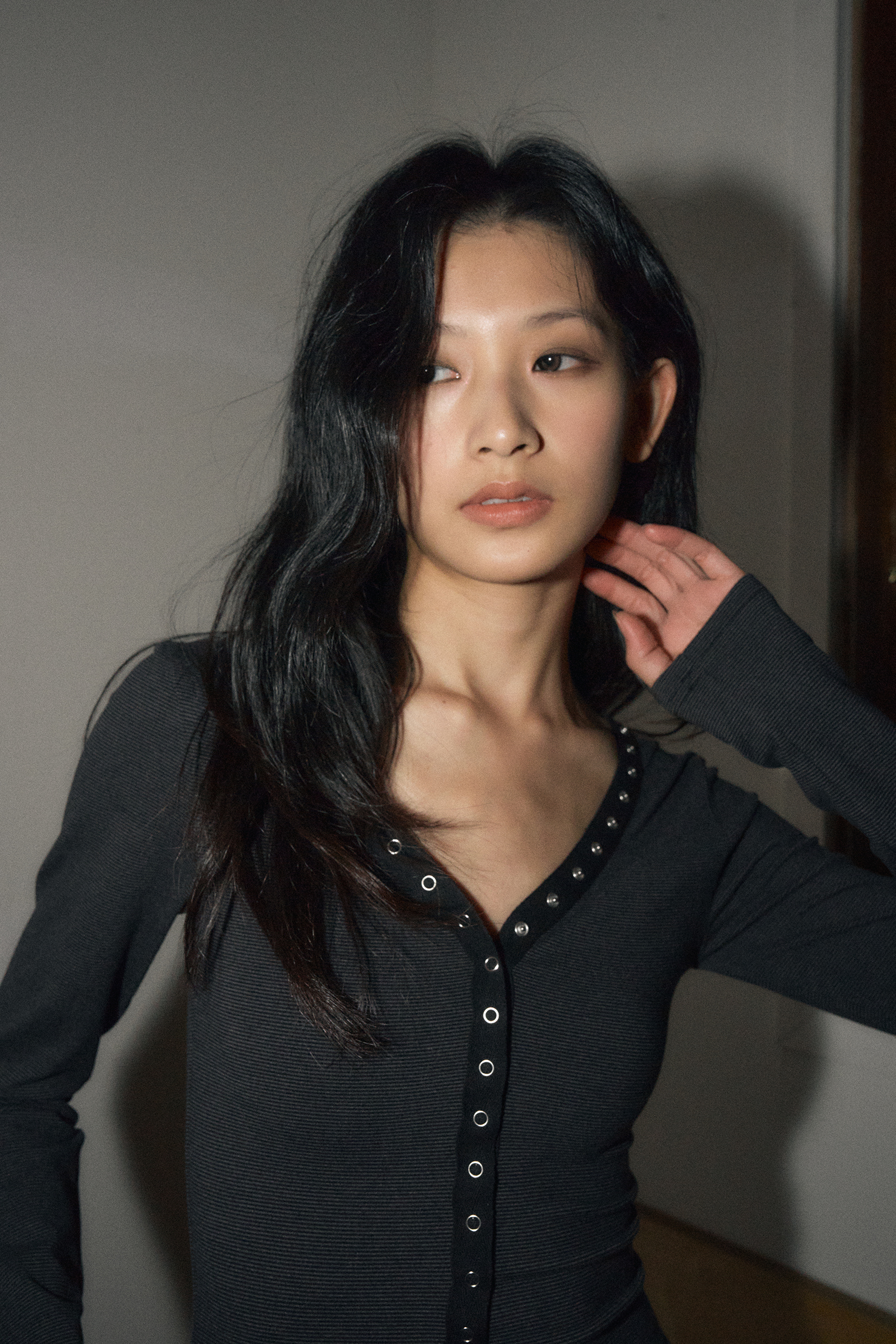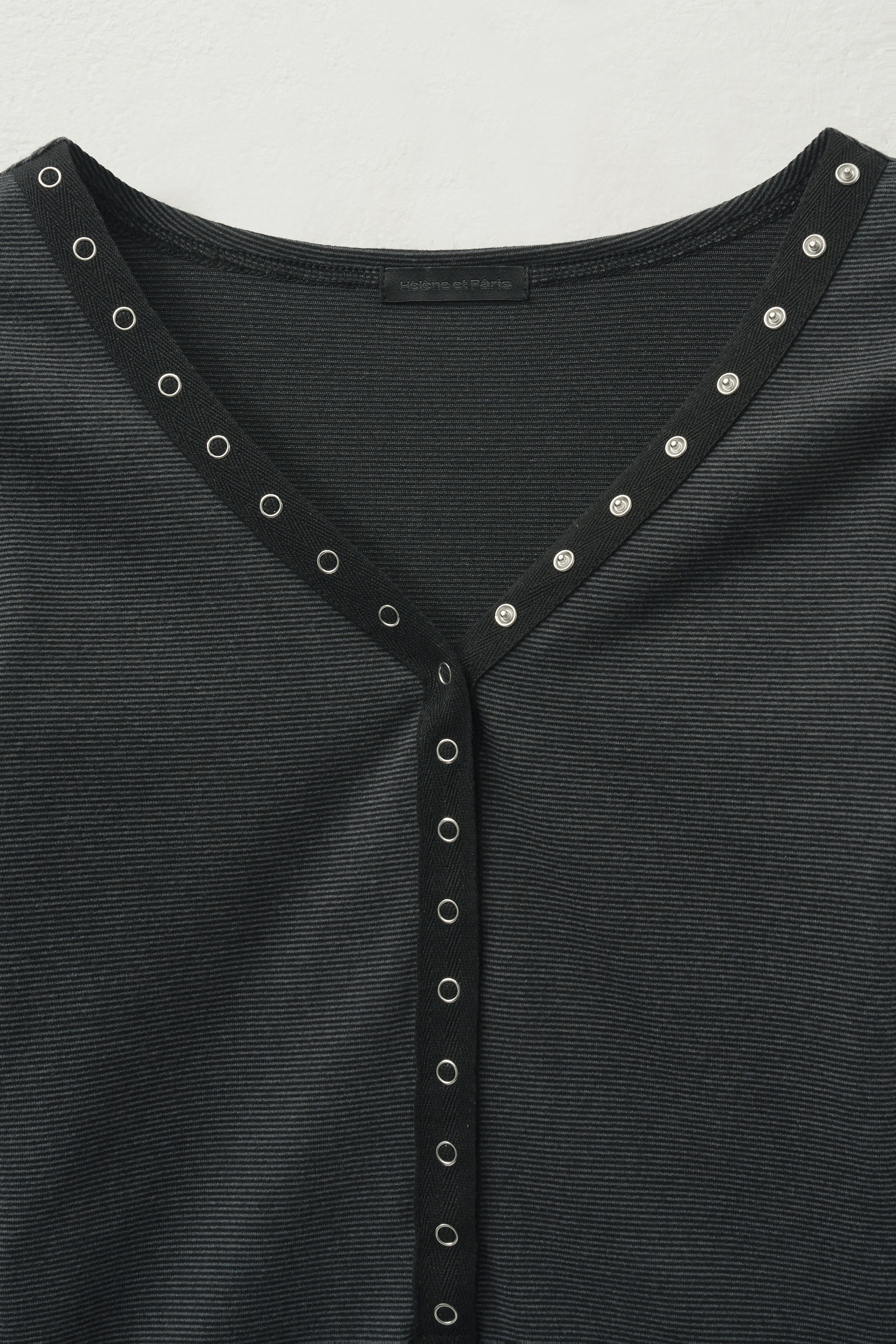 스냅 네크라인 롱 슬리브 [틴 블랙]