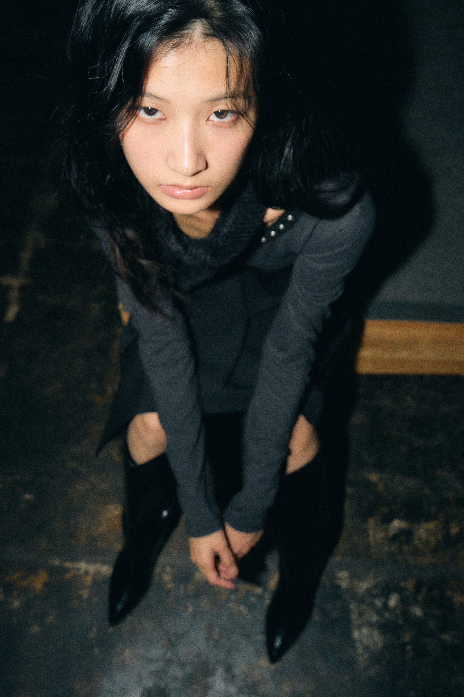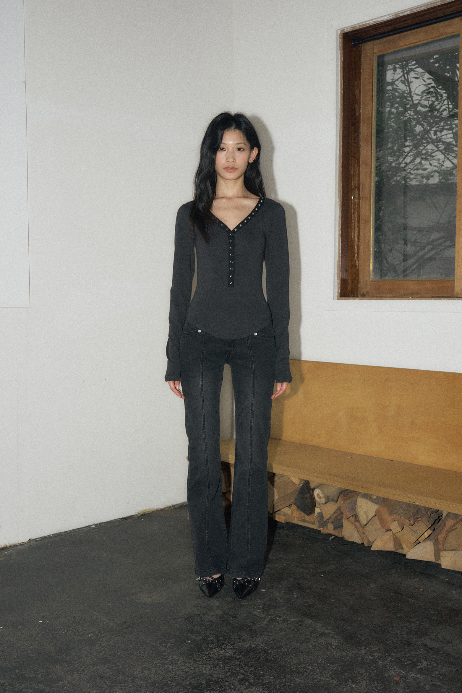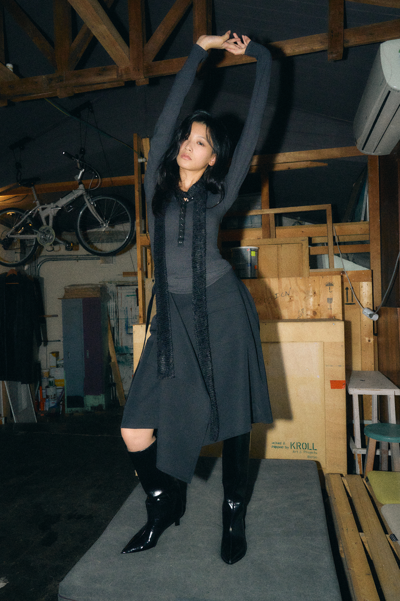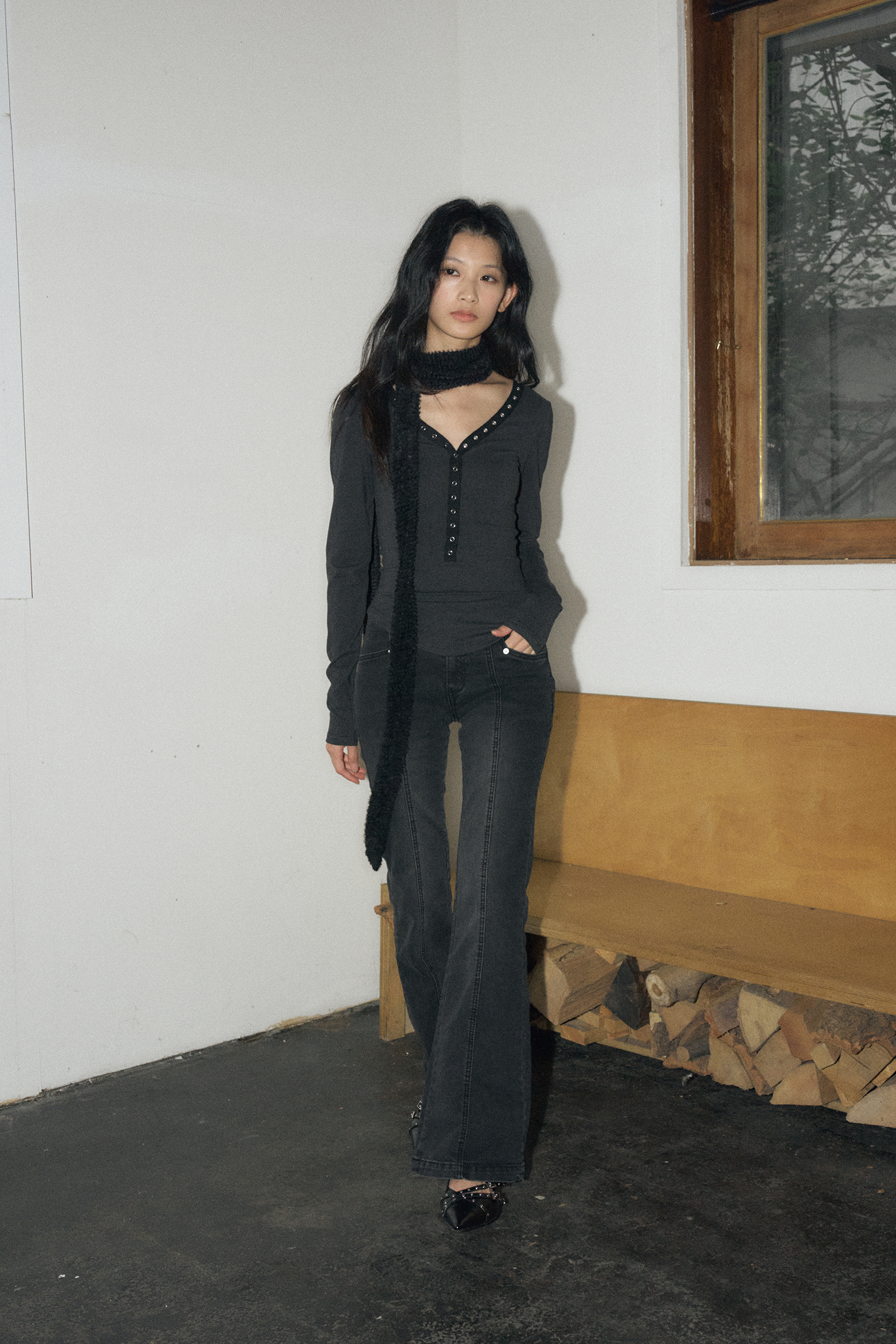 스냅 네크라인 롱 슬리브 [틴 블랙]