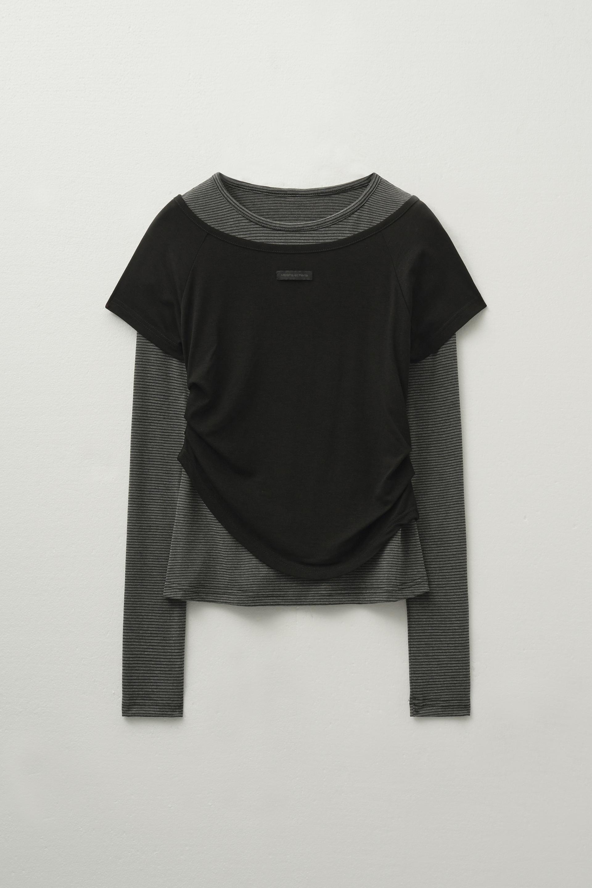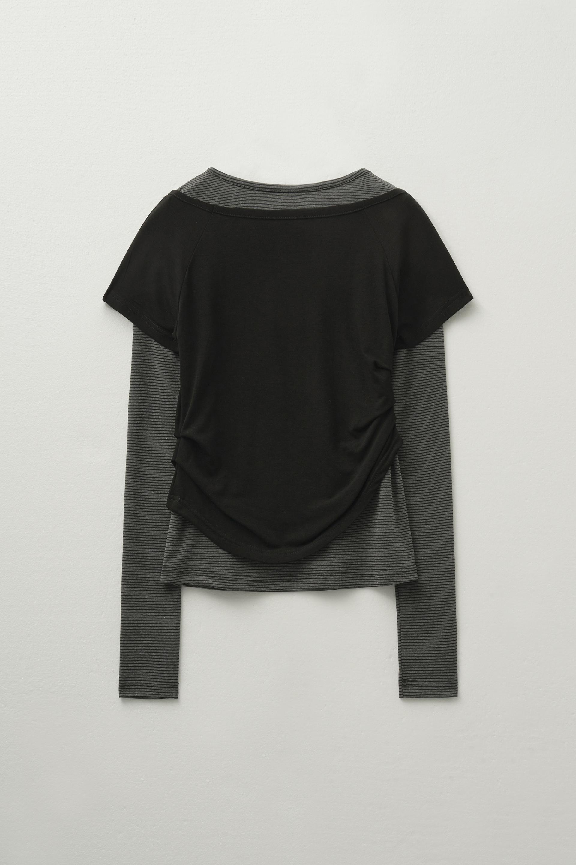 - 스트라이프 패턴 롱 슬리브와 보트넥 하프 슬리브 구성