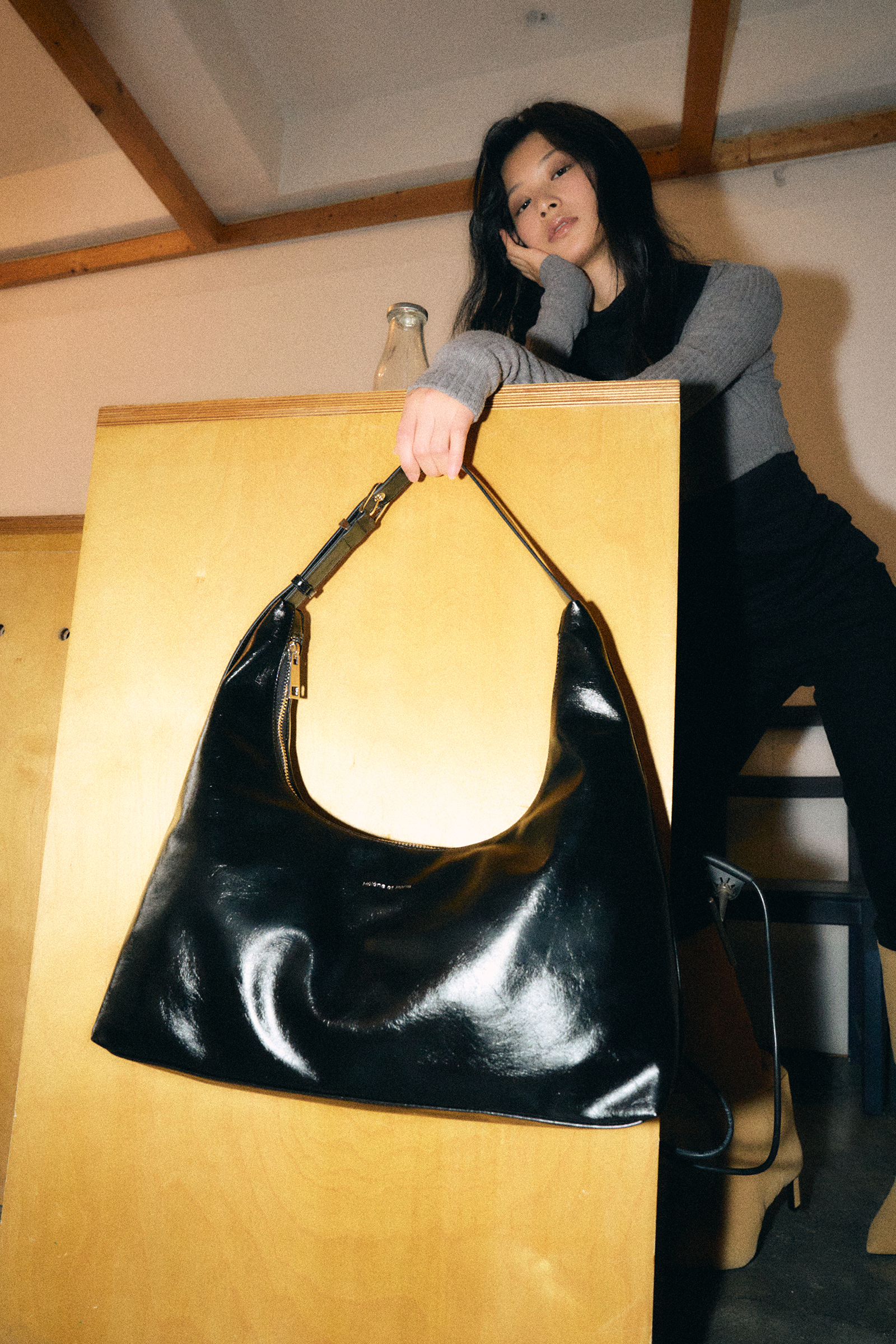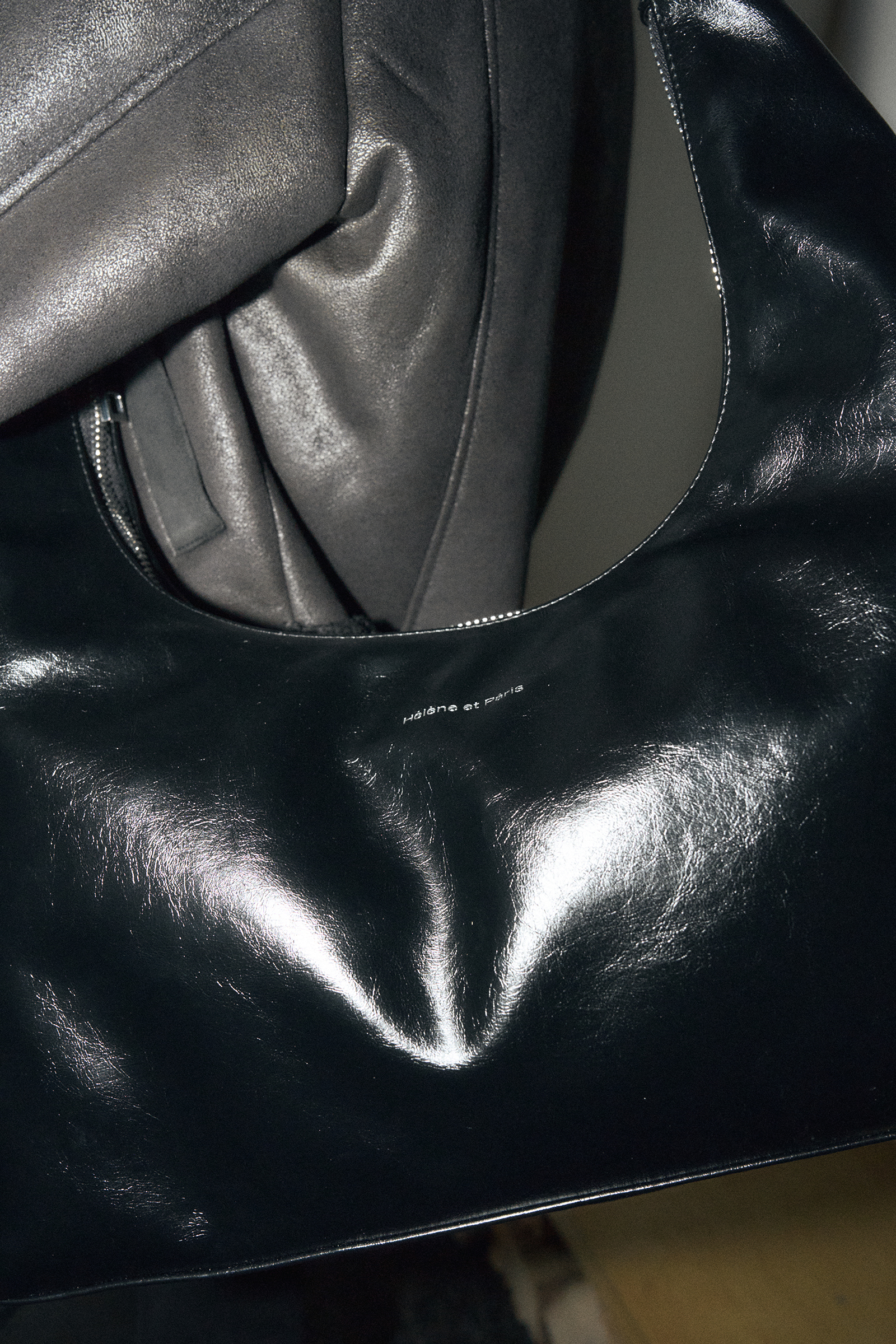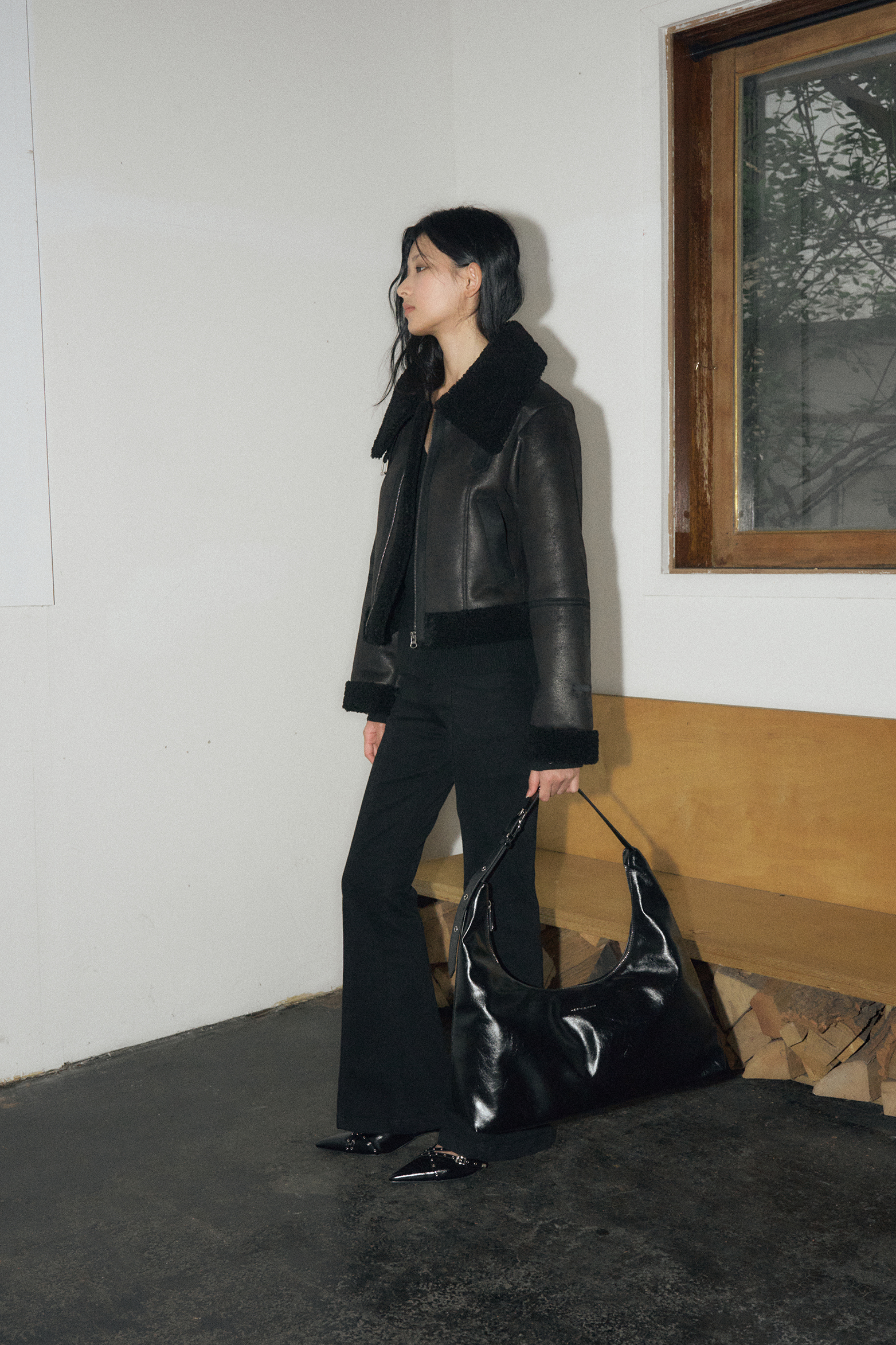 - 제트 블랙에 가까운, 은은한 광택감의 비건 레더