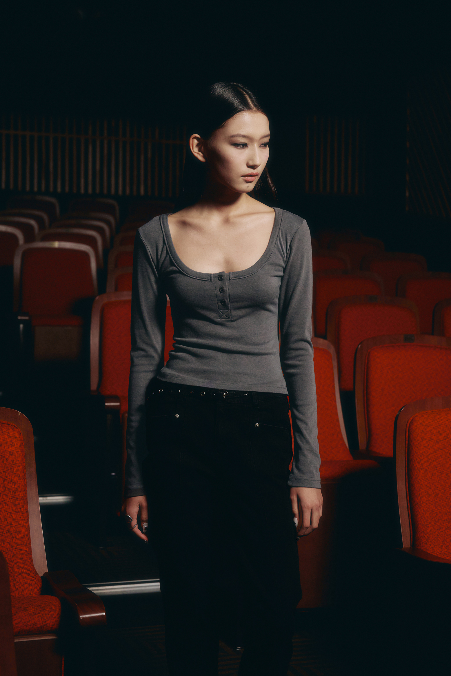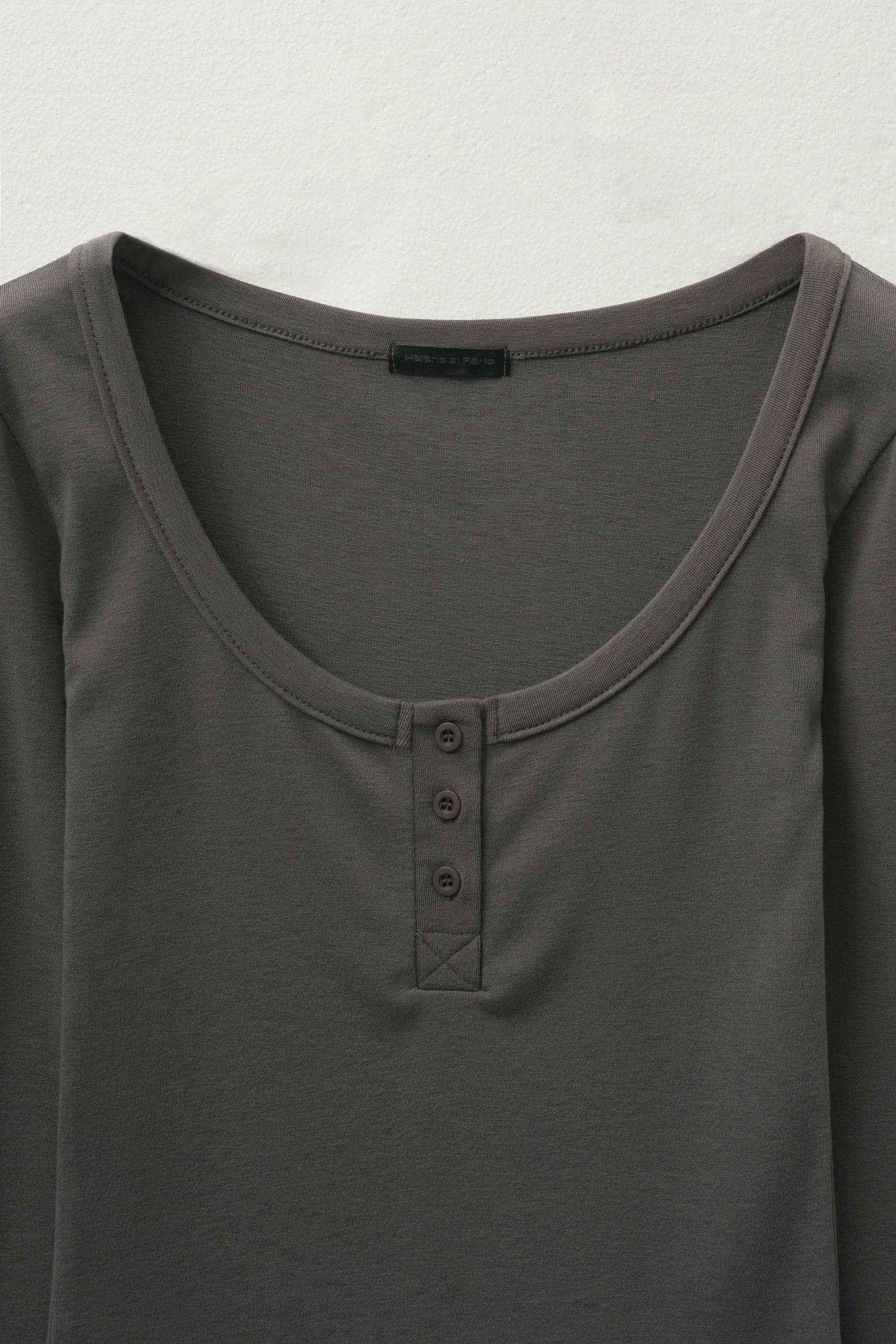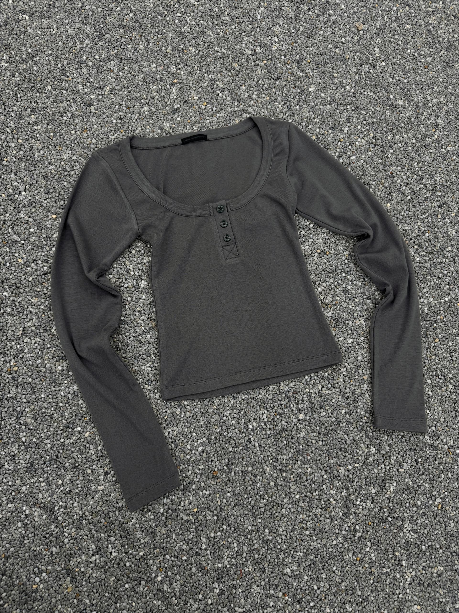 버튼 스쿱넥 롱 슬리브 [딥그레이]