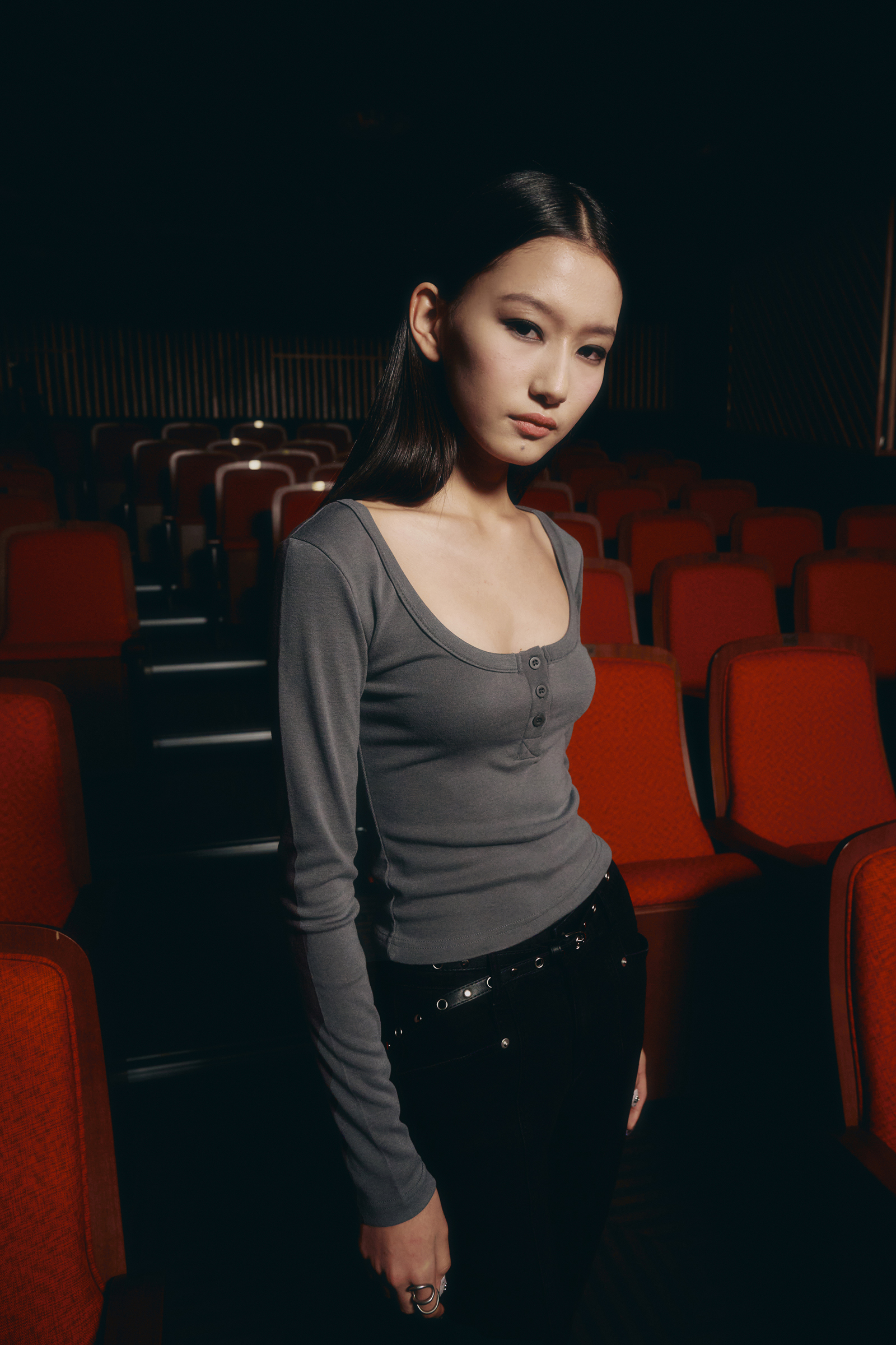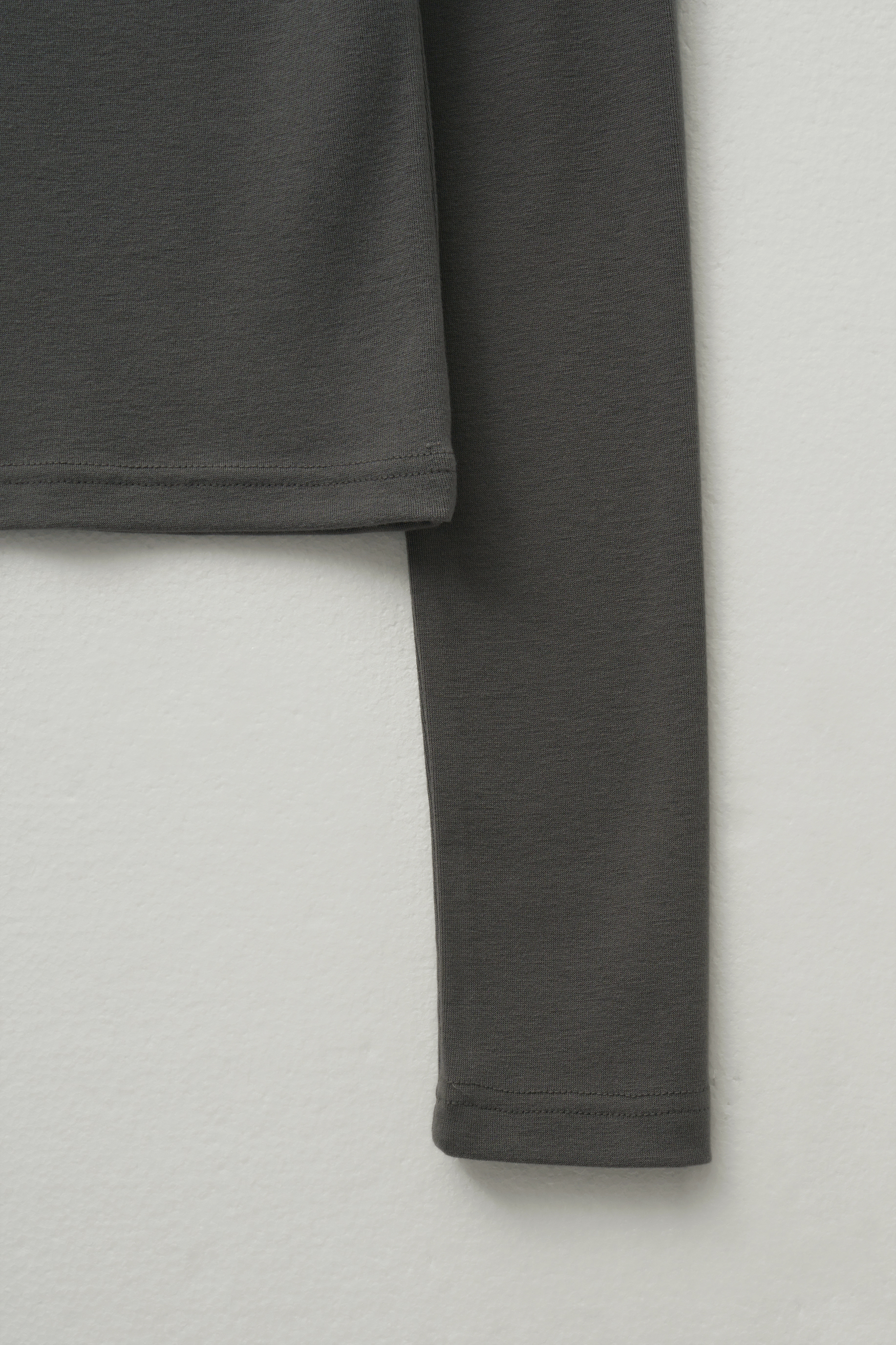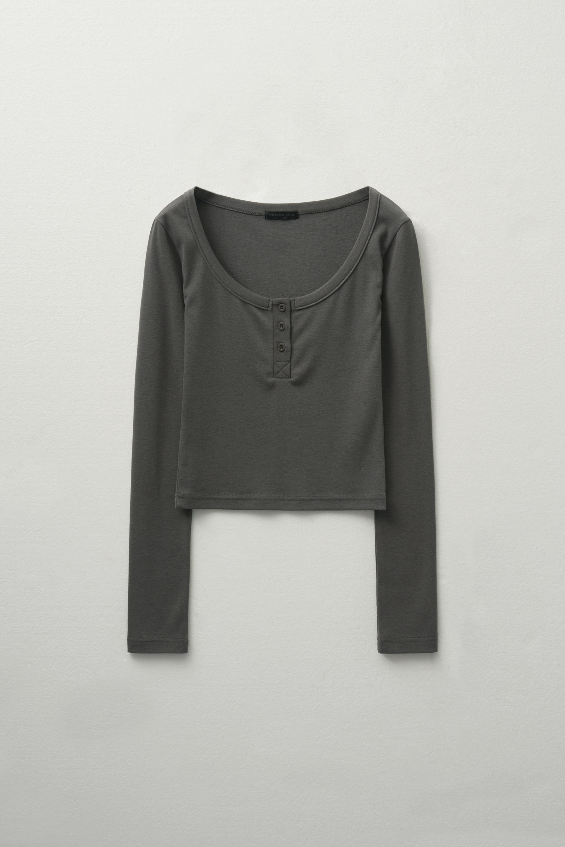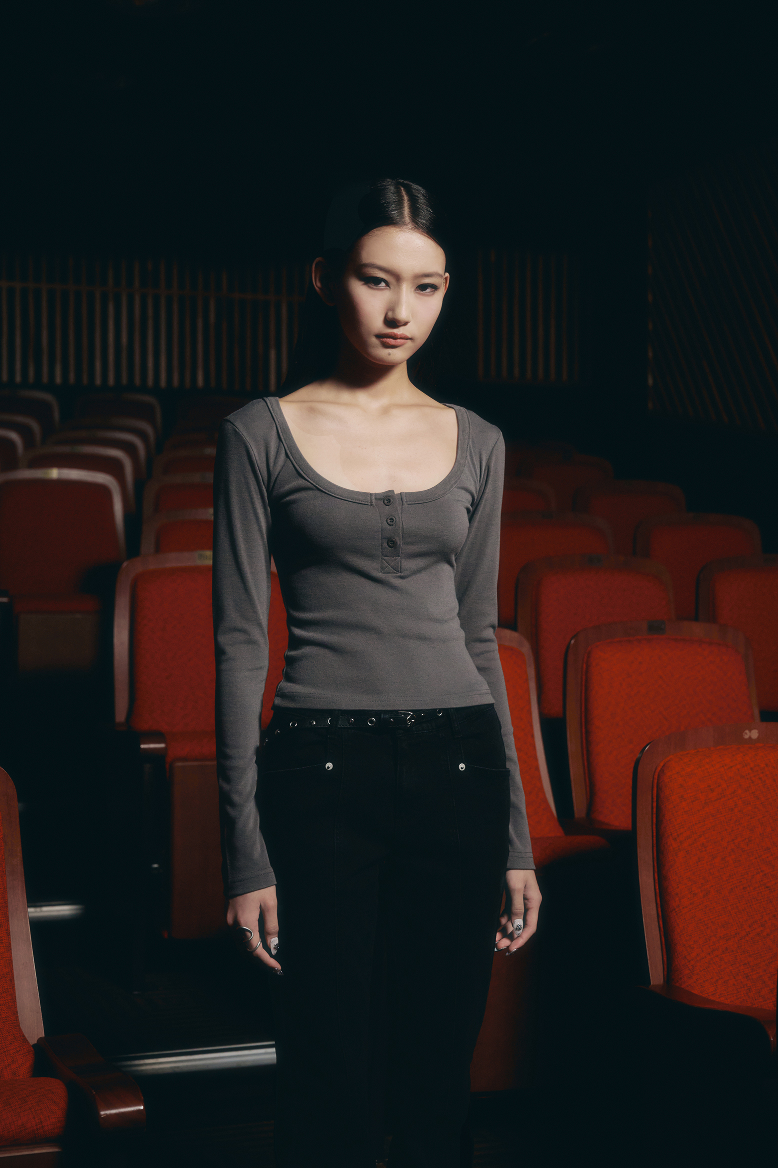 버튼 스쿱넥 롱 슬리브 [딥그레이]