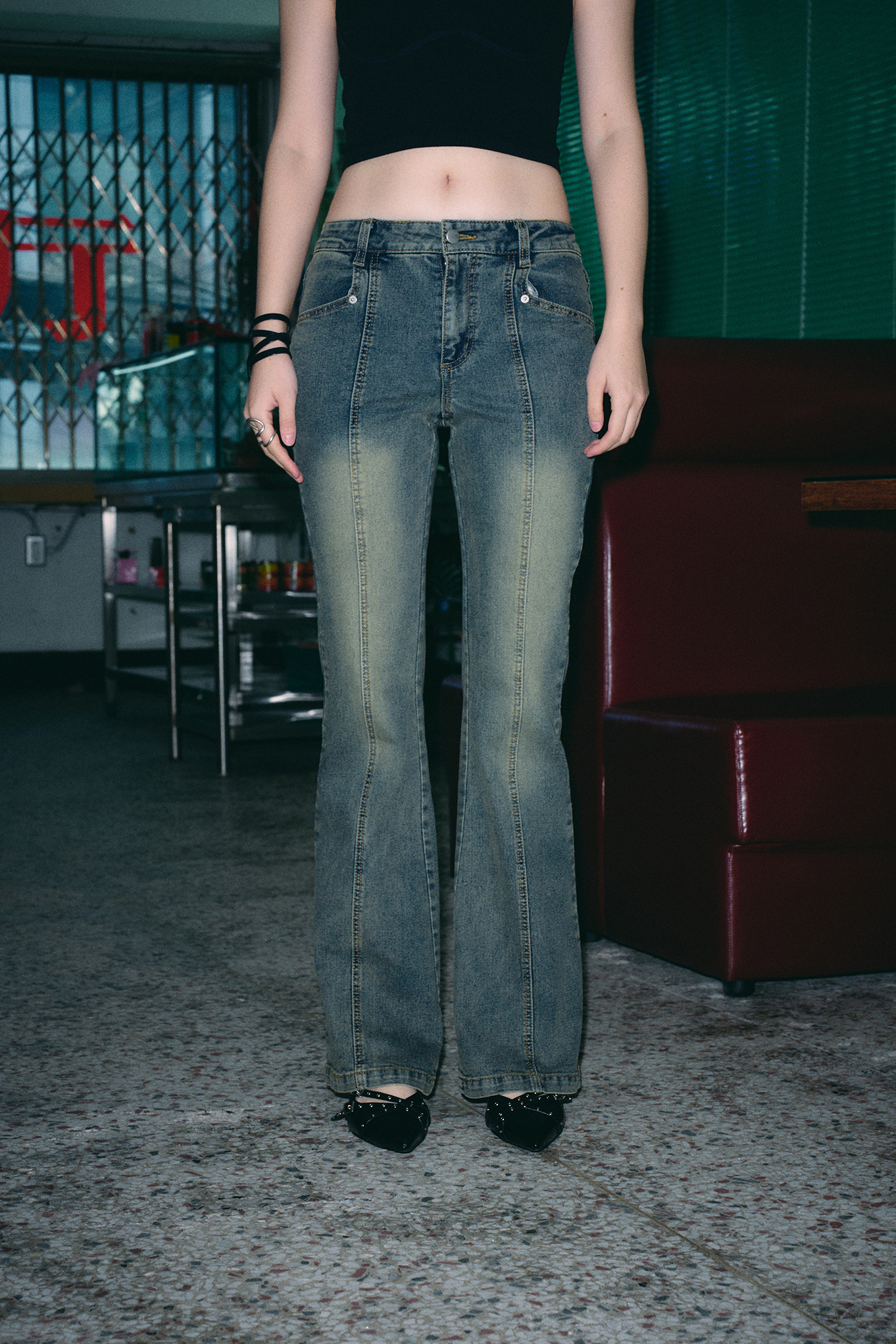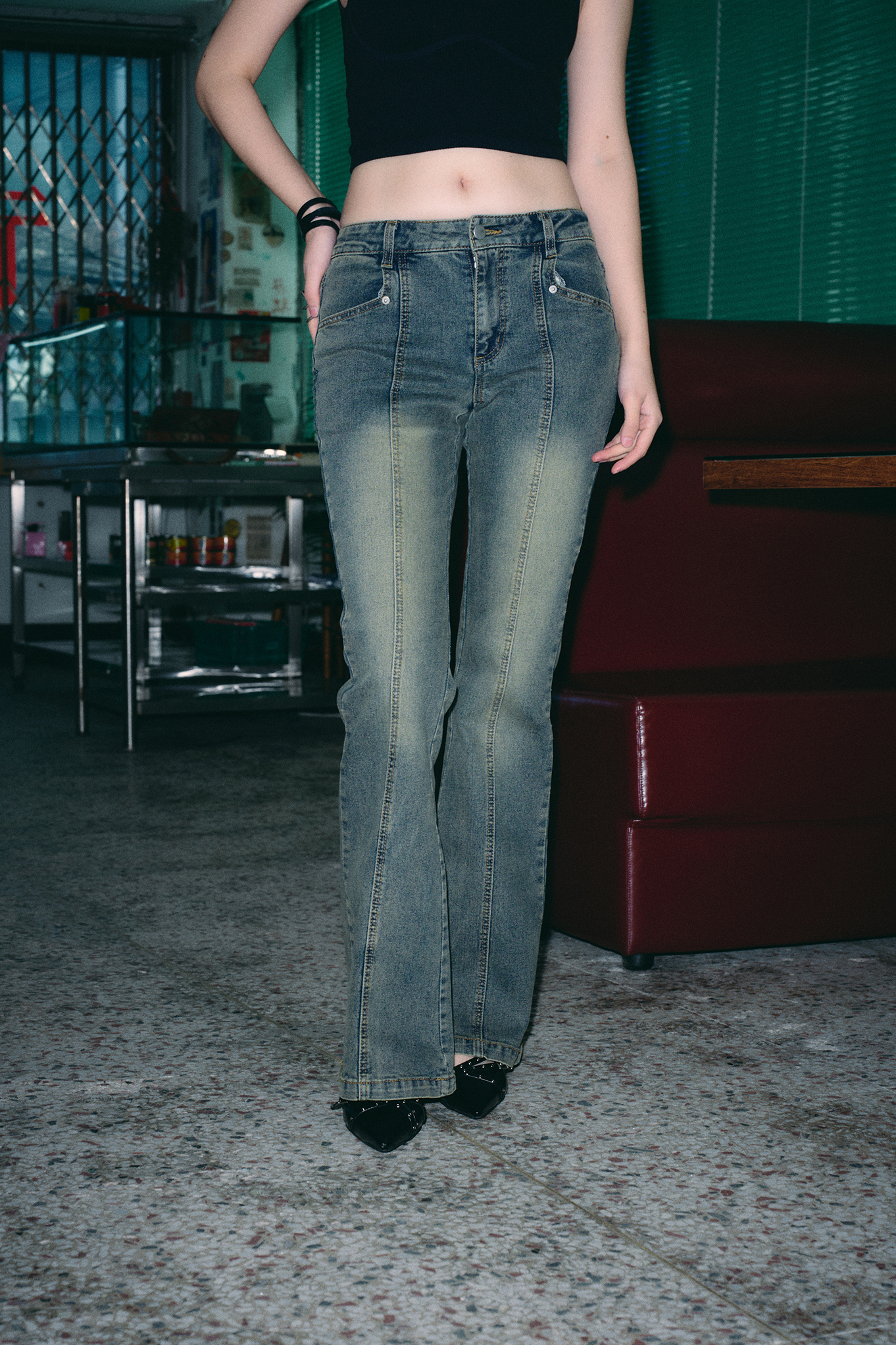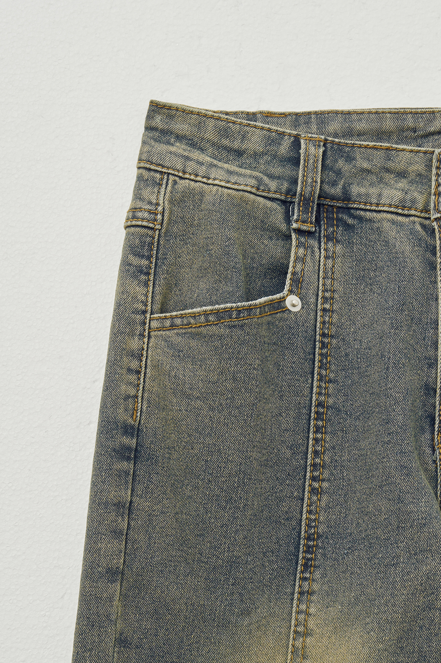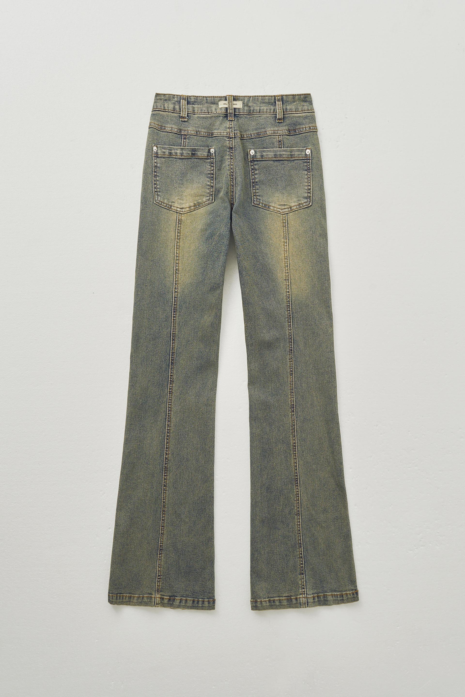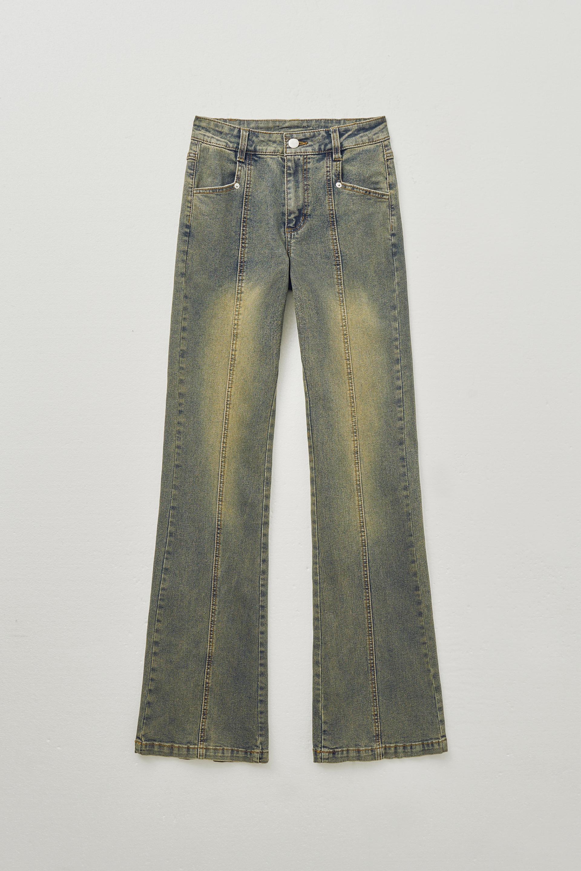 워시드 부츠컷 데님 팬츠 [틴 옐로우]