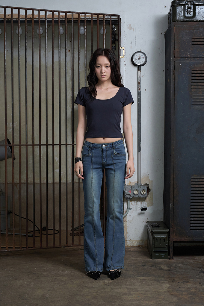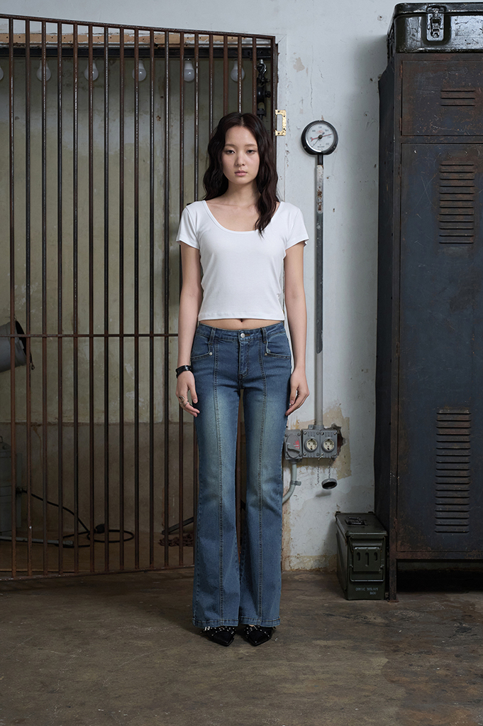 워시드 부츠컷 데님 팬츠 [딥 블루]