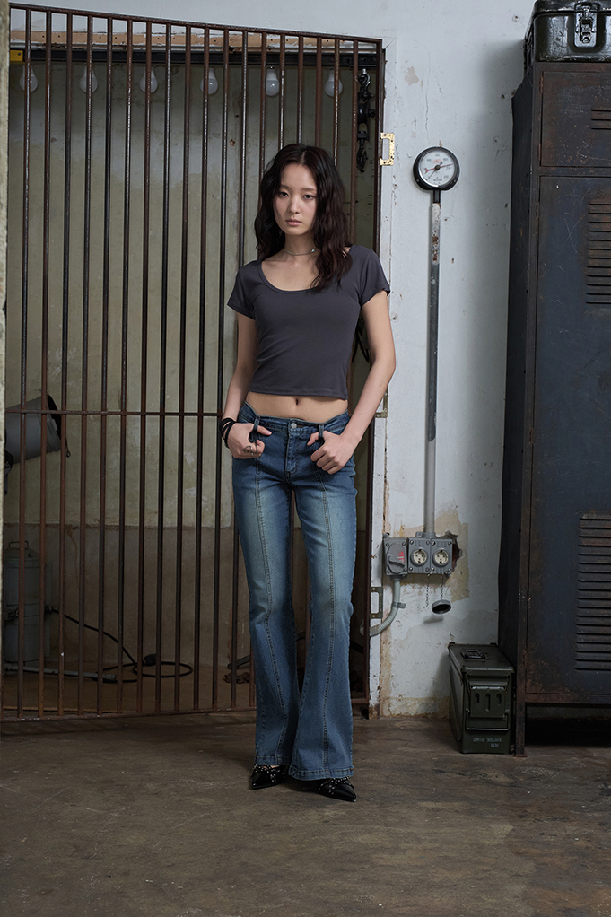 - 저스트-로우 라이즈, 타이트 핏 가먼트입니다.