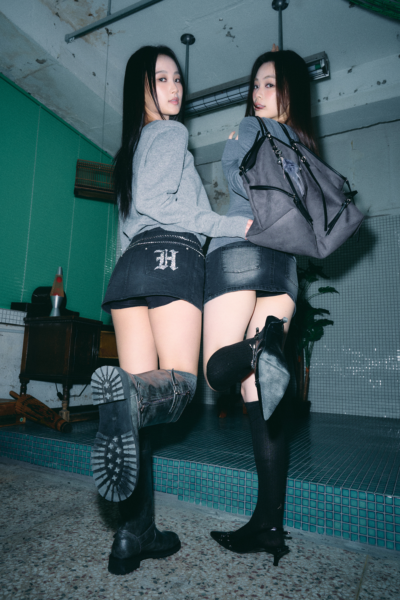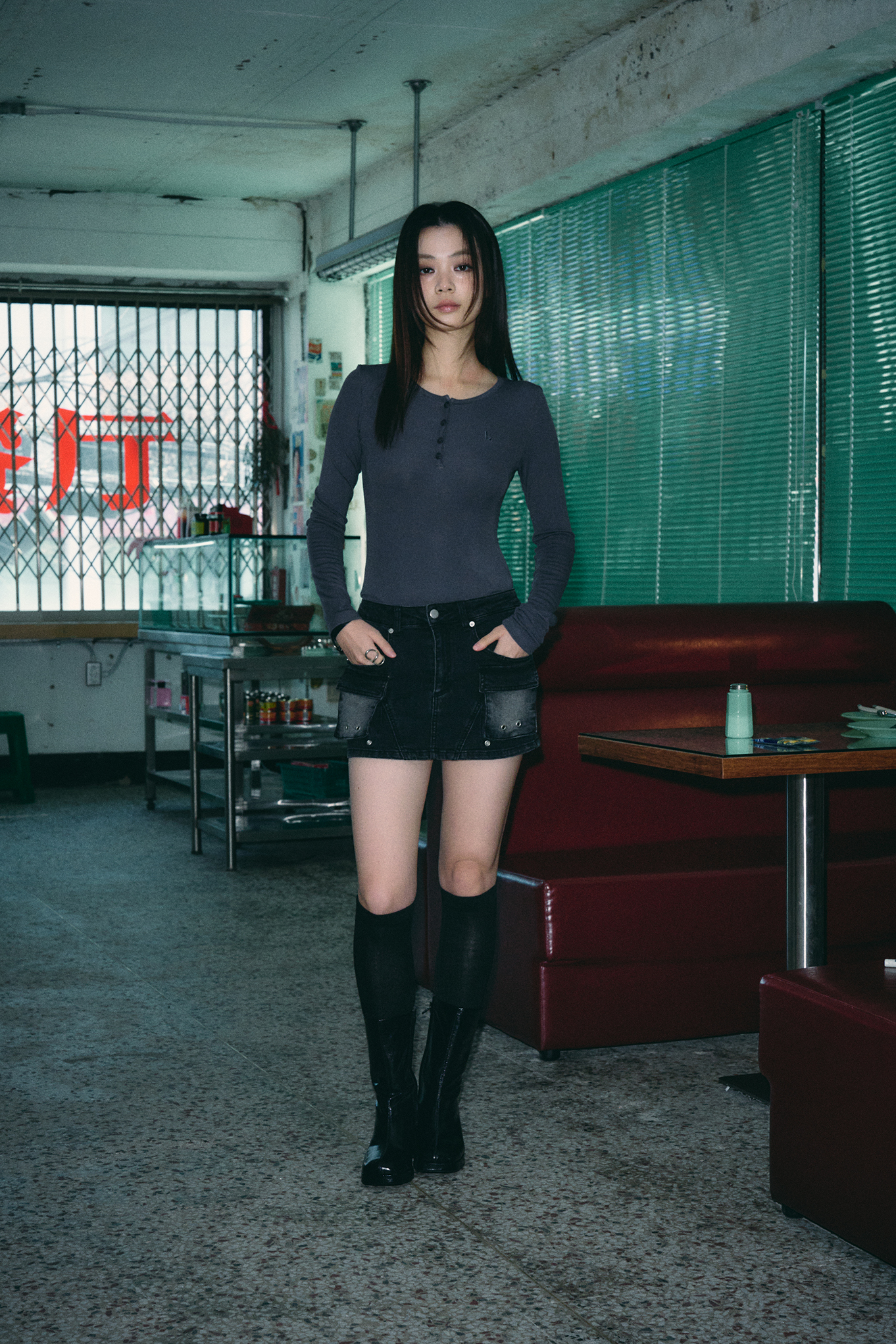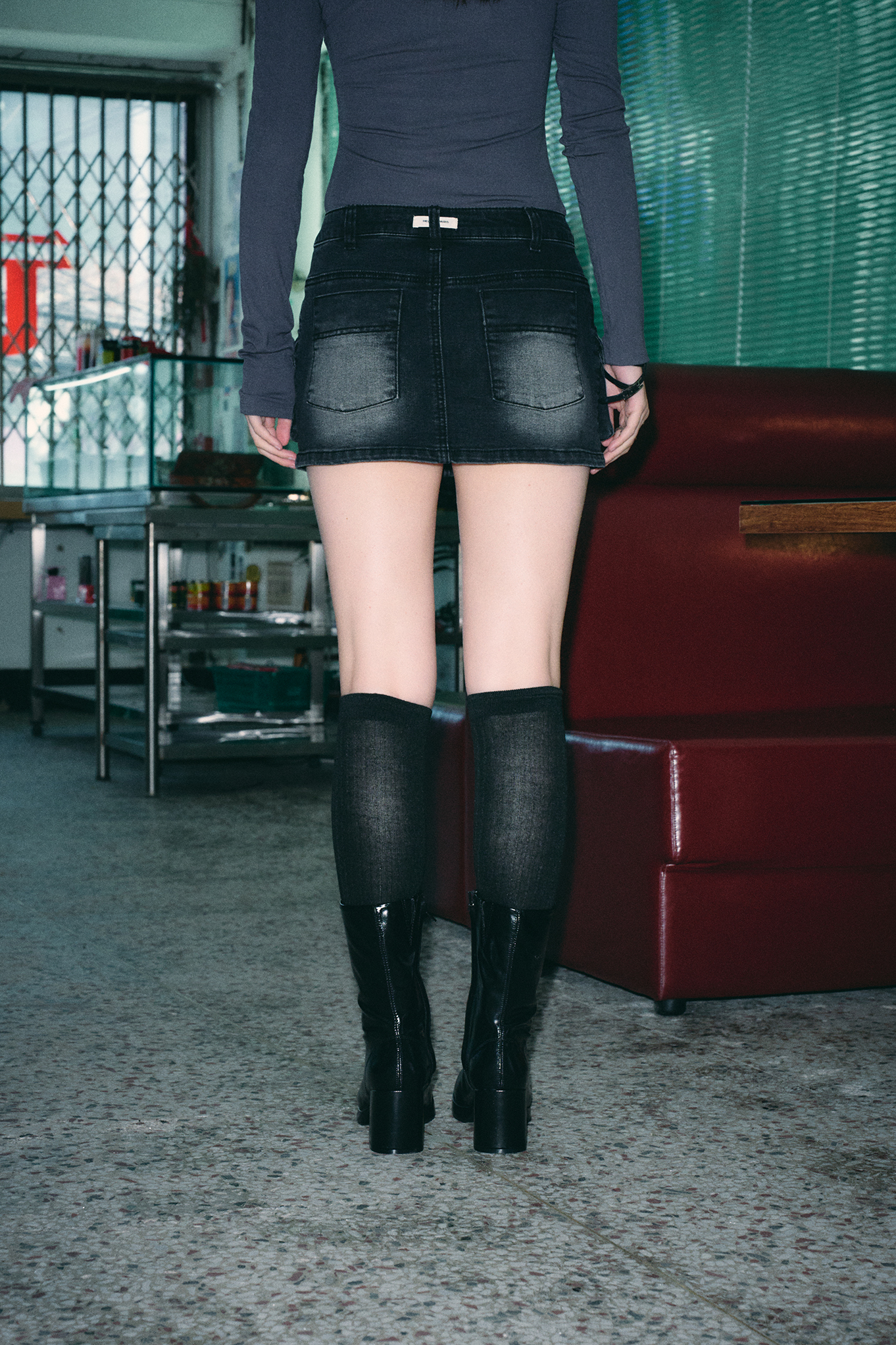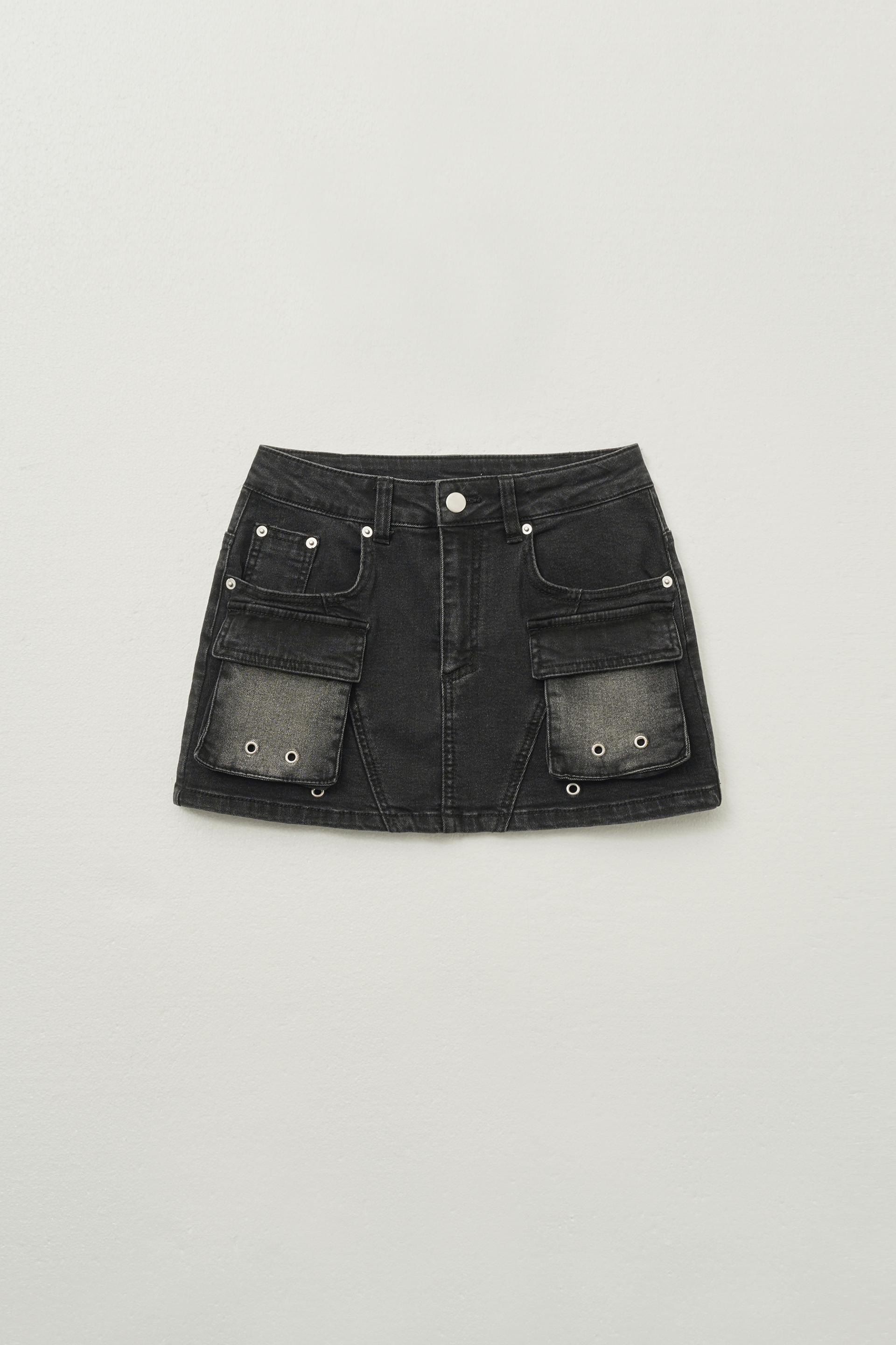 보헤미안 워시드 데님 스커트 [딥 그레이]