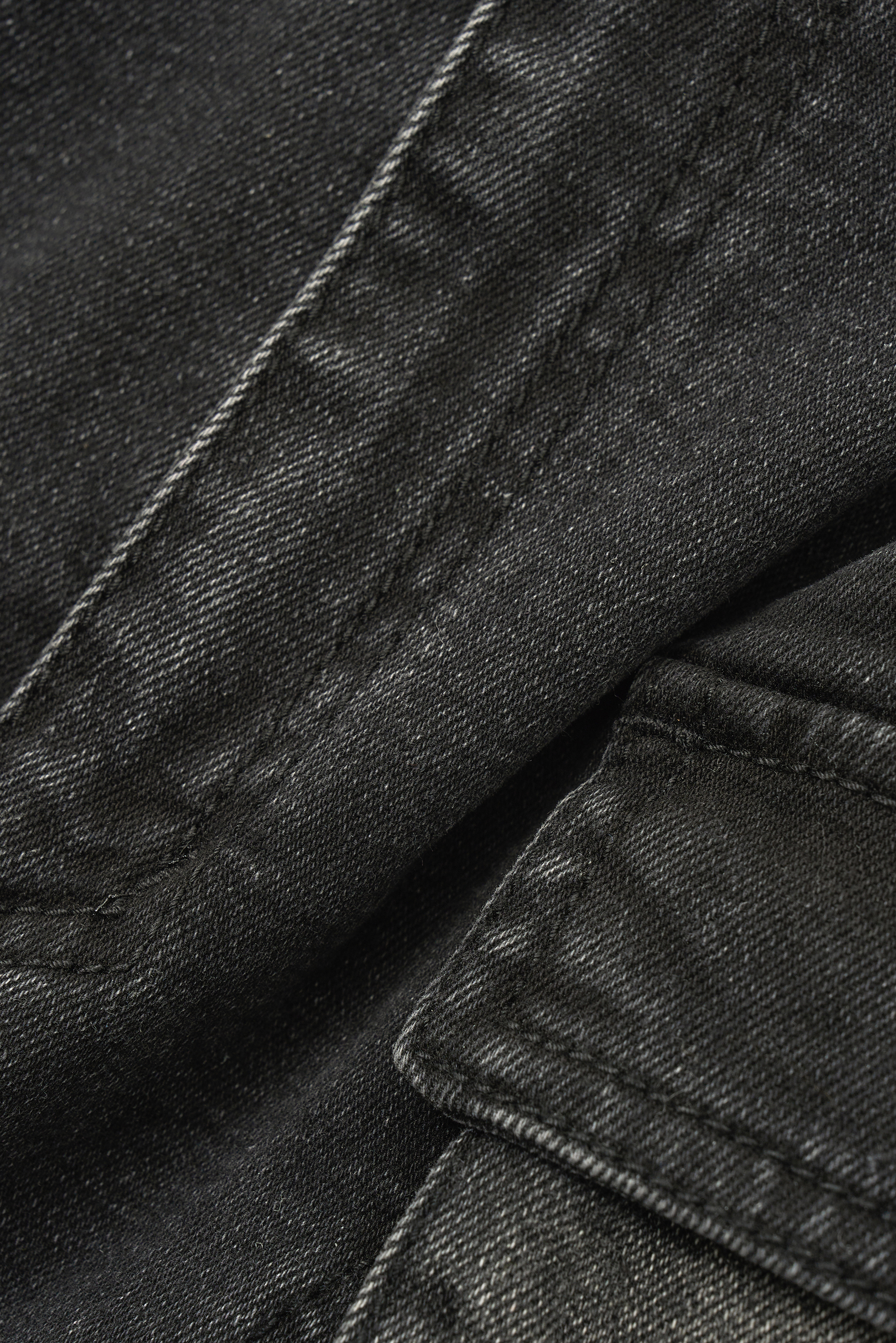 - 탄탄하고 내구성이 좋은 워시드 데님 패브릭으로 편안한 착용감을 제공합니다.
