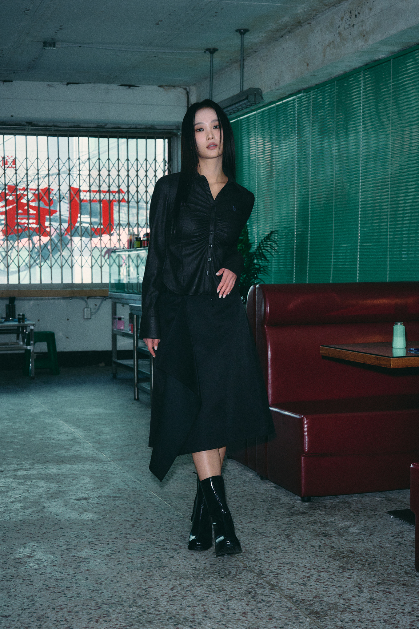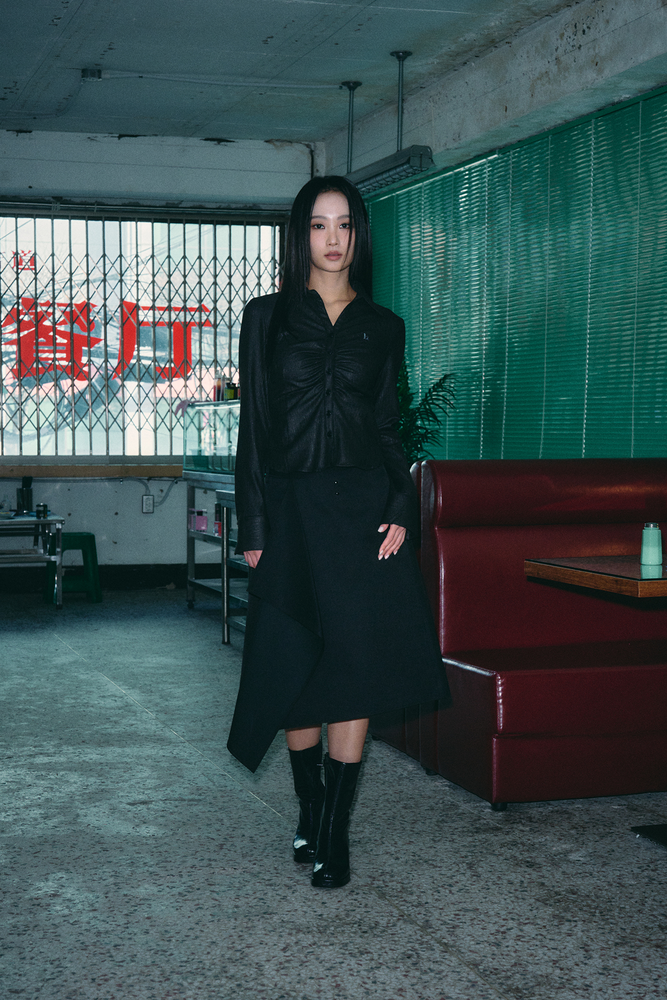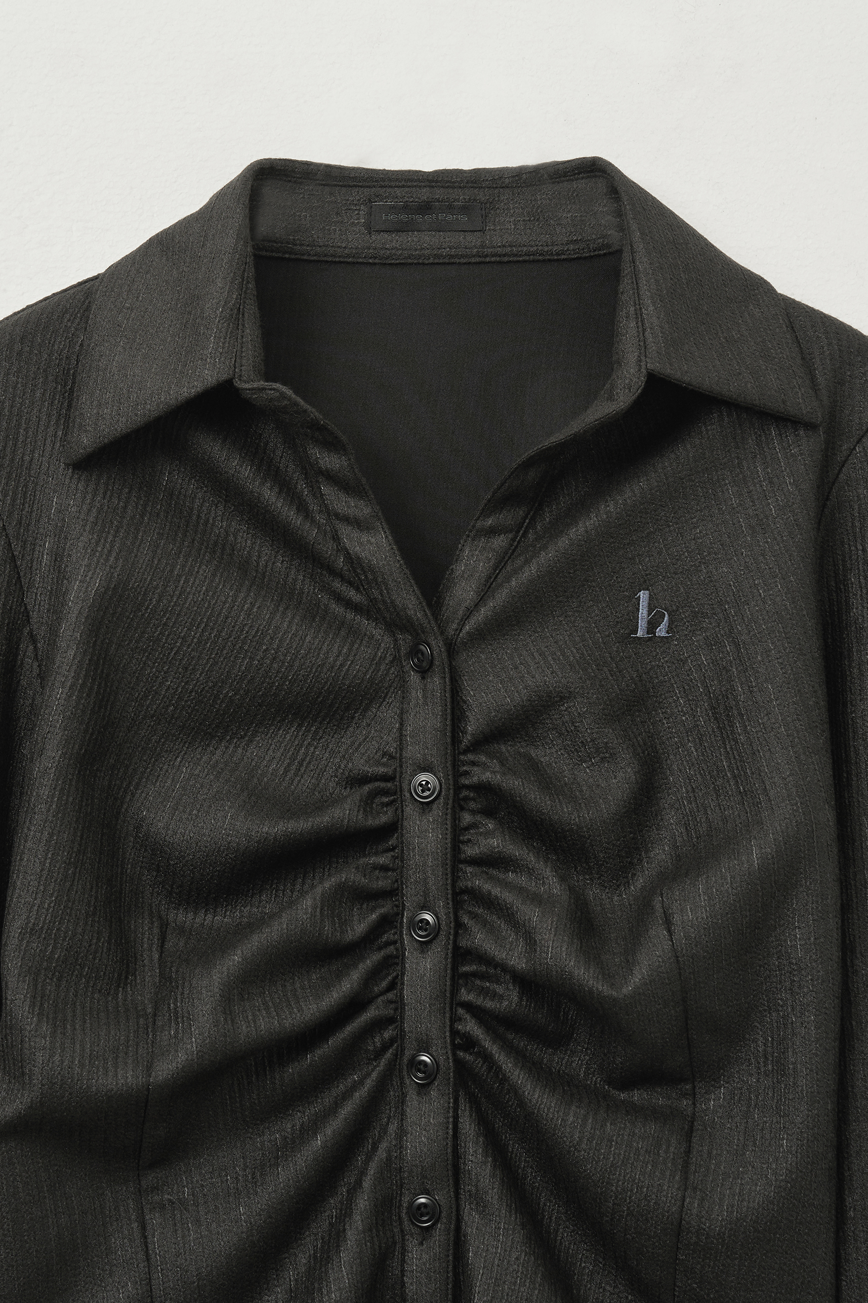 코코린 셔링 피티드 셔츠 [워시드 블랙]