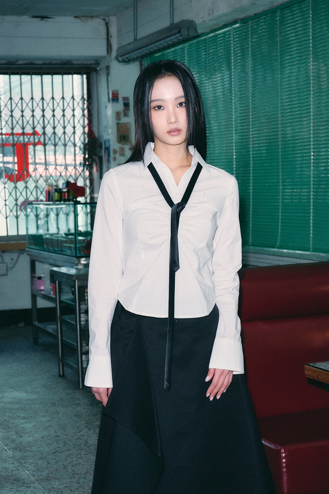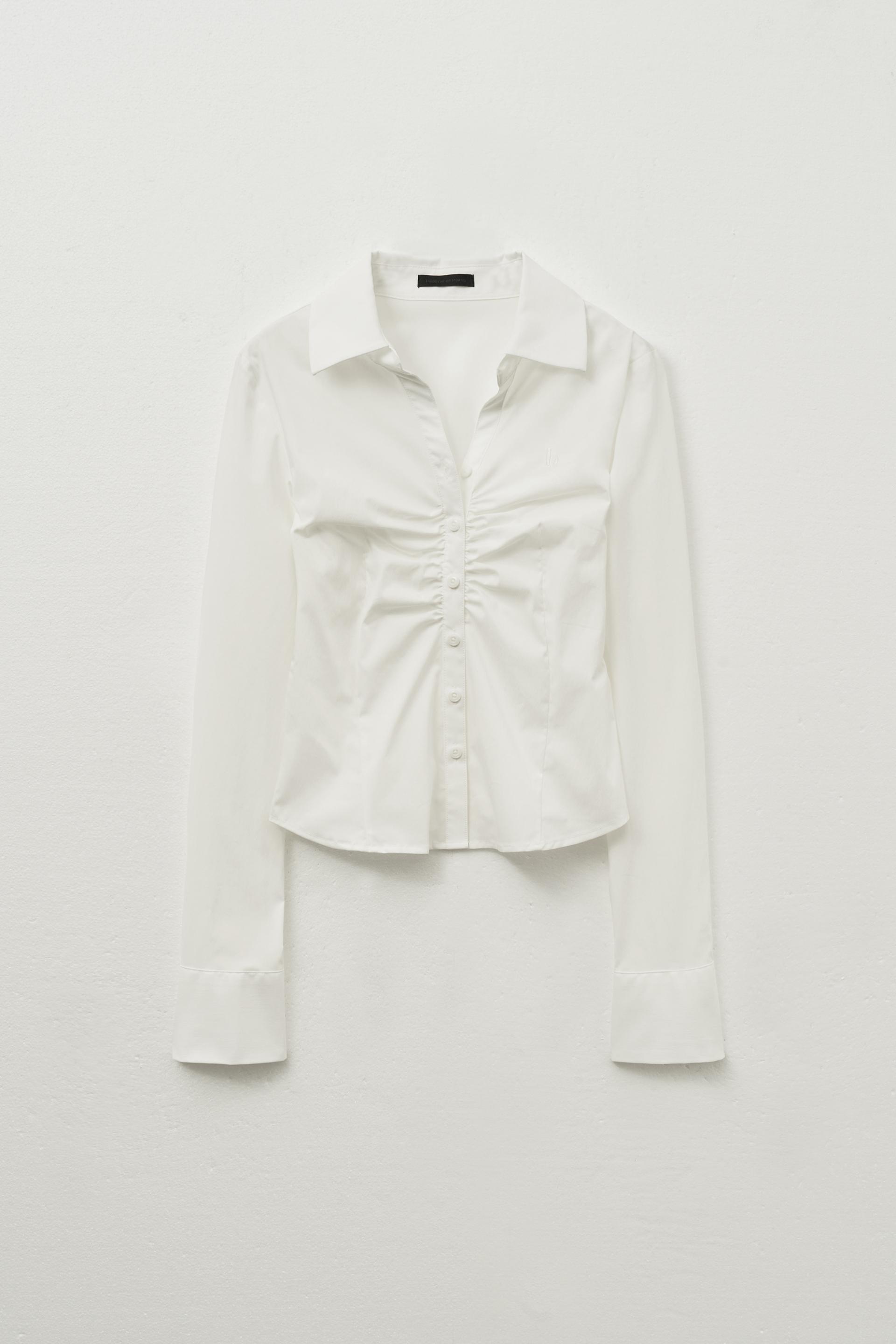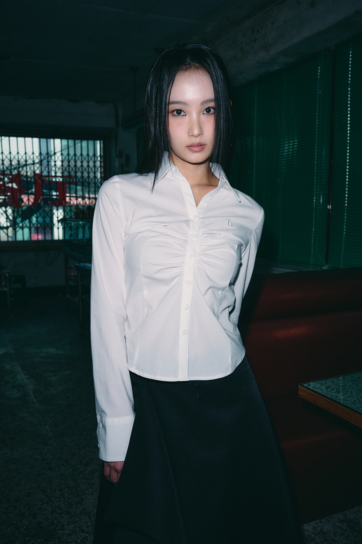 - 체스트 셔링 디테일로 페미닌한 락시크 무드를 담은 셔츠입니다.