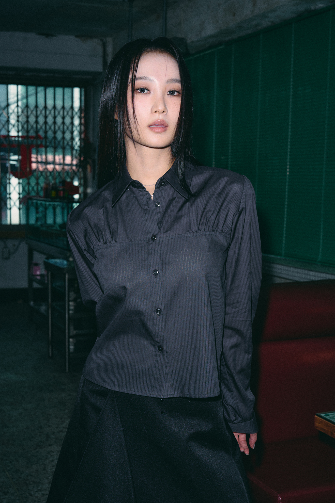- 체스트 라인에 셔링 디테일을 담은 베이직 셔츠입니다.