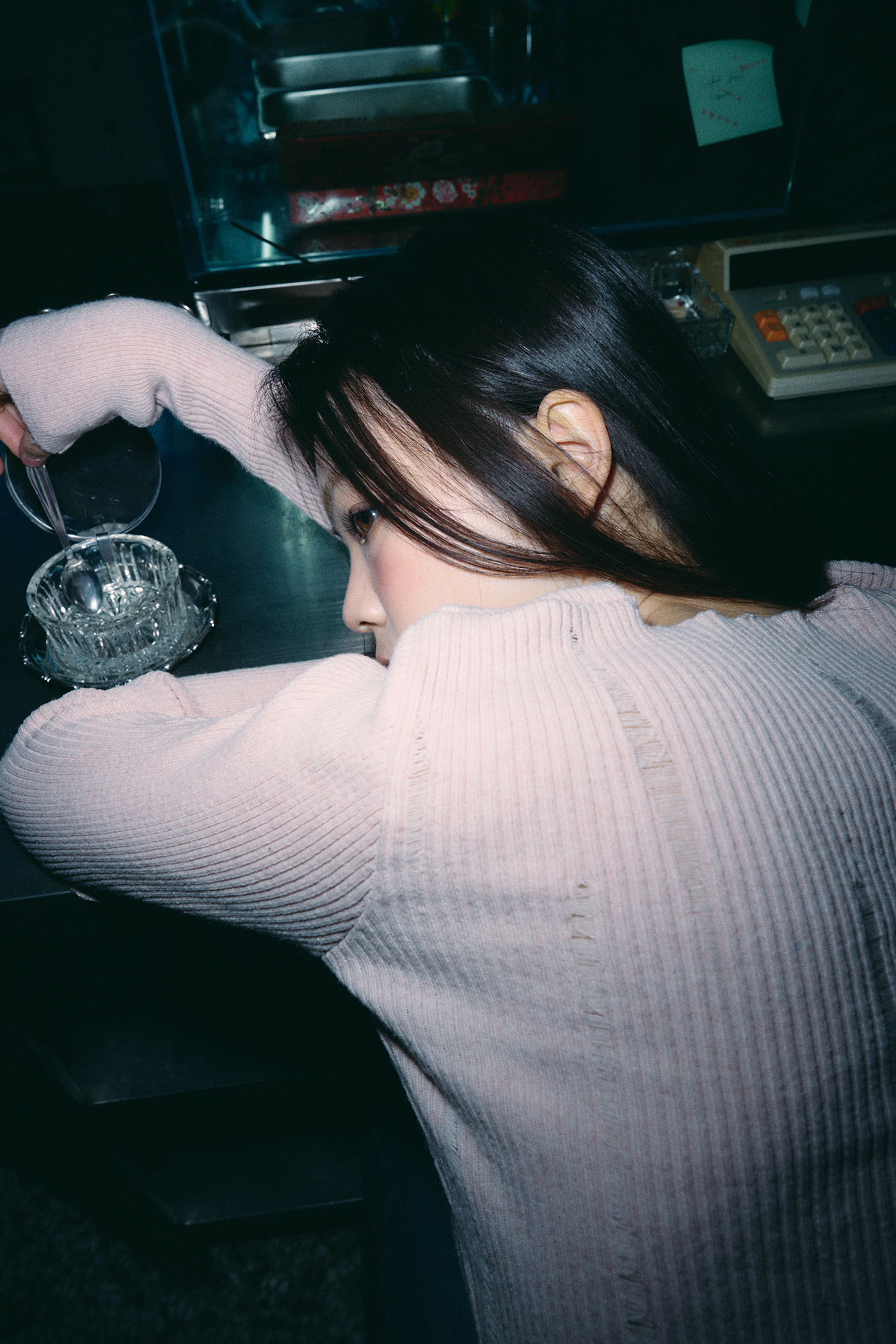- 데미지드 브이넥 리브드 니트 스킨 핑크 버전입니다.