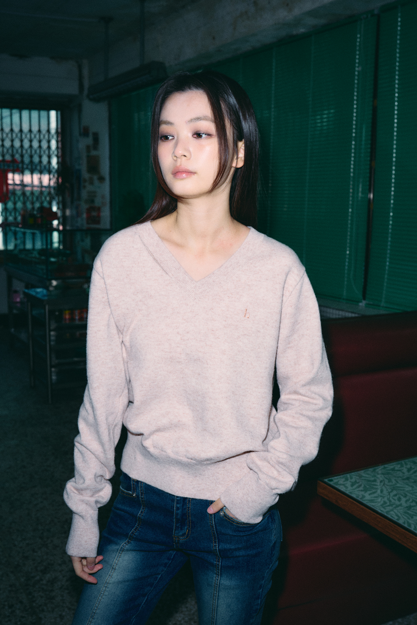 브이넥 벤트 클래식 니트 [레드 오트밀]