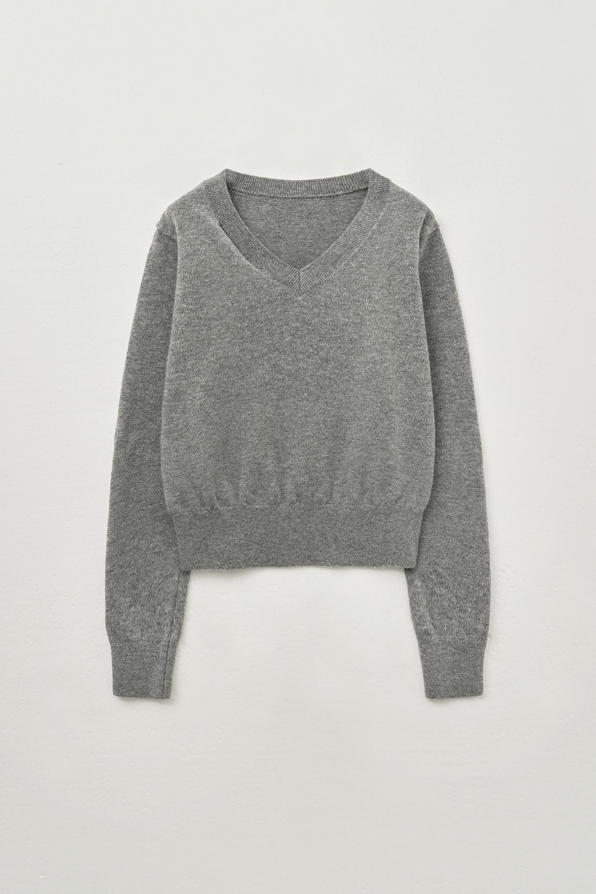 브이넥 벤트 클래식 니트 [멜란지]