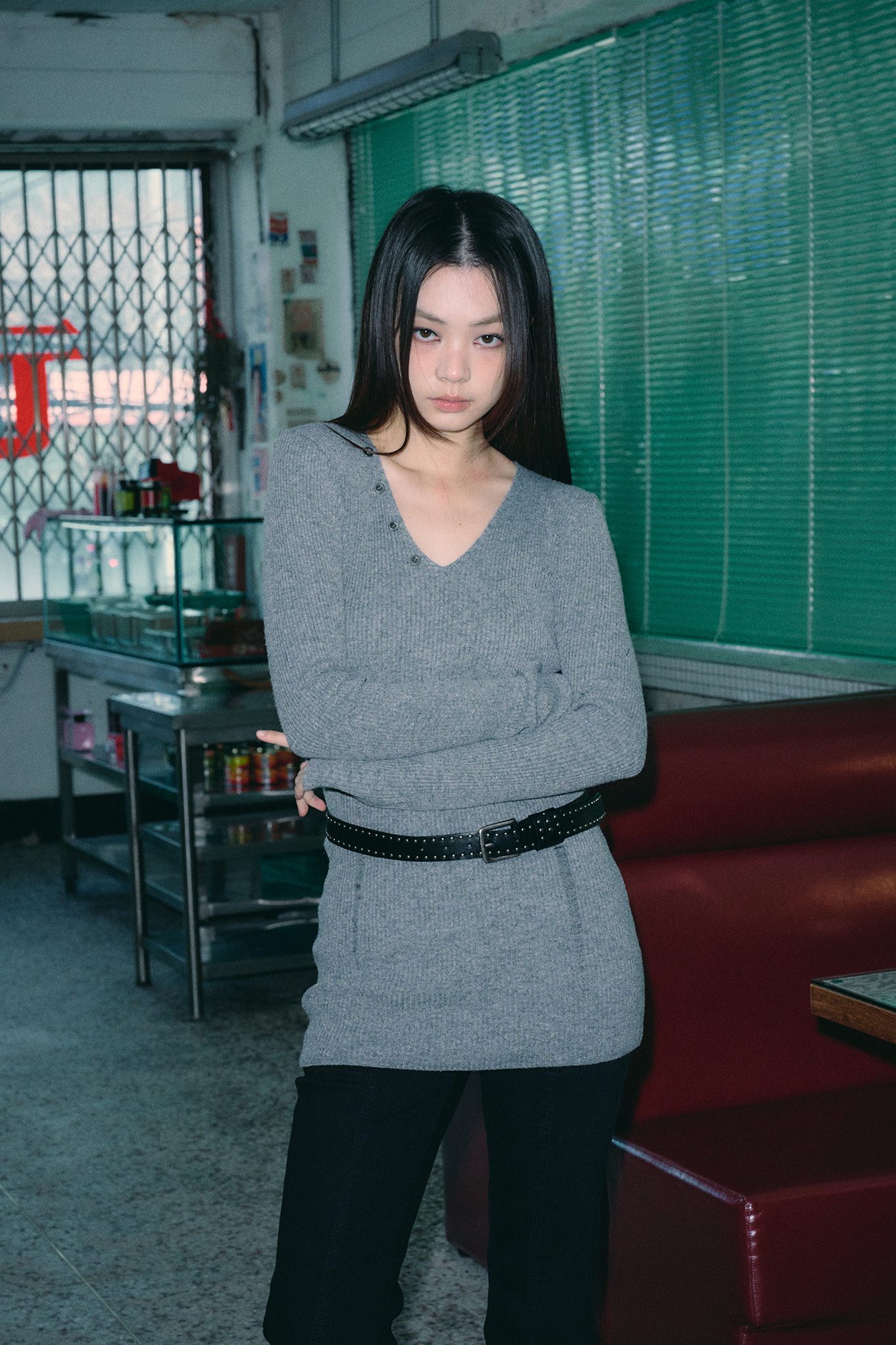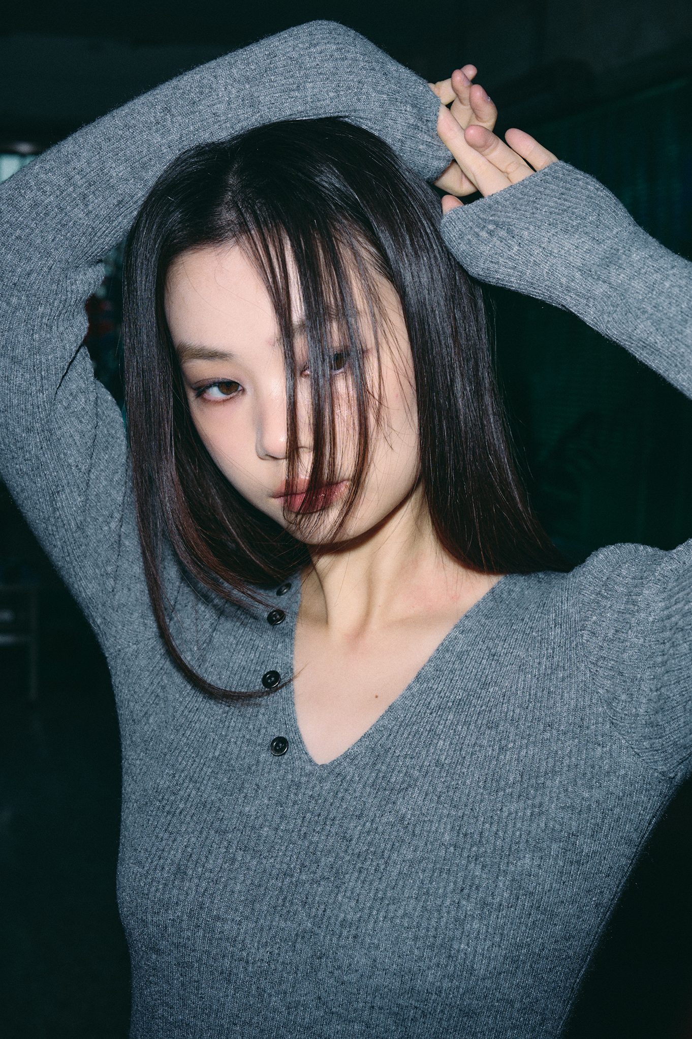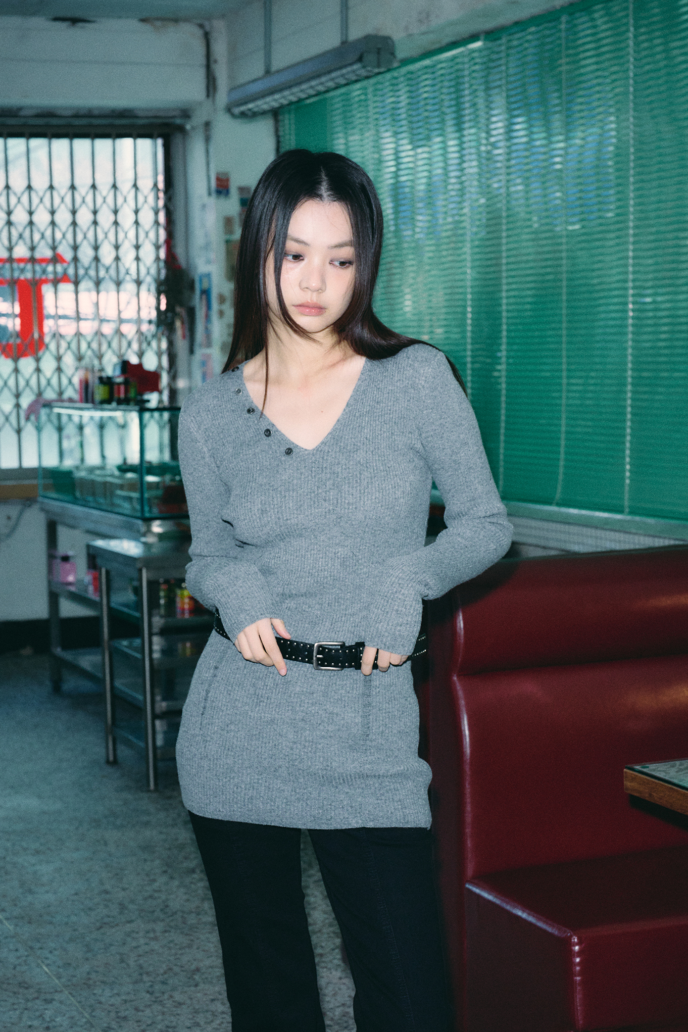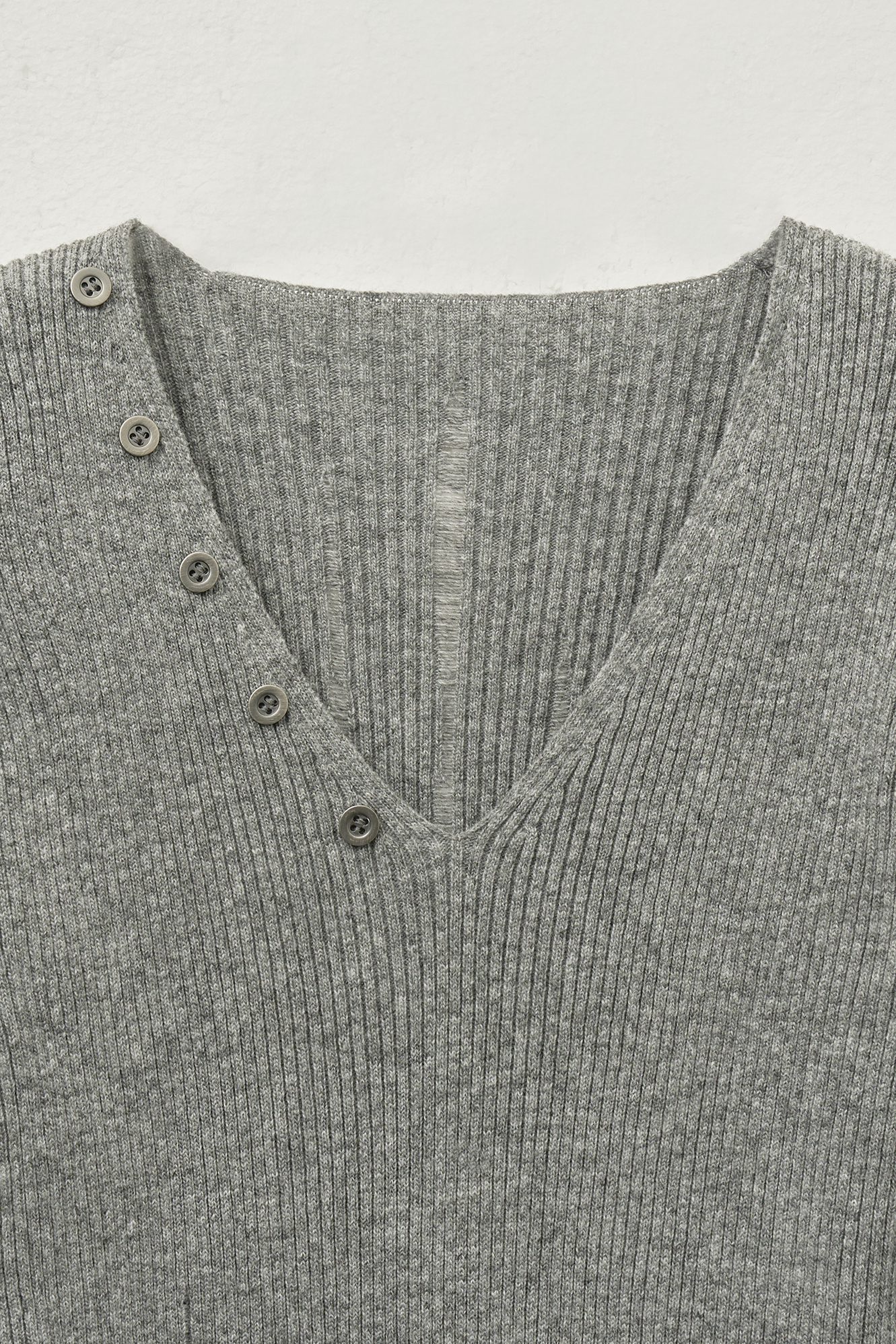 - 깊지 않은 V넥 디자인으로 넥 라인을 강조해줍니다.
