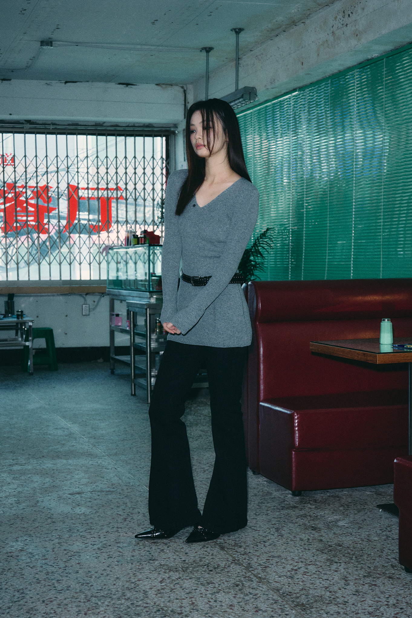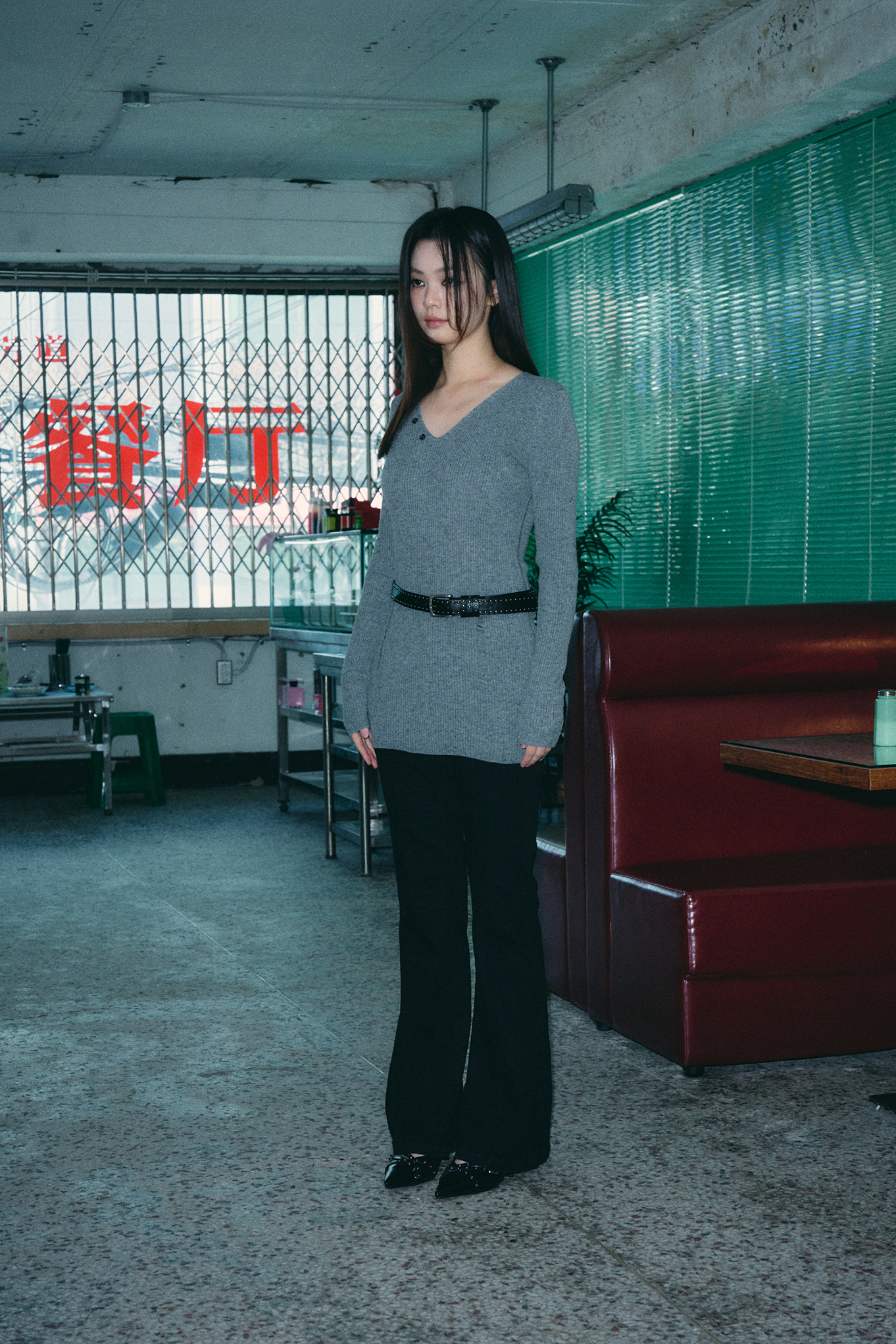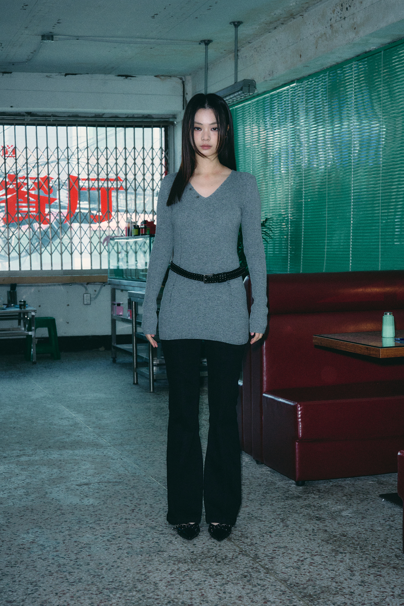 - 깊지 않은 V넥 디자인으로 넥 라인을 강조해줍니다.