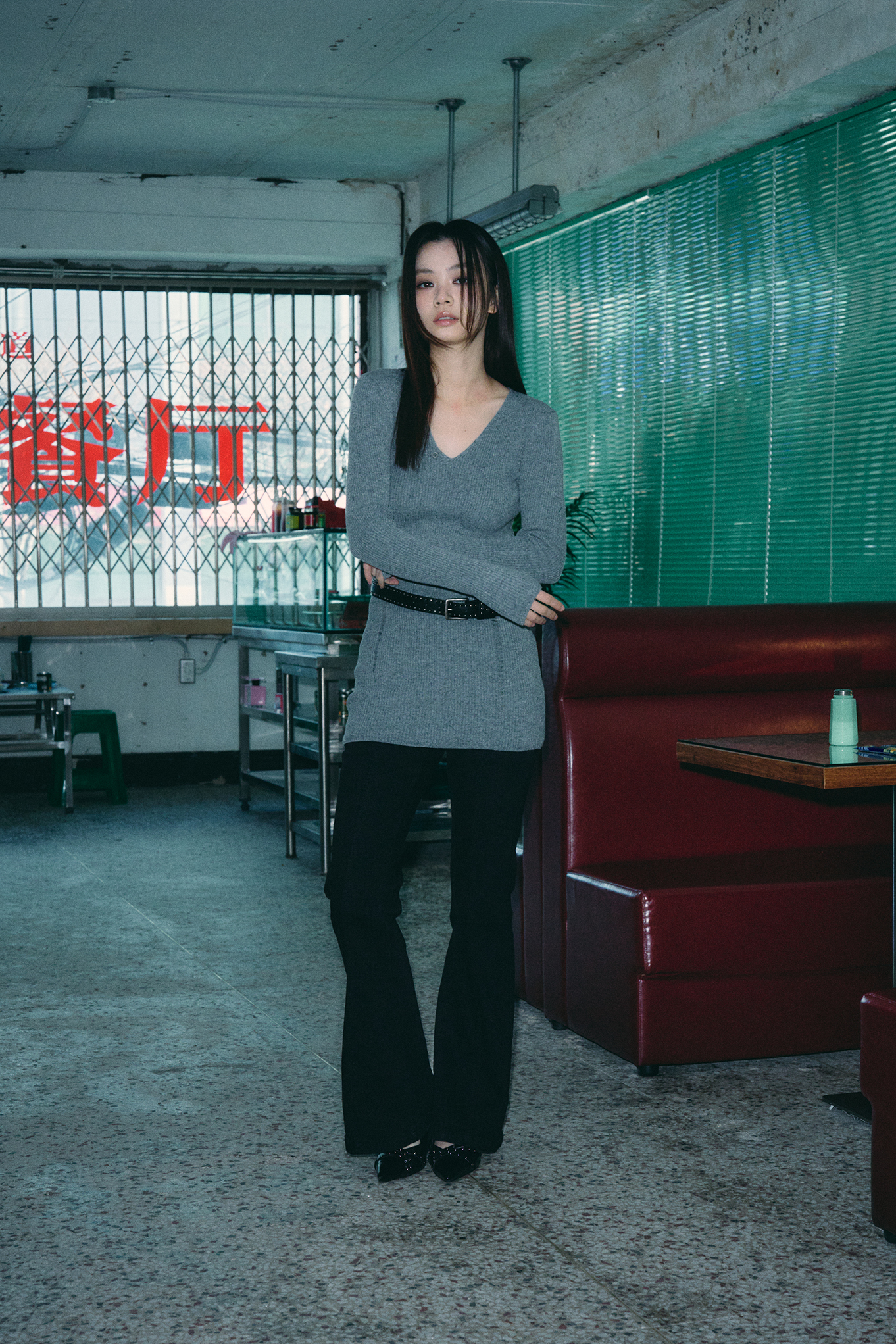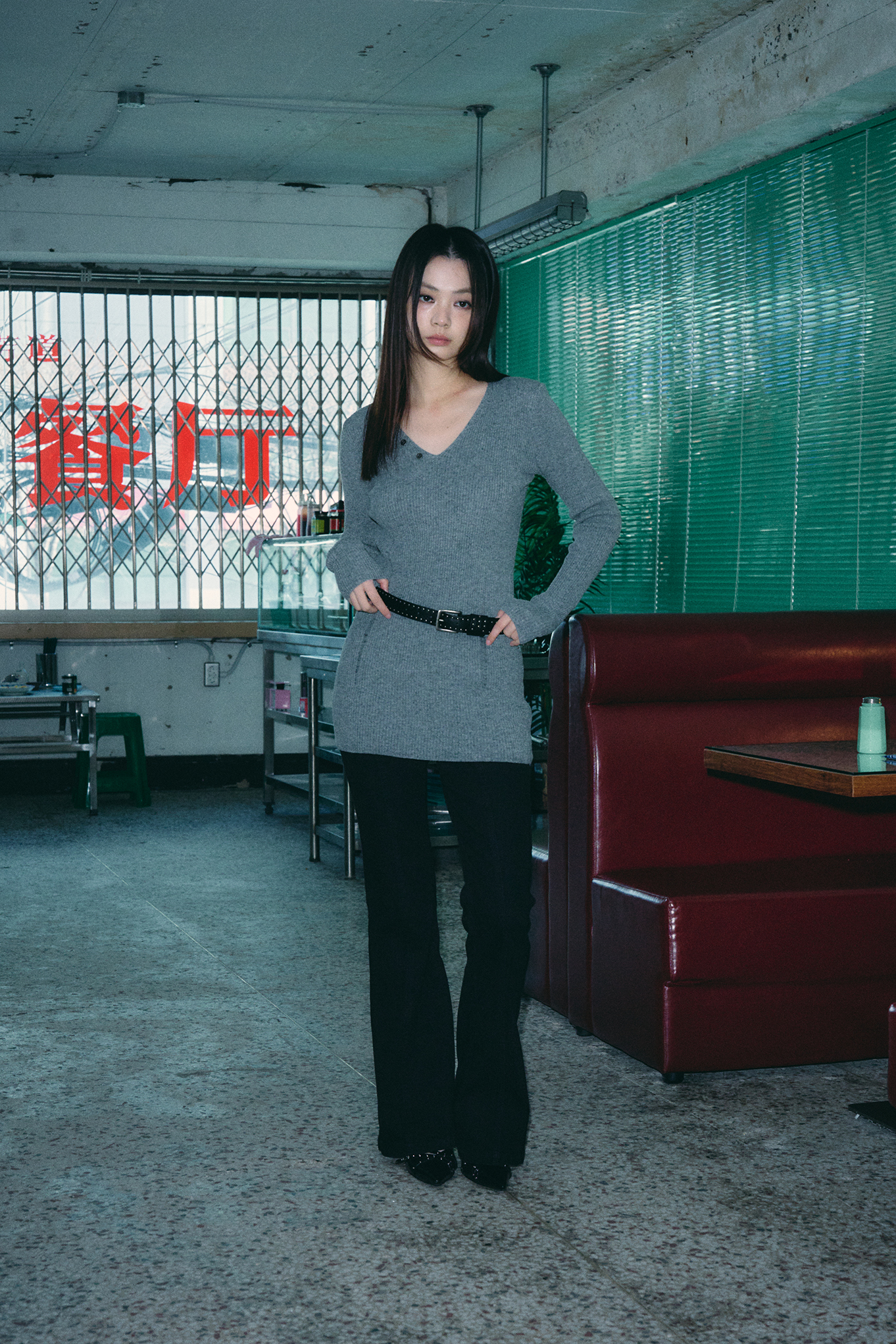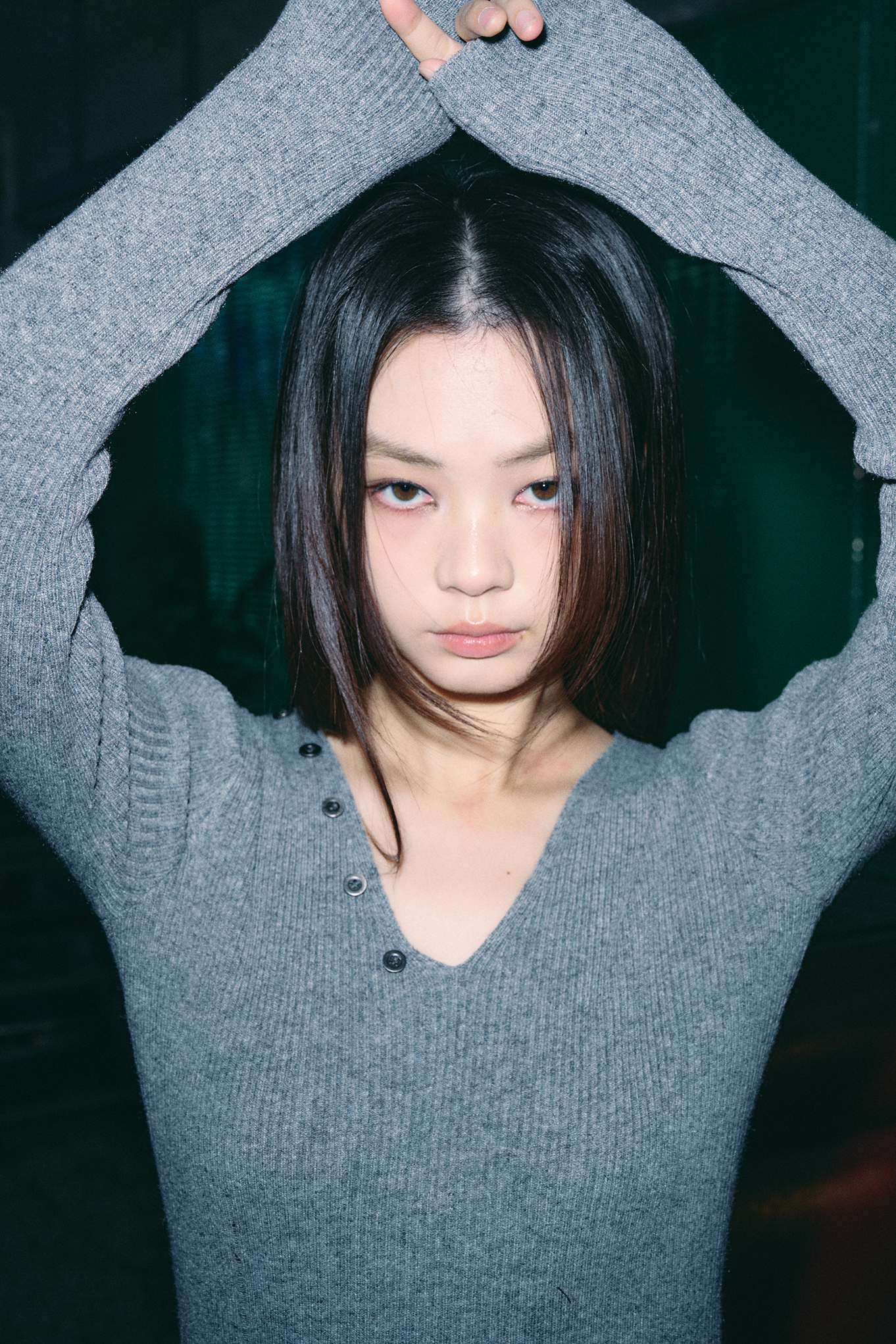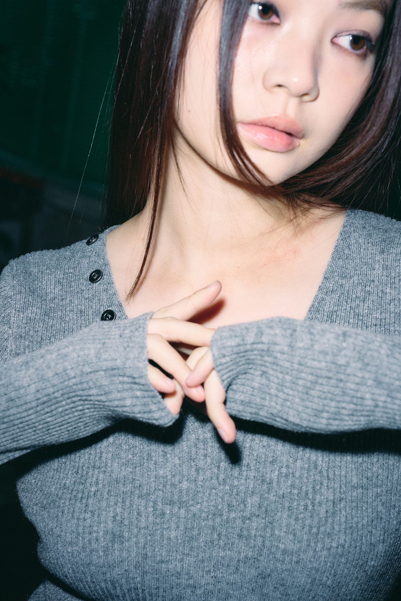 - 깊지 않은 V넥 디자인으로 넥 라인을 강조해줍니다.