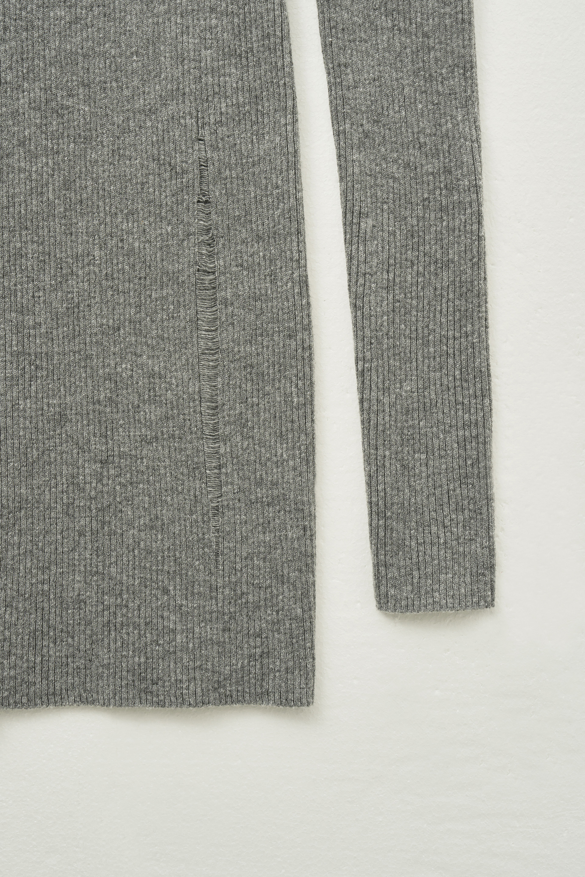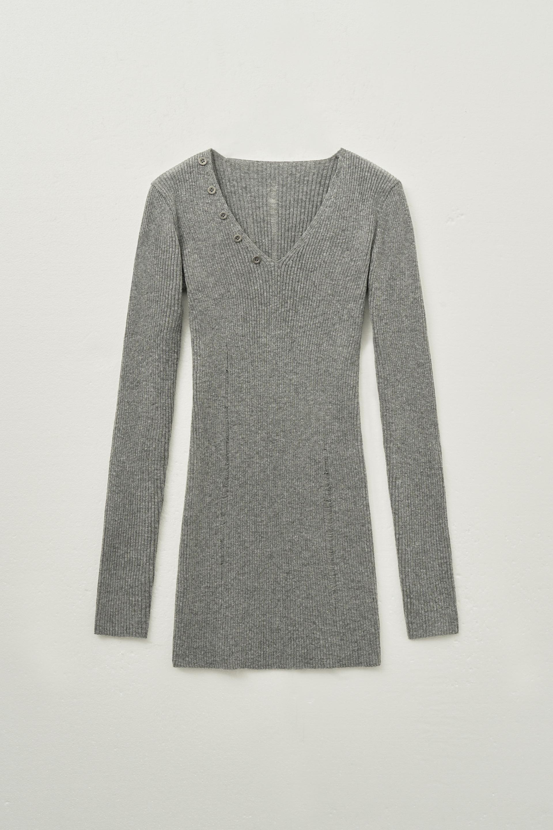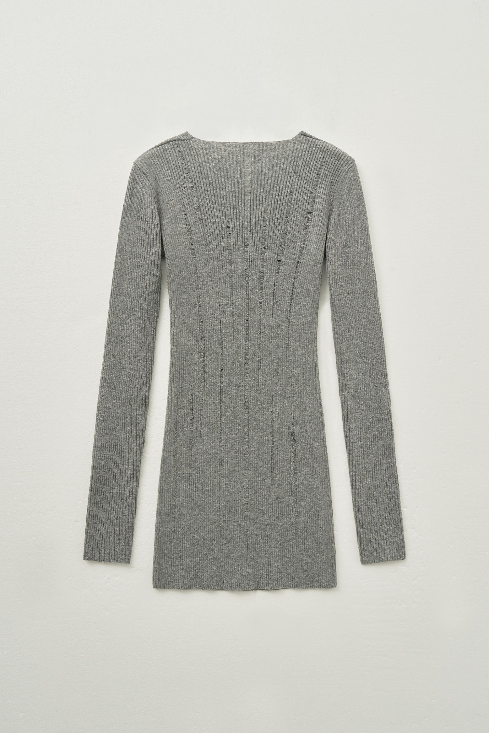 데미지드 브이넥 리브드 니트 원피스 [멜란지]