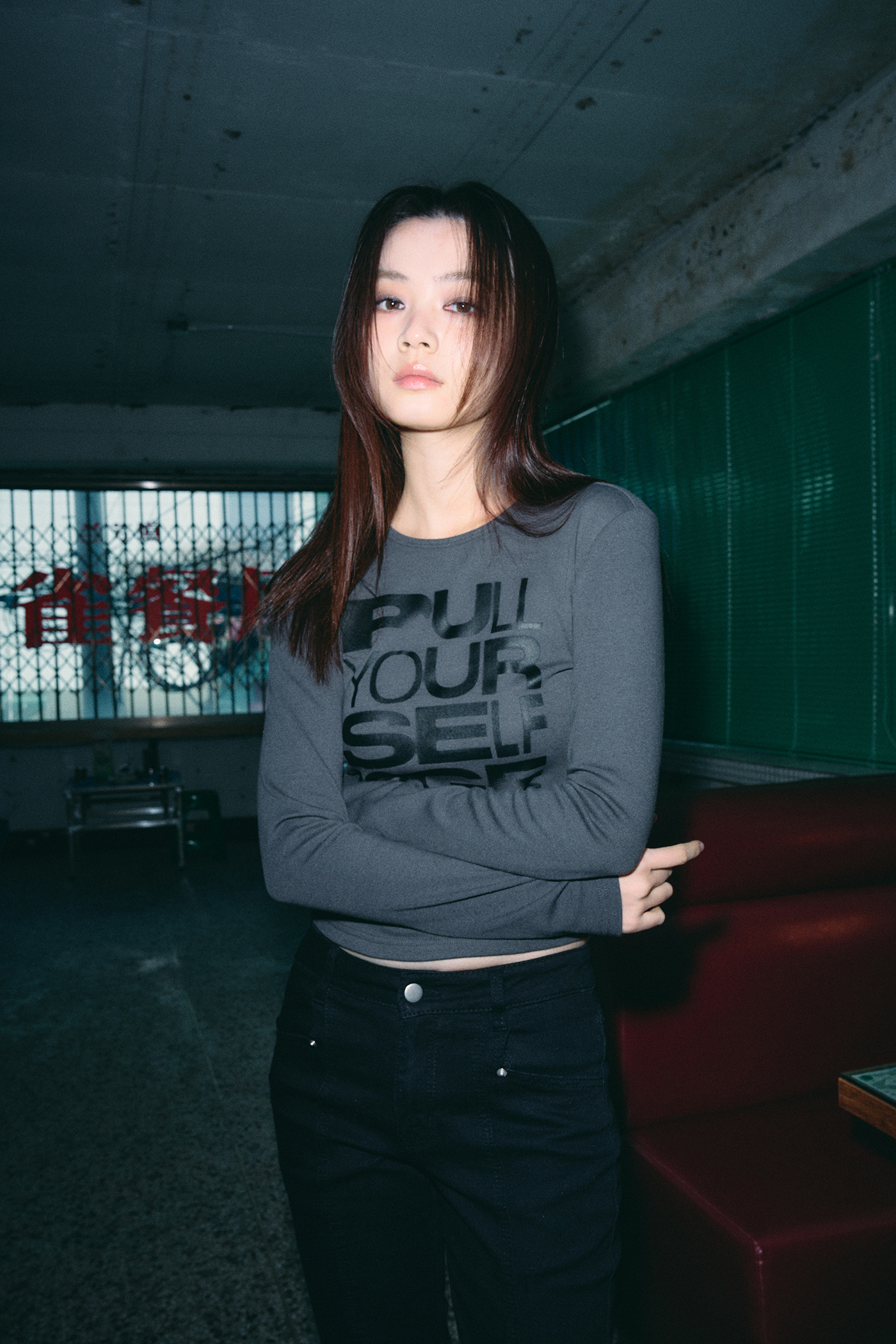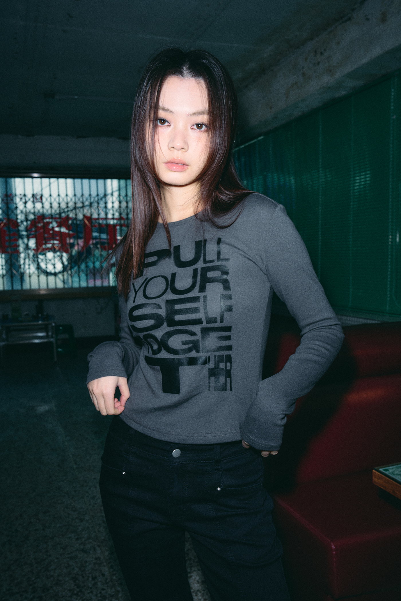 셀프 투게더 아트워크 롱 슬리브 [카키 그레이]