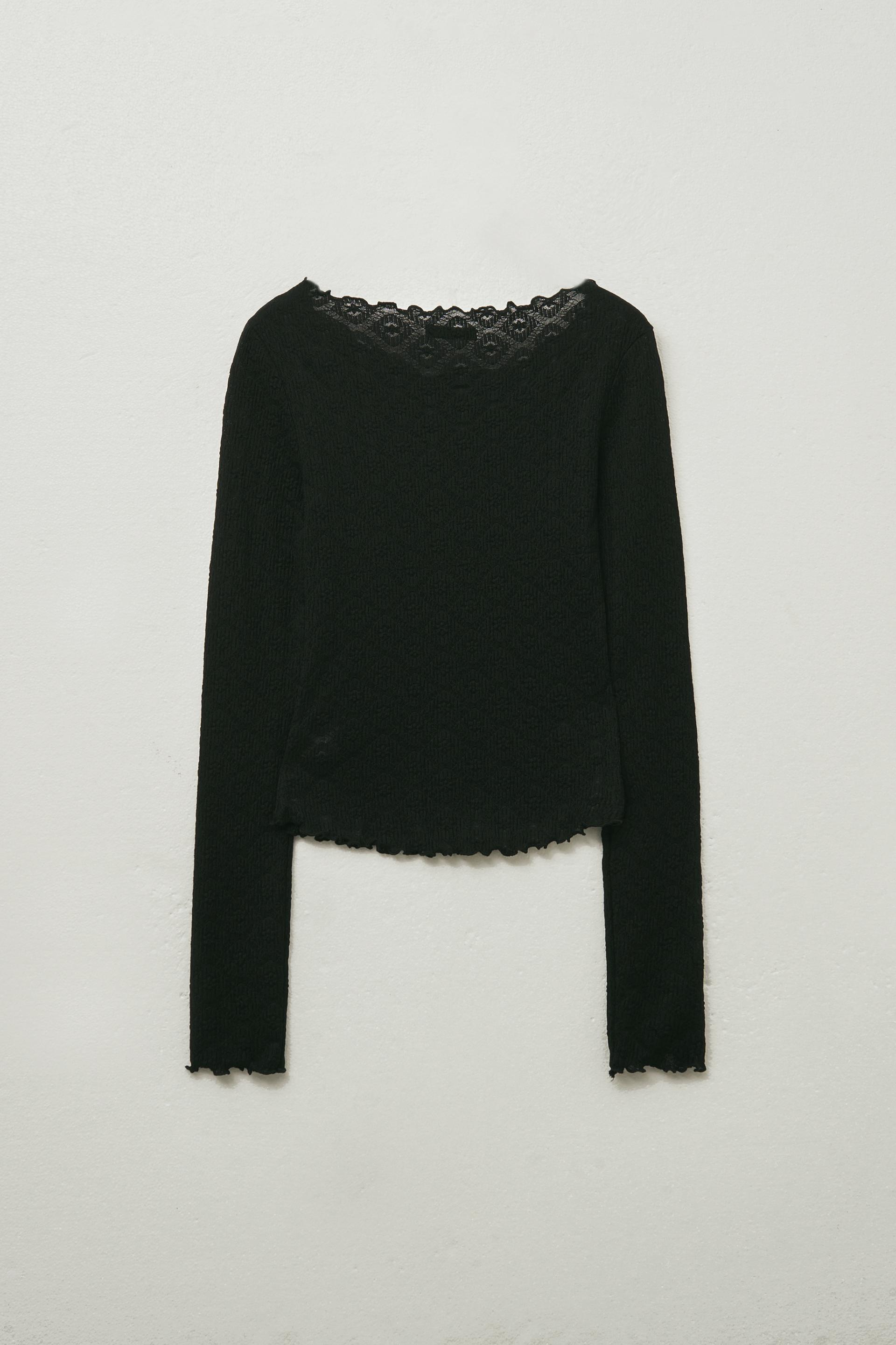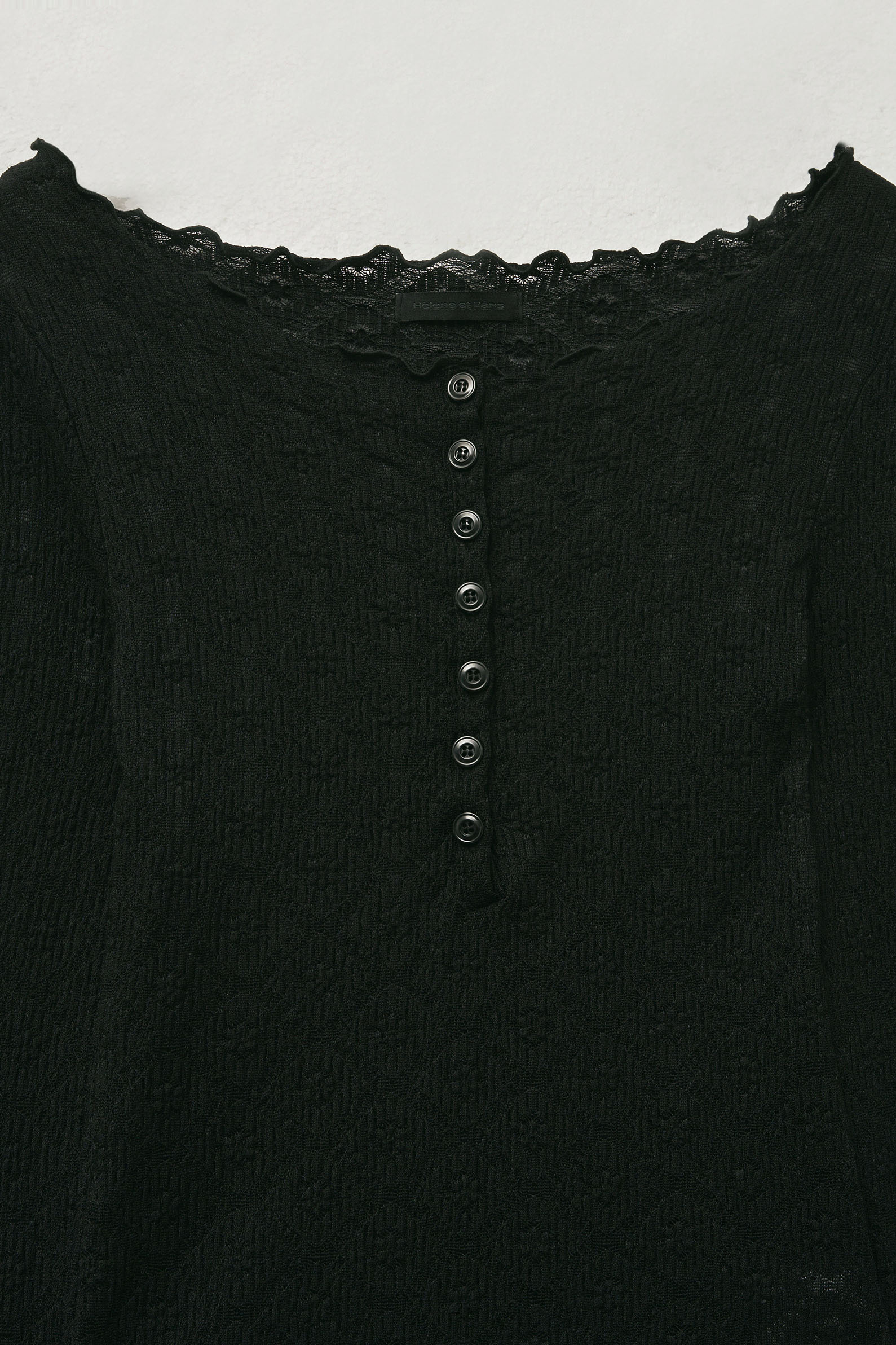 레이스 미니 버튼 롱 슬리브 [블랙]