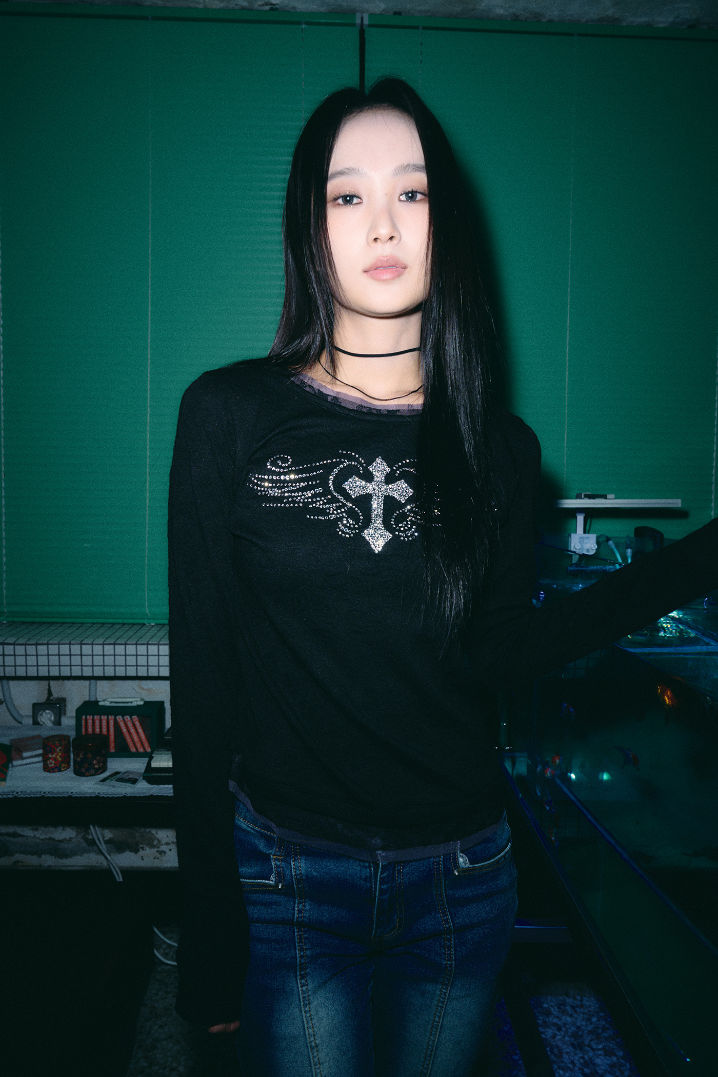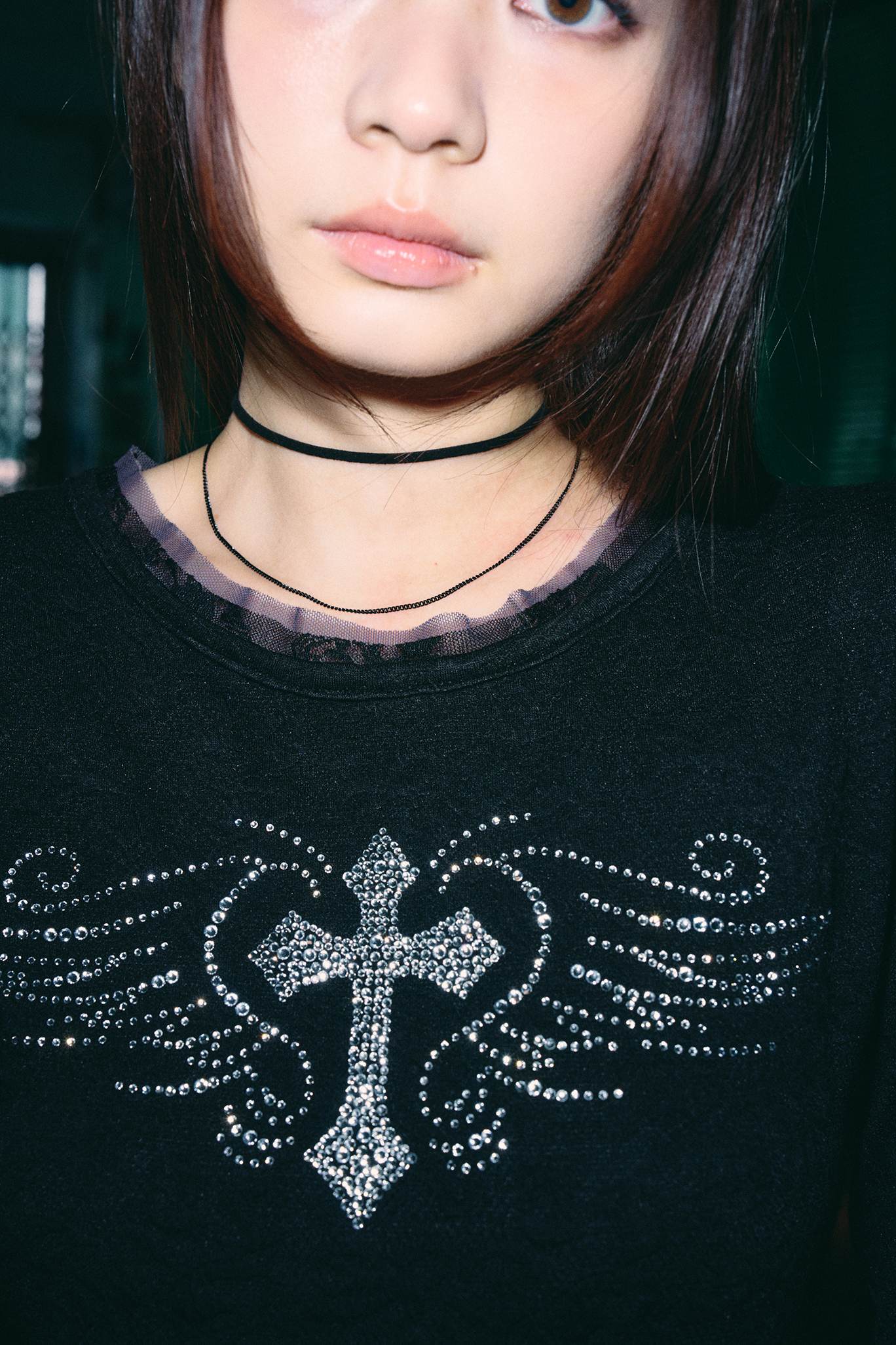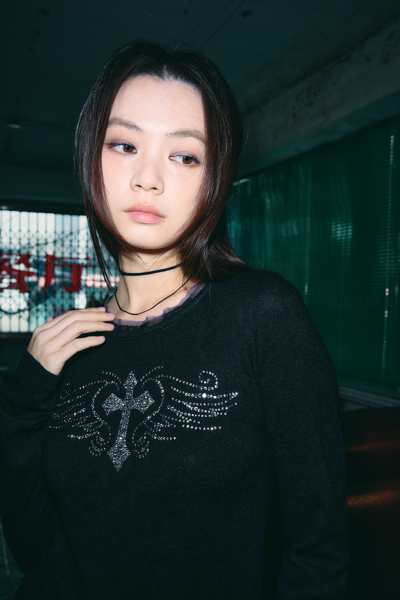 엔젤 크로스 큐빅 레이스 롱 슬리브 [블랙]