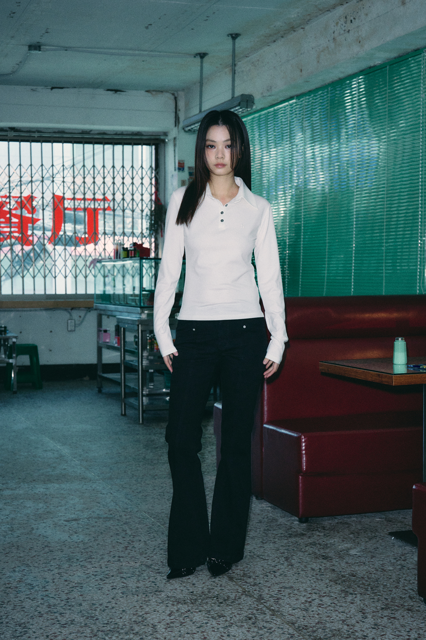 - 핏한 스탠다드 카라 디자인의 롱 슬리브입니다.