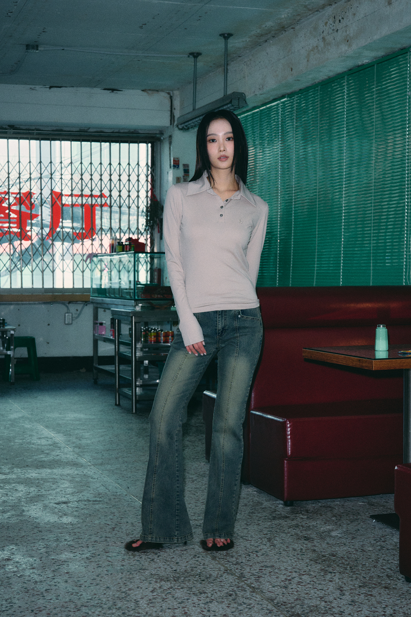 - 핏한 스탠다드 카라 디자인의 롱 슬리브입니다.