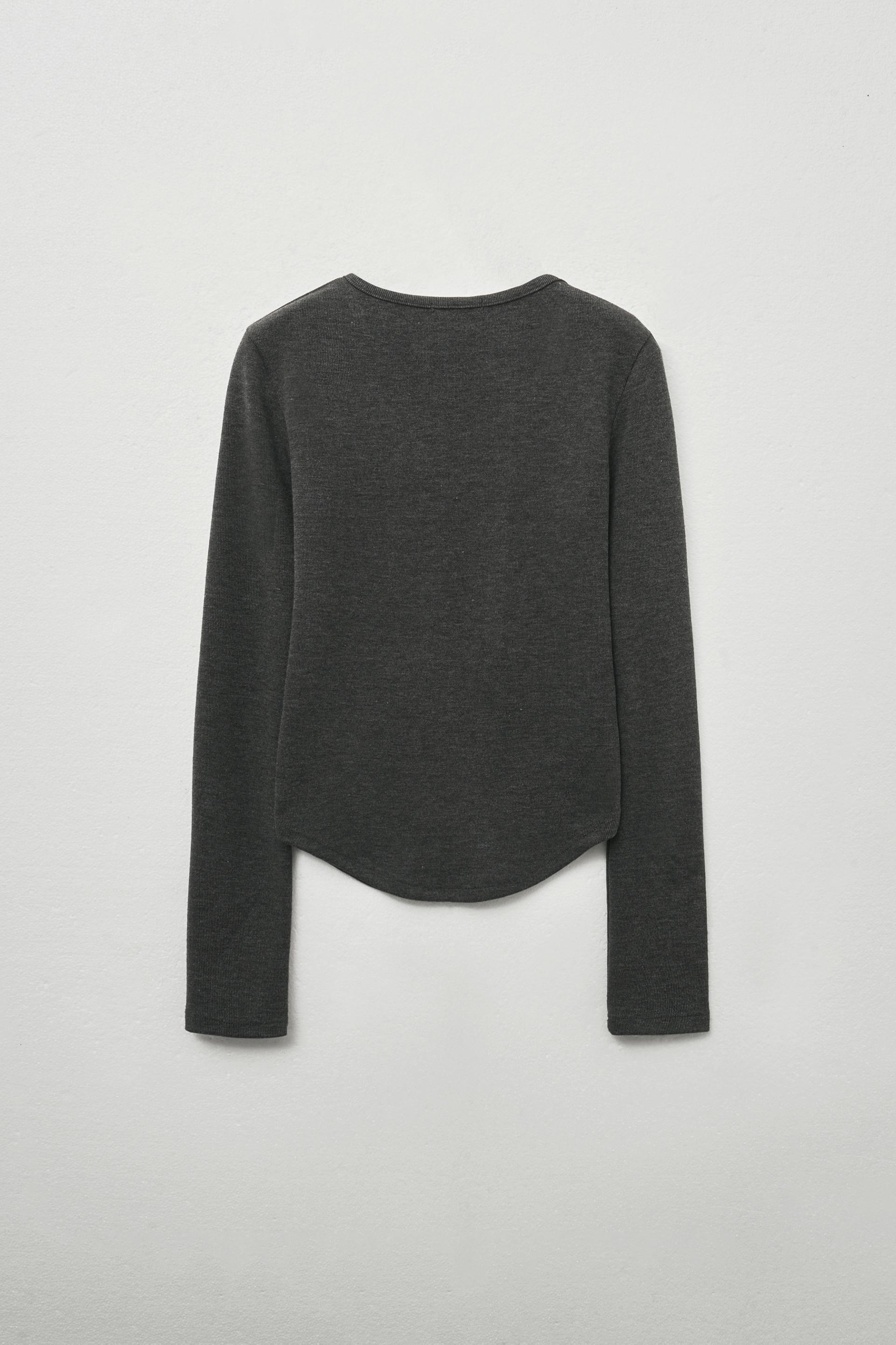 - 세미 크롭 랭스, 슬림 핏 가먼트입니다.
