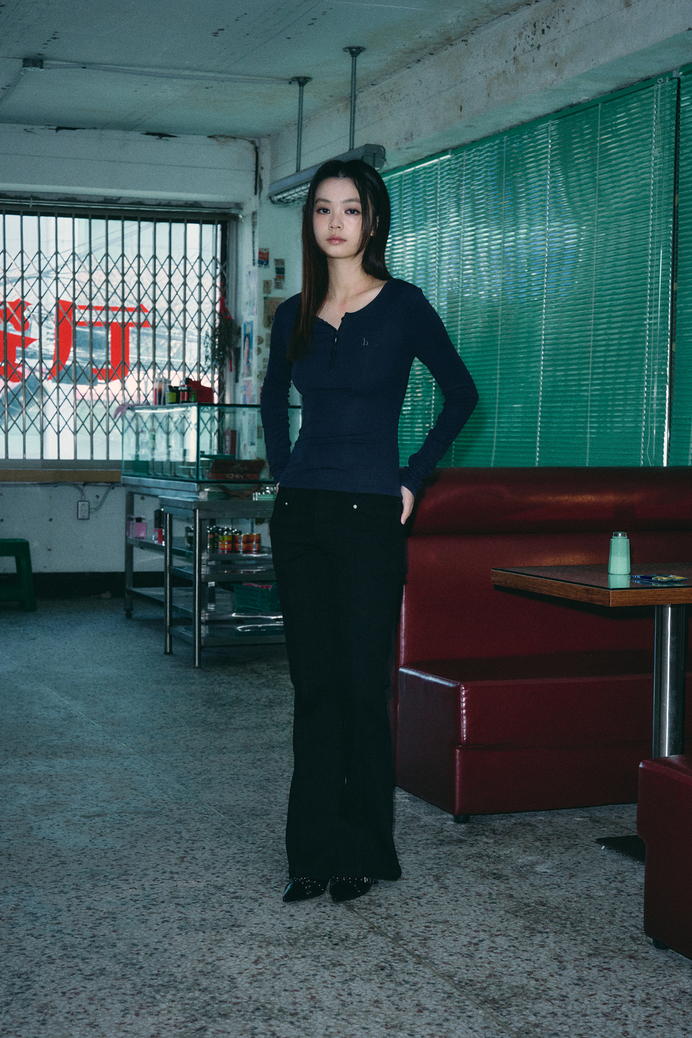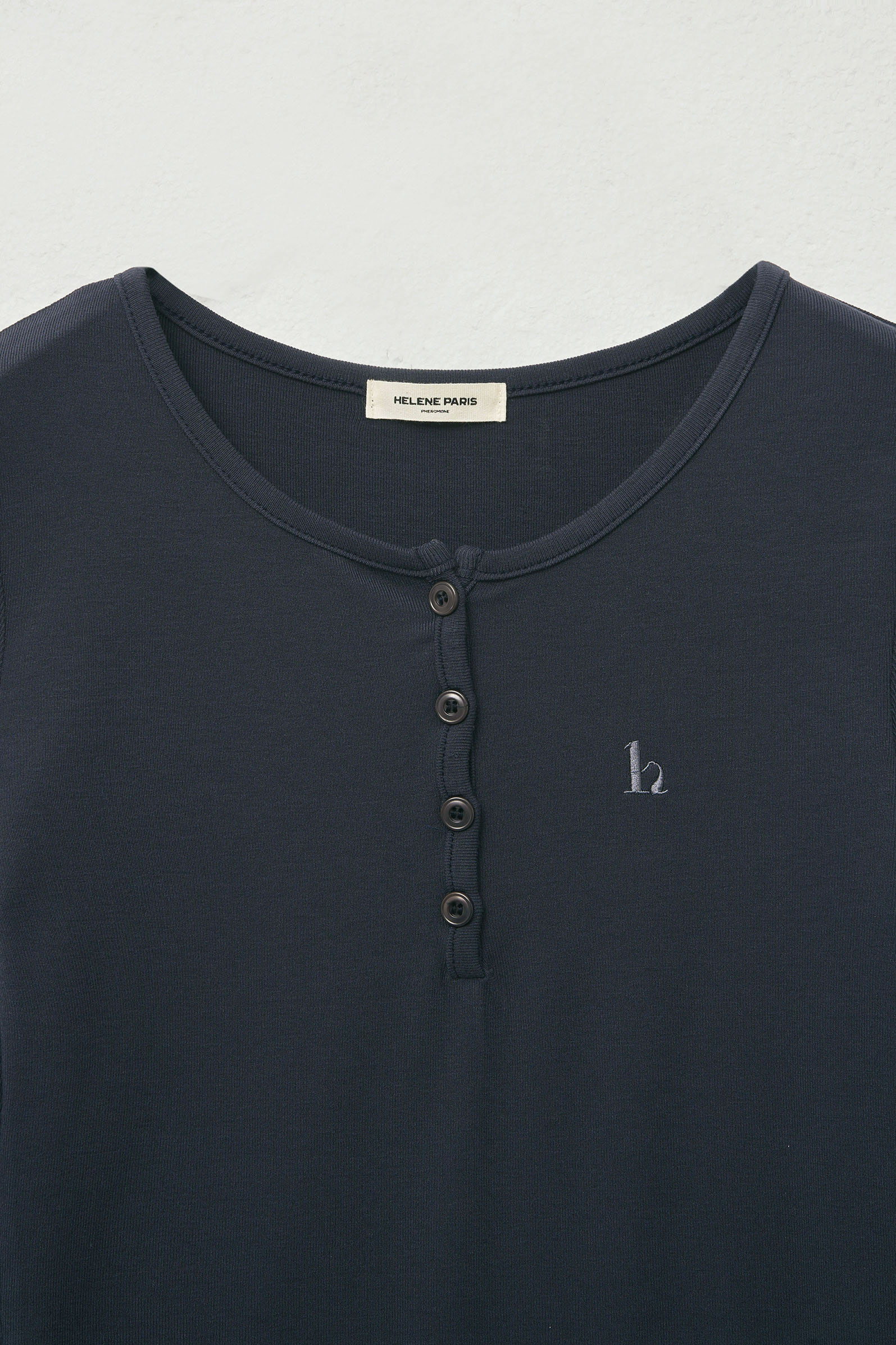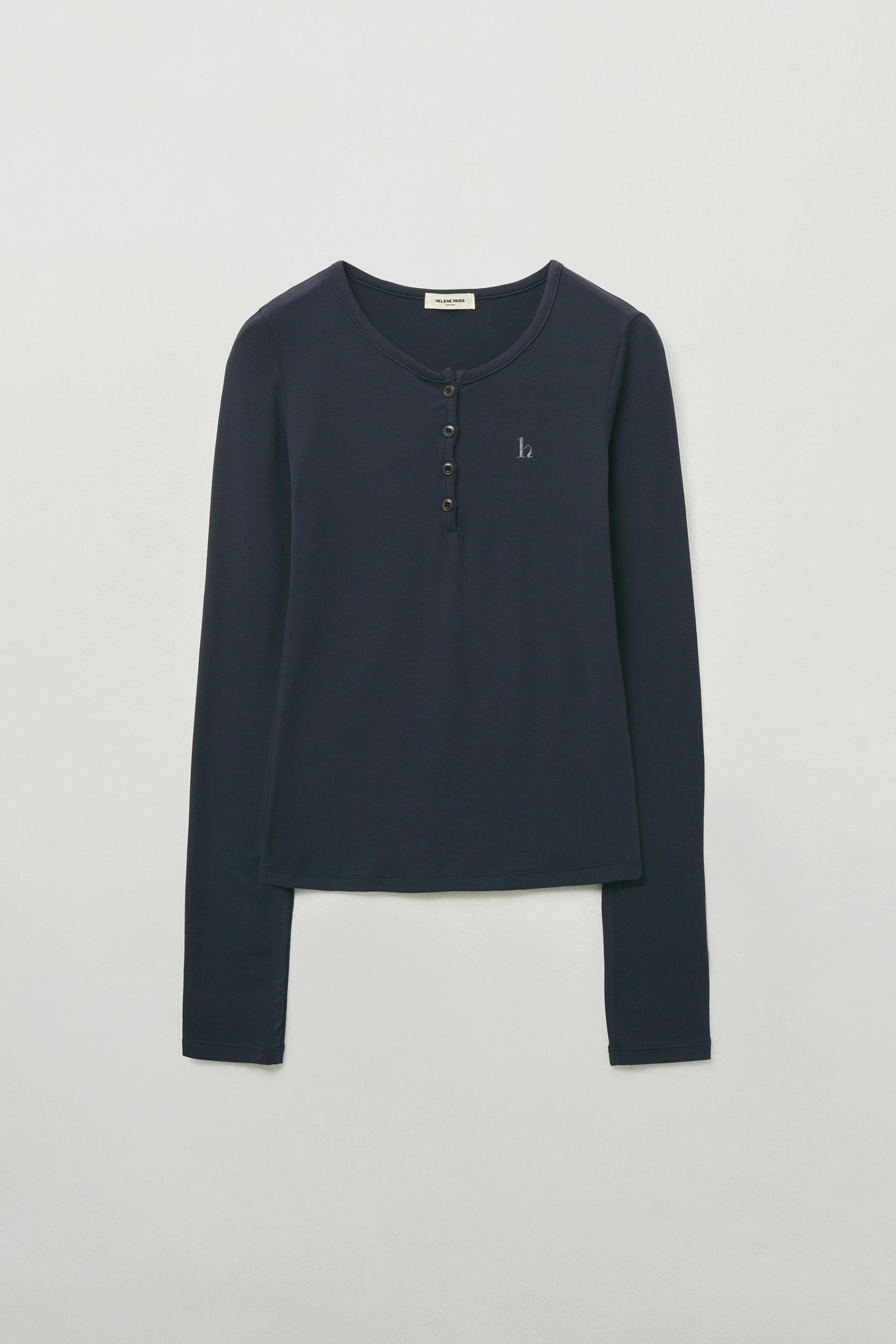 - 캐주얼한 무드의 헨리넥 디자인을 담은 롱 슬리브입니다.