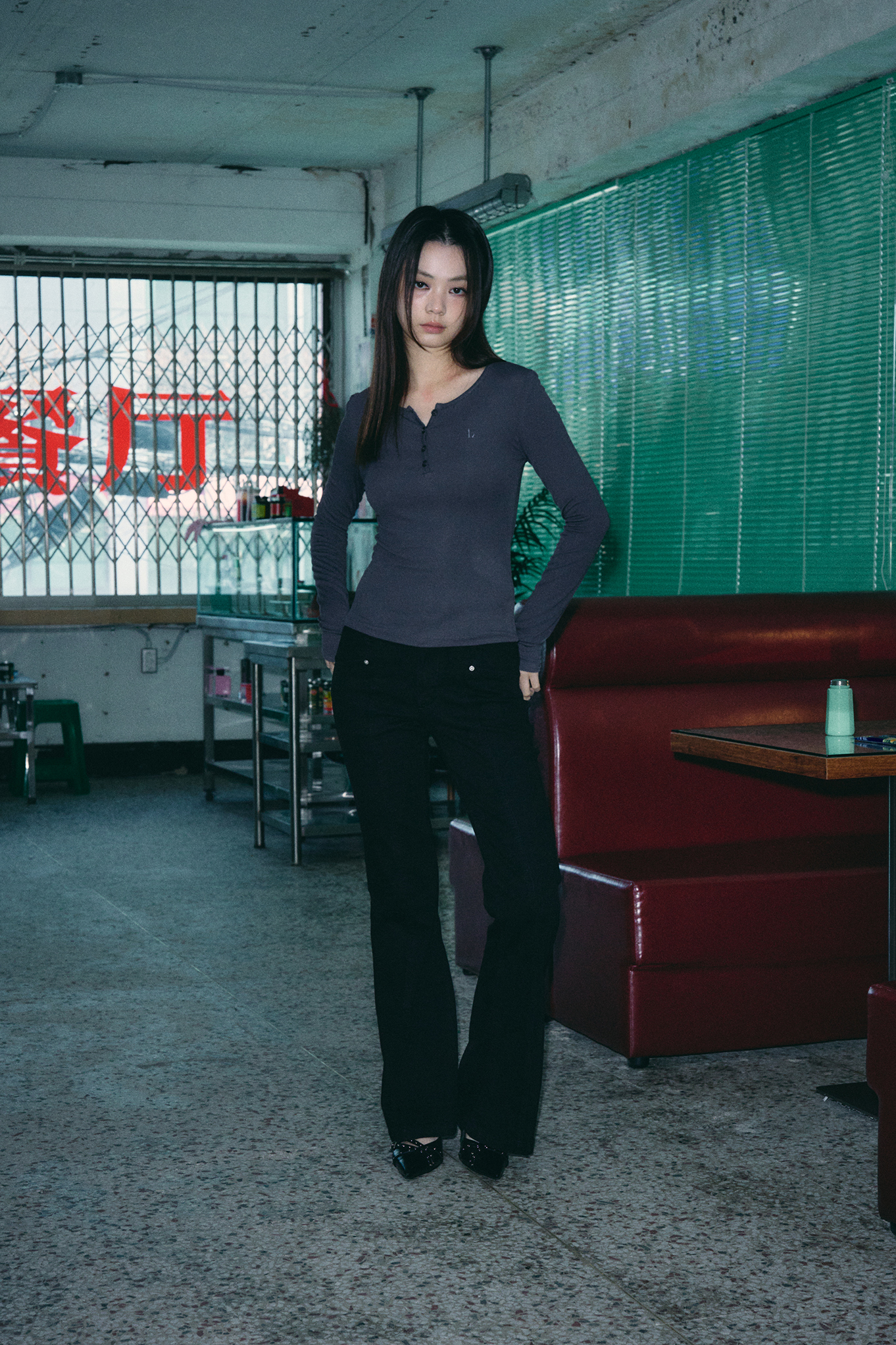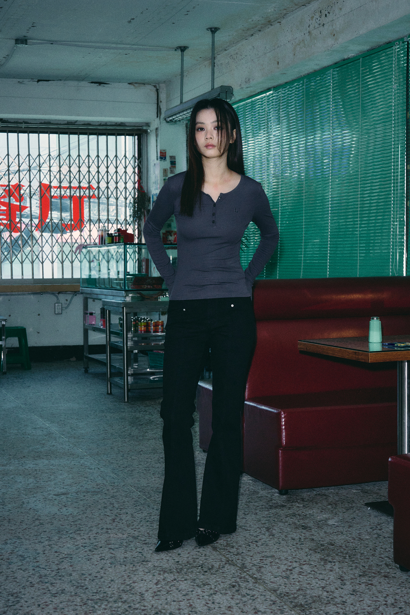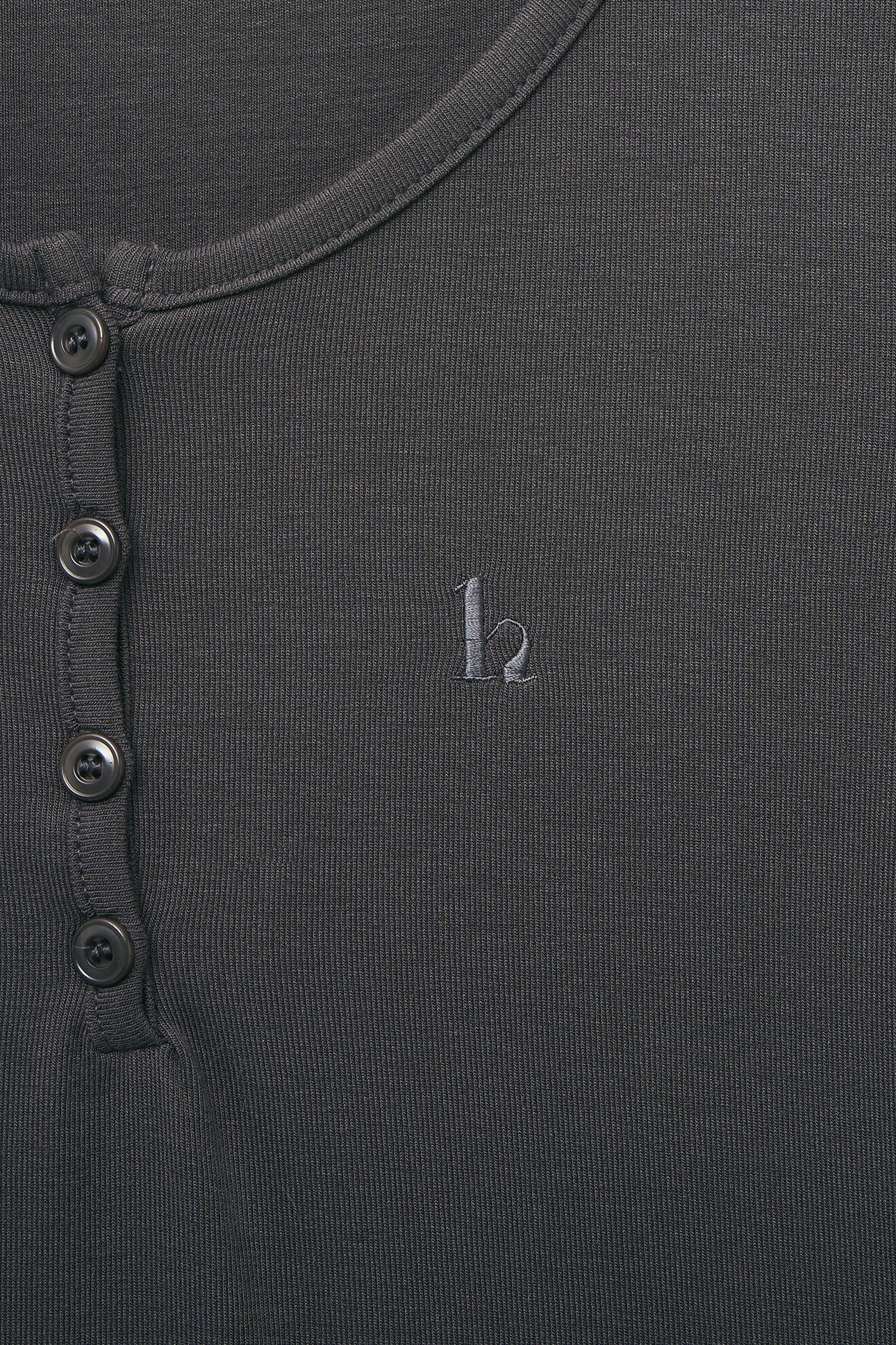 - 캐주얼한 무드의 헨리넥 디자인을 담은 롱 슬리브입니다.