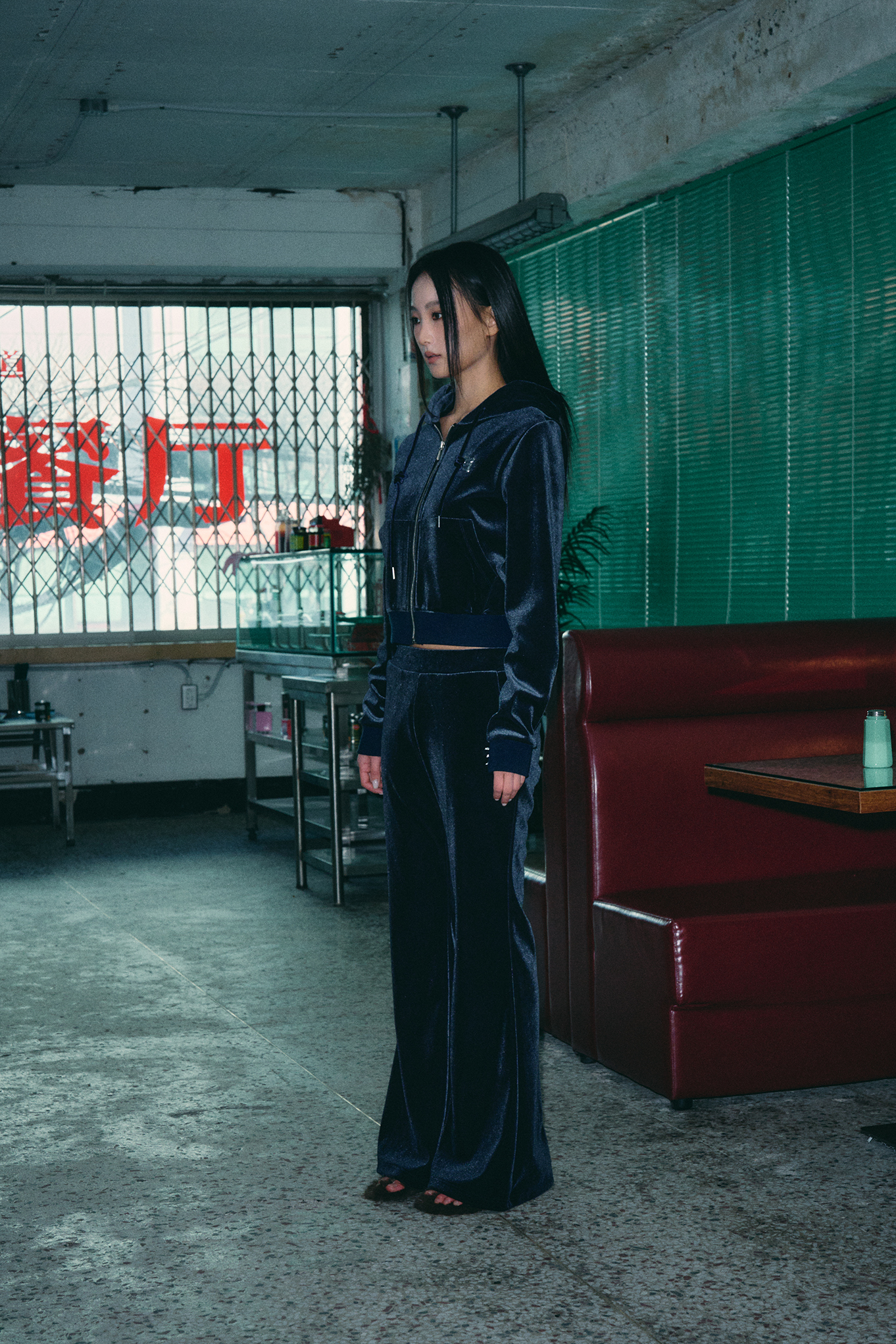 - 벨루아 부츠컷 팬츠와 셋업으로 착용하여 y2k 무드를 연출할 수 있습니다.