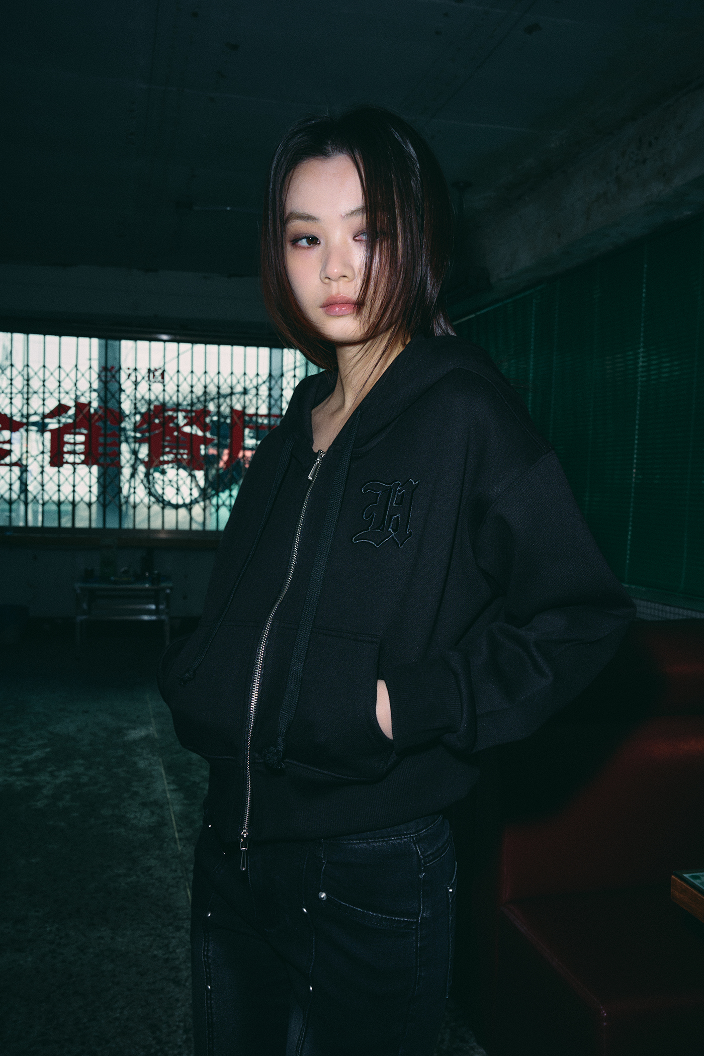 - 헬레네 파리스만의 감성을 담은 H 로고 아플리케 자수 후드 집업입니다.