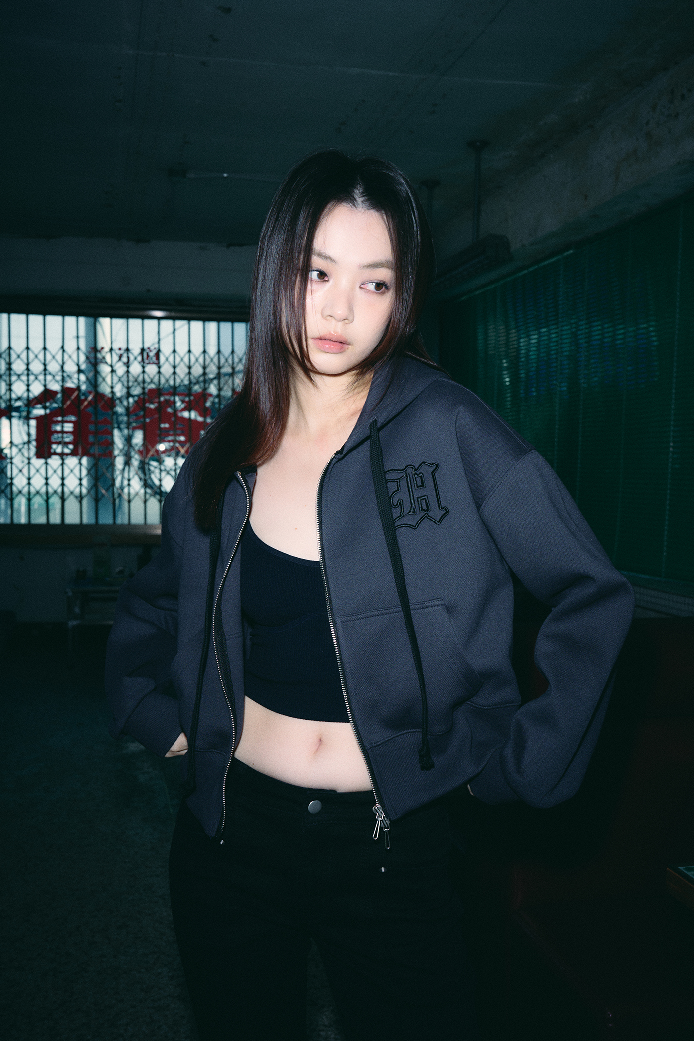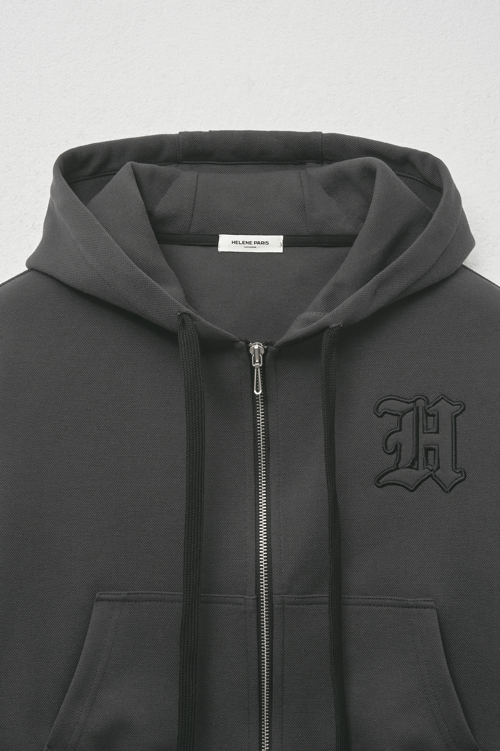 - 헬레네 파리스만의 감성을 담은 H 로고 아플리케 자수 후드 집업입니다.