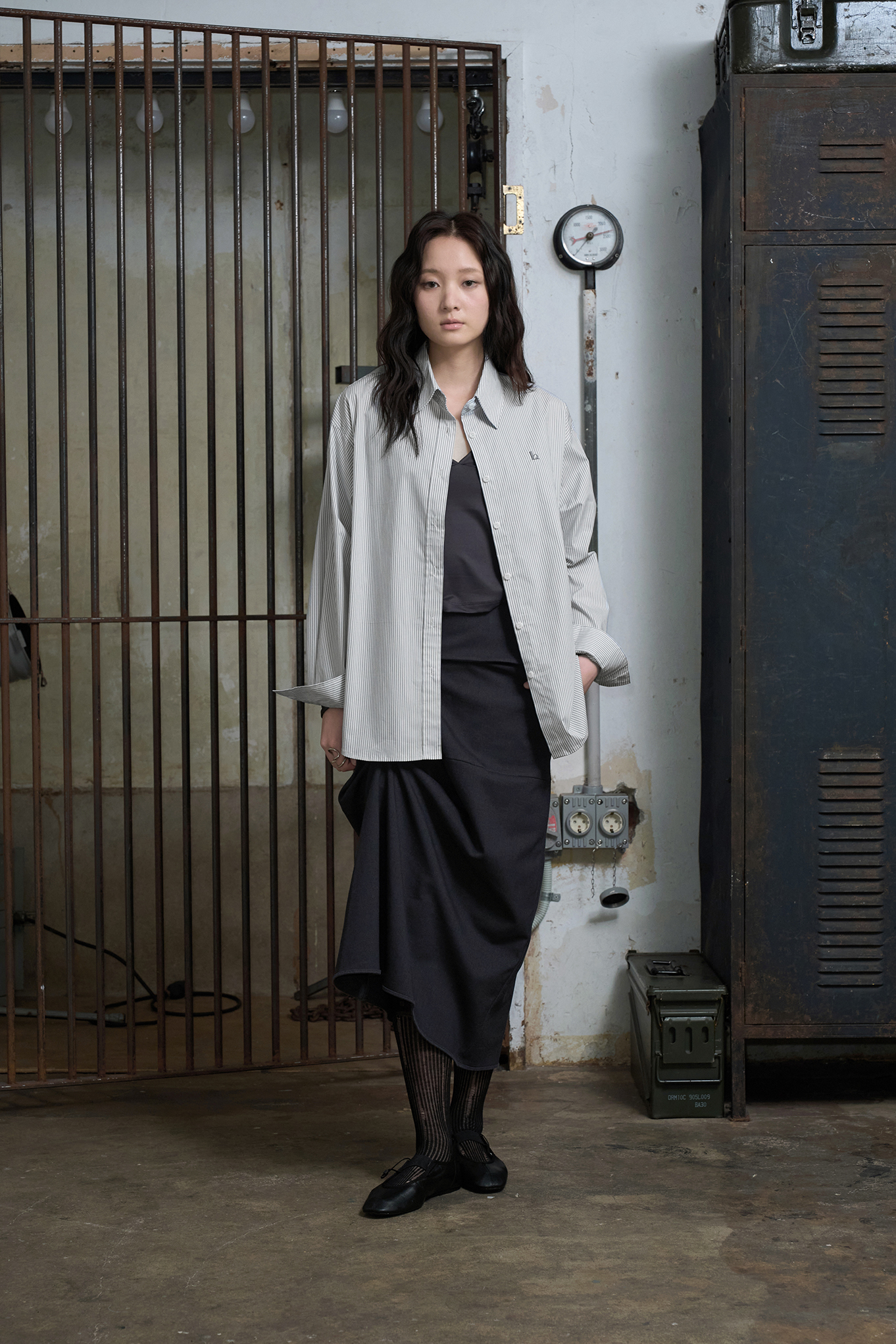 - 고급스럽고 깨끗한 이미지의 은은한 스트라이프 패턴이 룩에 포인트를 줍니다.