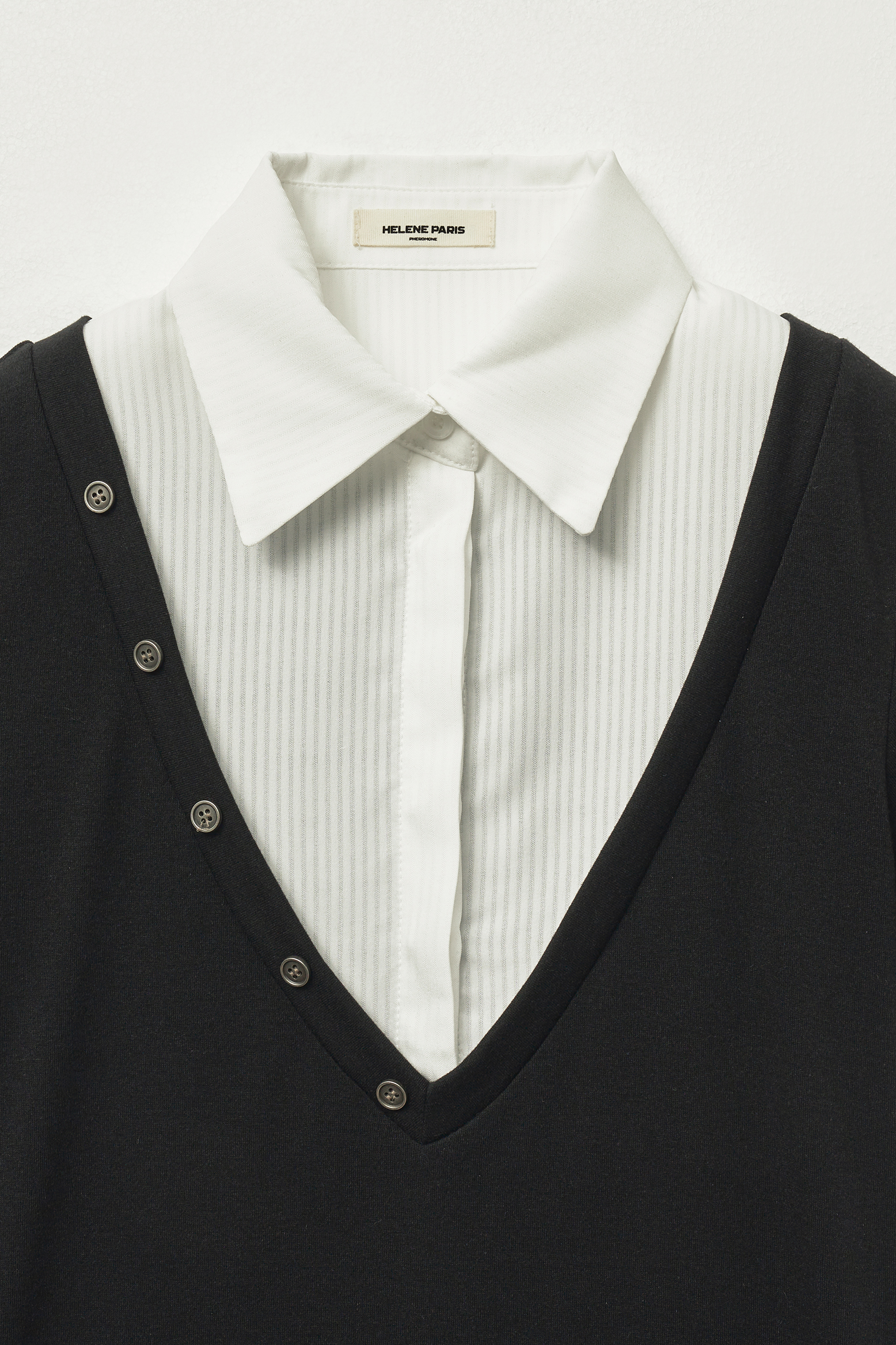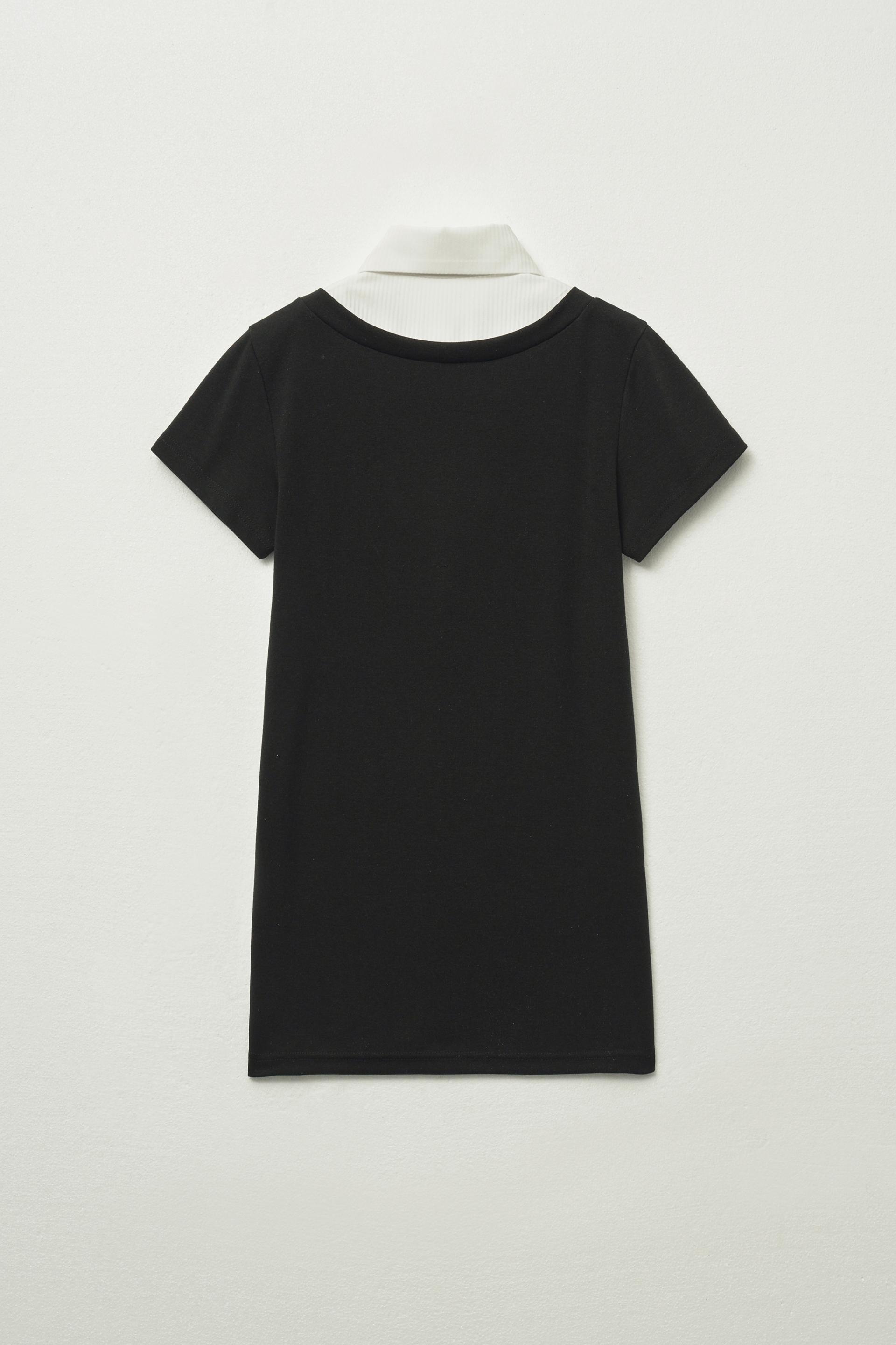 셔츠 레이어드 하프 티셔츠 [블랙-화이트]